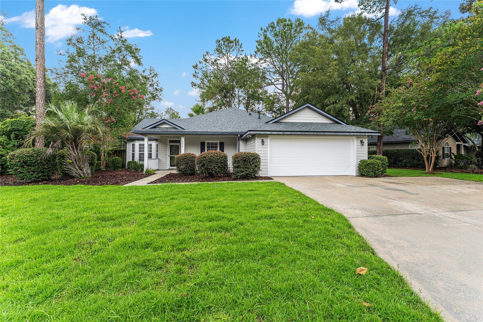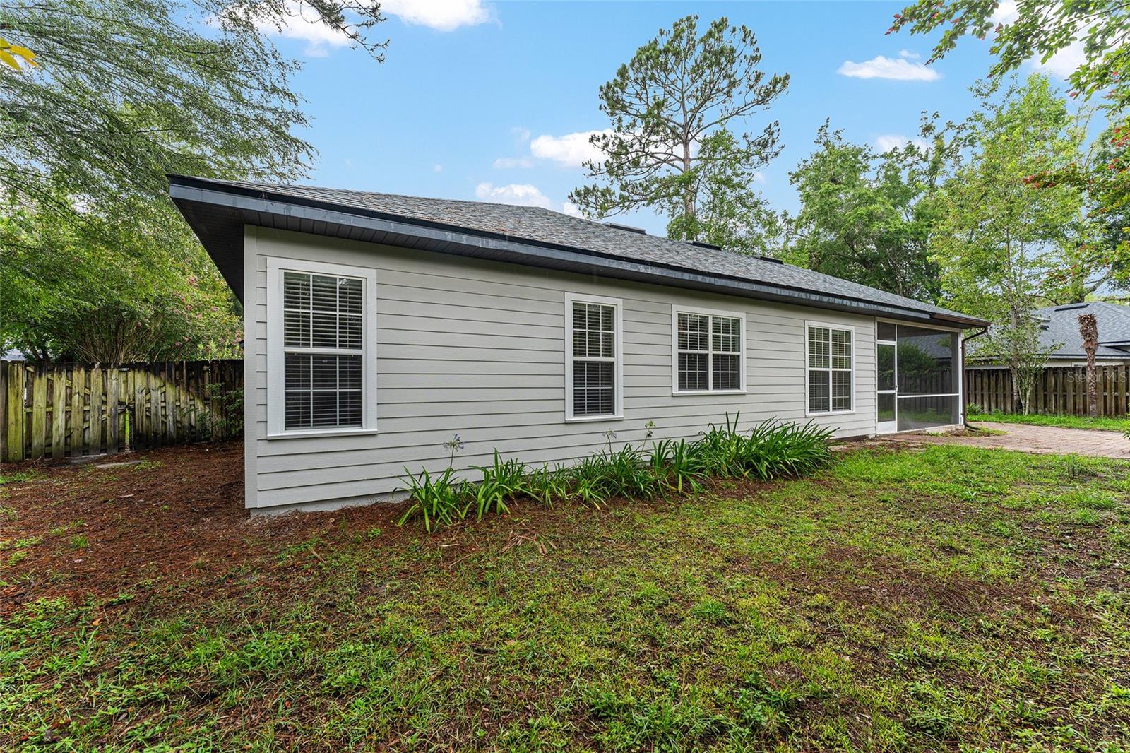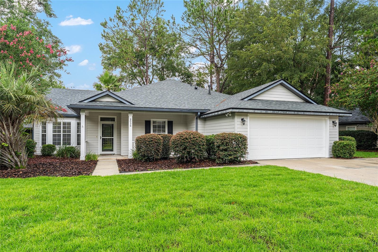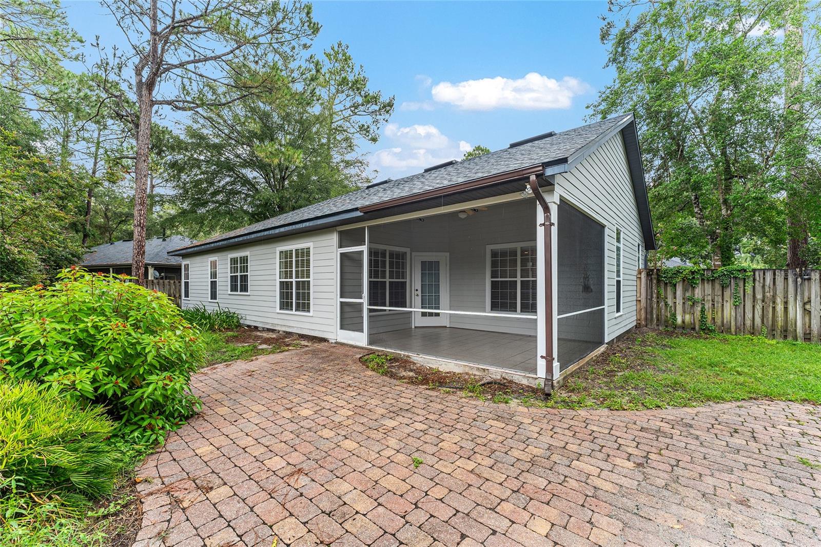 Spacious 3 bedroom + study, 2 bath home in Mentone! Over 1900 sq ft and an open floor plan with split bedroom plan. Step inside to this light and bright home with vaulted ceilings in the living room and plenty of natural light pouring in. The kitchen features white cabinets, lots of storage, a pantry and a center island for additional counter space. There is a breakfast bar and an separate dining room as well. Let's not forget the built in bookshelves in the living room and on both sides of the flex space/office/den, located just outside the primary suite. Out back, you'll enjoy a spacious screened lanai opening up to an outdoor paver patio, perfect for a cozy fire pit. You'll appreciate the curb appeal with a freshly sodded front yard, freshly painted exterior and brand new roof in 2025! This home also has an irrigation system to keep your new sod looking it's best! The driveway has been widened to allow for a 3rd car to park in the driveway. In the highly sought-after community of Mentone, you’ll enjoy a heated neighborhood pool, kiddie pool, pavilion, and pickleball on the tennis courts, plus a basketball court, playground, and walking trails—all with low HOA fees. Just minutes from UF, Shands, Celebration Pointe, Butler Plaza, and all the best of Gainesville. And best of all, it’s on Clay Electric.