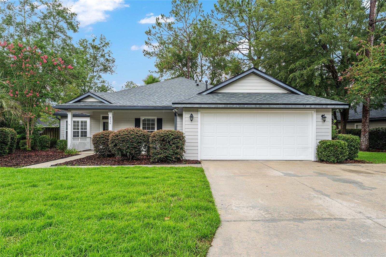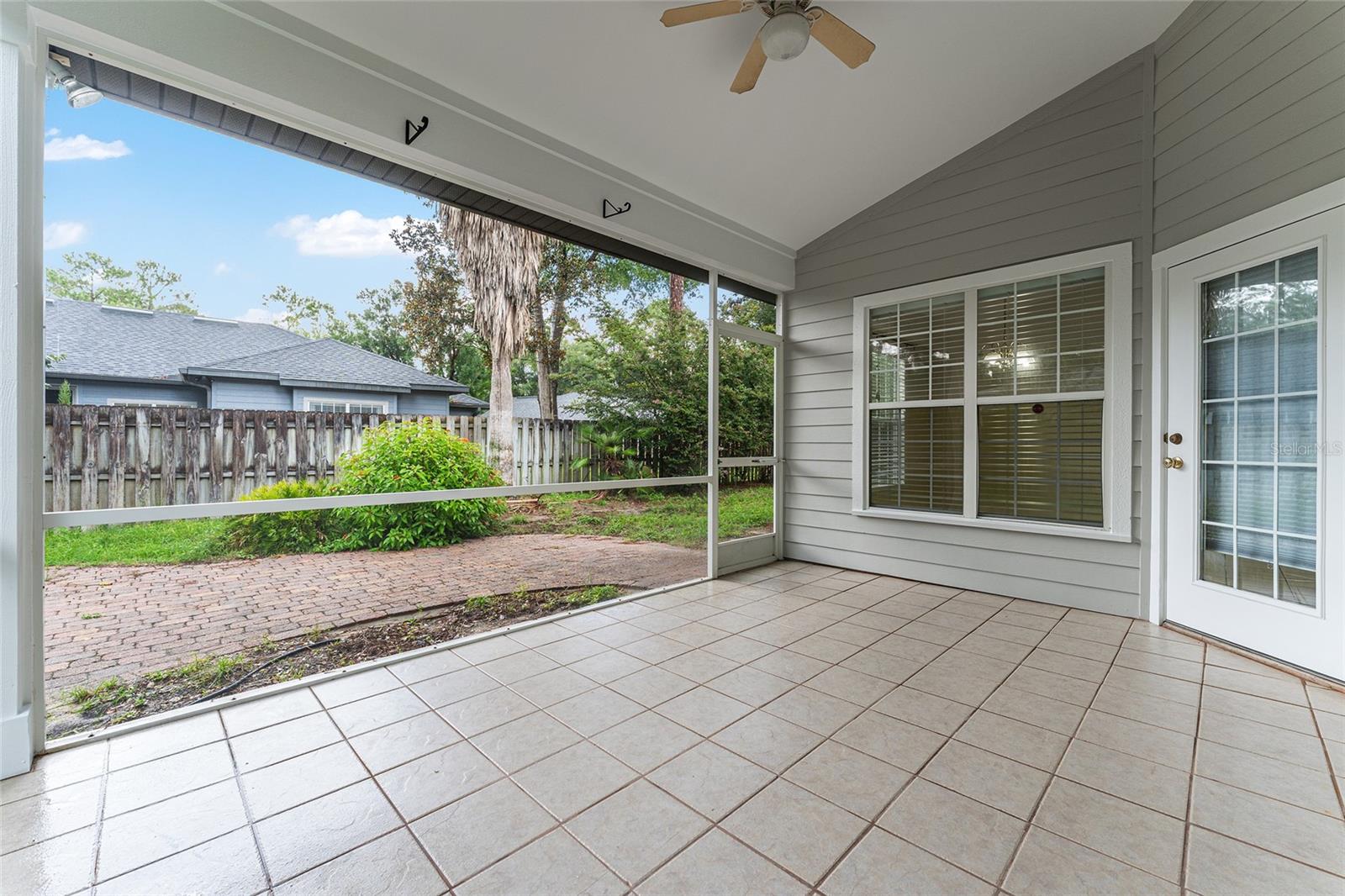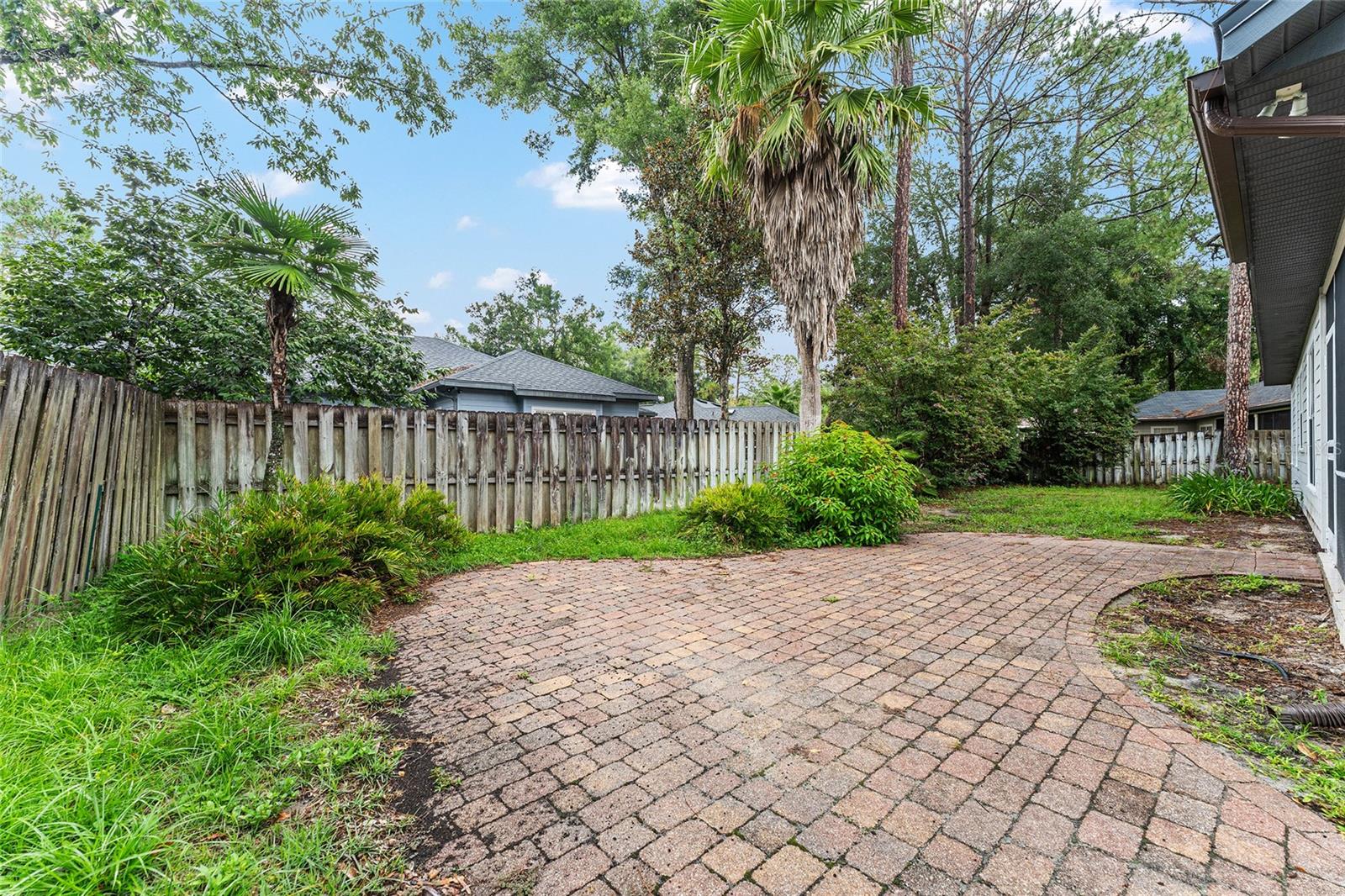 Spacious 3 bedroom + study, 2 bath home in Mentone! Over 1900 sq ft and an open floor plan with split bedroom plan. Step inside to this light and bright home with vaulted ceilings in the living room and plenty of natural light pouring in. The kitchen features white cabinets, lots of storage, a pantry and a center island for additional counter space. There is a breakfast bar and an separate dining room as well. Let's not forget the built in bookshelves in the living room and on both sides of the flex space/office/den, located just outside the primary suite. Out back, you'll enjoy a spacious screened lanai opening up to an outdoor paver patio, perfect for a cozy fire pit. You'll appreciate the curb appeal with a freshly sodded front yard, freshly painted exterior and brand new roof in 2025! This home also has an irrigation system to keep your new sod looking it's best! The driveway has been widened to allow for a 3rd car to park in the driveway. In the highly sought-after community of Mentone, you’ll enjoy a heated neighborhood pool, kiddie pool, pavilion, and pickleball on the tennis courts, plus a basketball court, playground, and walking trails—all with low HOA fees. Just minutes from UF, Shands, Celebration Pointe, Butler Plaza, and all the best of Gainesville. And best of all, it’s on Clay Electric.
