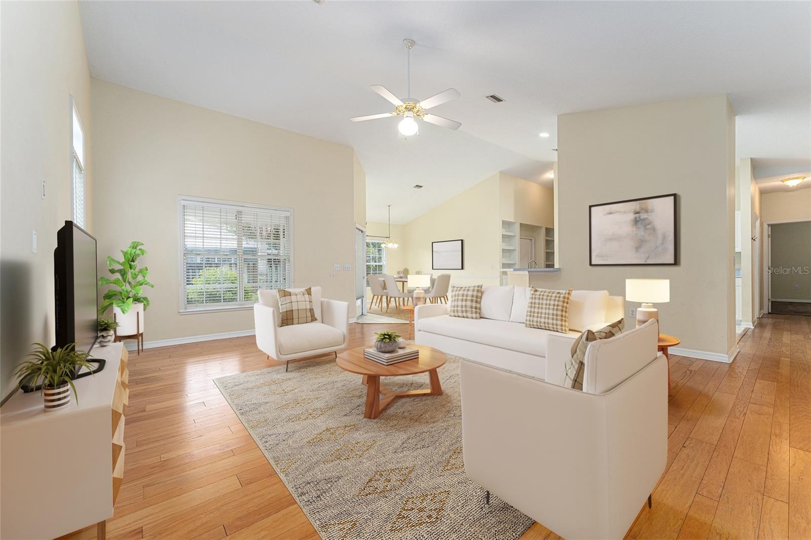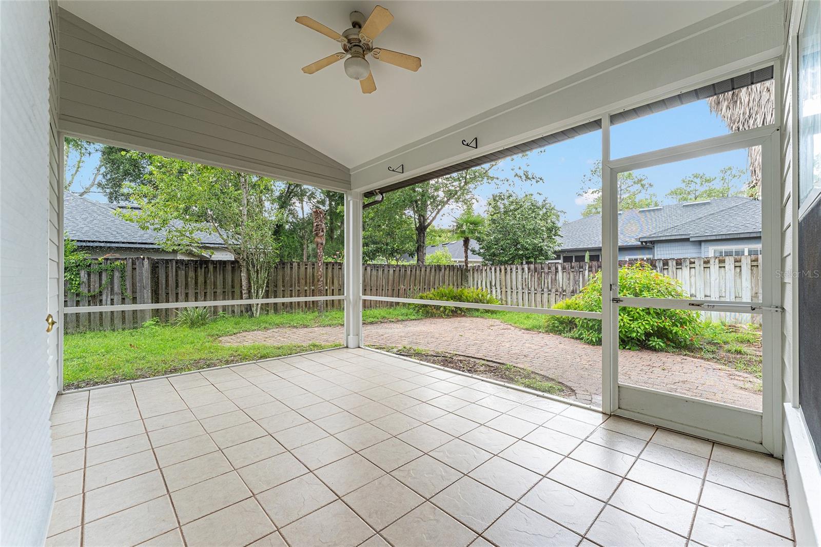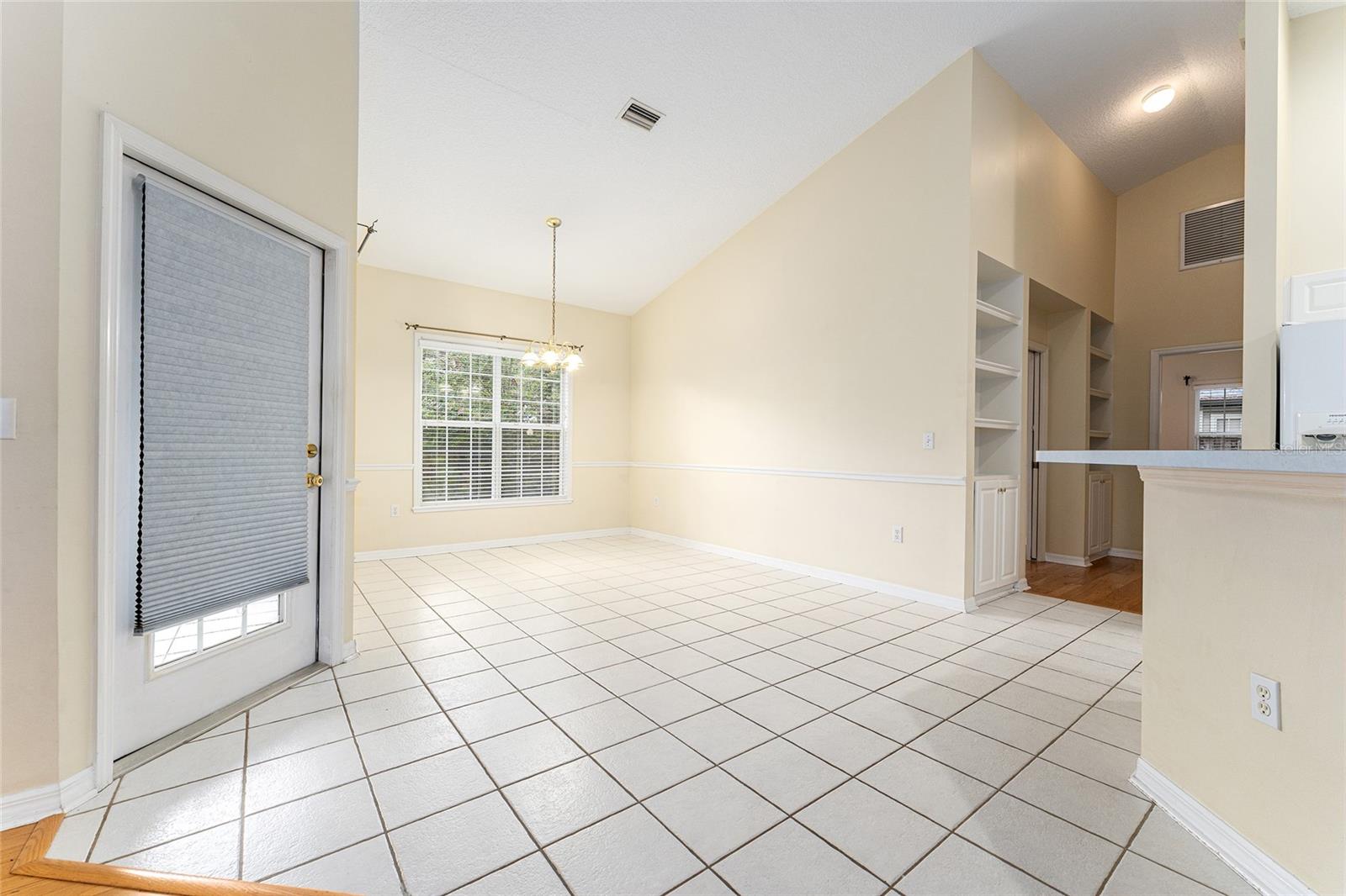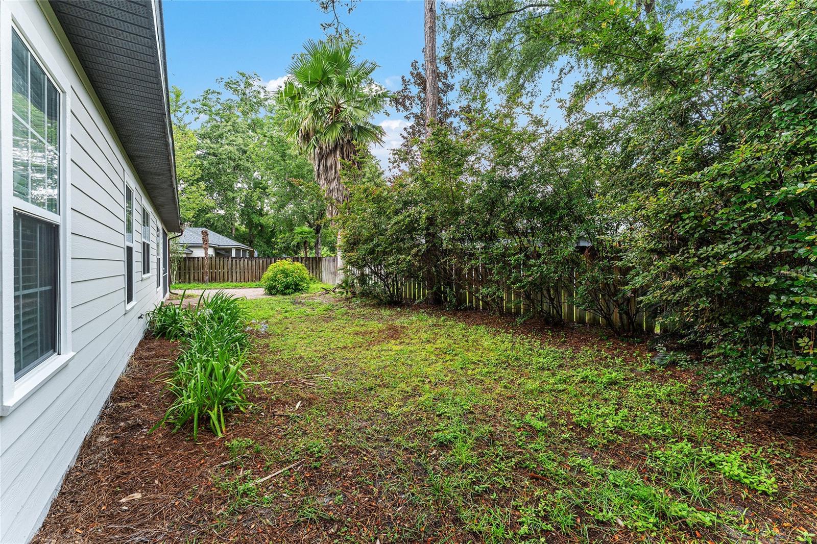 Spacious 3 bedroom + study, 2 bath home in Mentone! Over 1900 sq ft and an open floor plan with split bedroom plan. Step inside to this light and bright home with vaulted ceilings in the living room and plenty of natural light pouring in. The kitchen features white cabinets, lots of storage, a pantry and a center island for additional counter space. There is a breakfast bar and an separate dining room as well. Let's not forget the built in bookshelves in the living room and on both sides of the flex space/office/den, located just outside the primary suite. Out back, you'll enjoy a spacious screened lanai opening up to an outdoor paver patio, perfect for a cozy fire pit. You'll appreciate the curb appeal with a freshly sodded front yard, freshly painted exterior and brand new roof in 2025! This home also has an irrigation system to keep your new sod looking it's best! The driveway has been widened to allow for a 3rd car to park in the driveway. In the highly sought-after community of Mentone, you’ll enjoy a heated neighborhood pool, kiddie pool, pavilion, and pickleball on the tennis courts, plus a basketball court, playground, and walking trails—all with low HOA fees. Just minutes from UF, Shands, Celebration Pointe, Butler Plaza, and all the best of Gainesville. And best of all, it’s on Clay Electric.