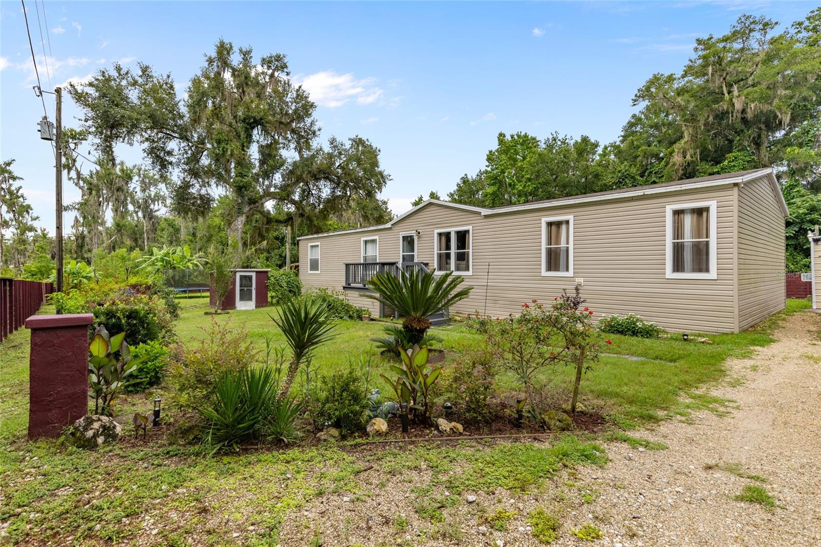 Tucked behind a gated privacy fence, this northeast Gainesville property feels like your own private retreat. Fruiting trees and winding vines line the yard, welcoming you into a space that’s equal parts peaceful and full of potential. Whether you're dreaming of a flourishing garden, a home base for creative projects, or just a little more room to spread out, this one delivers. Inside, the open-concept living, dining, and kitchen area offers a bright, functional layout that flows easily for everyday living. The split floor plan places the primary suite on one side with its own en-suite bath, while two additional bedrooms and a full guest bath sit on the other. Out back, a large deck invites you to relax or entertain under the open sky. There’s also a versatile hobby shed, fully finished with drywall and electrical, just waiting to be turned into a studio, workshop, or a safe place for extra storage. A covered carport provides convenient parking, and there’s additional space for an RV, boat, or trailer with easy access in the back of the property. Just minutes from downtown Gainesville, this peaceful homestead offers so many opportunities and room to grow. Schedule your private tour today! Note: parcel number 17742-12 is also included in the purchase