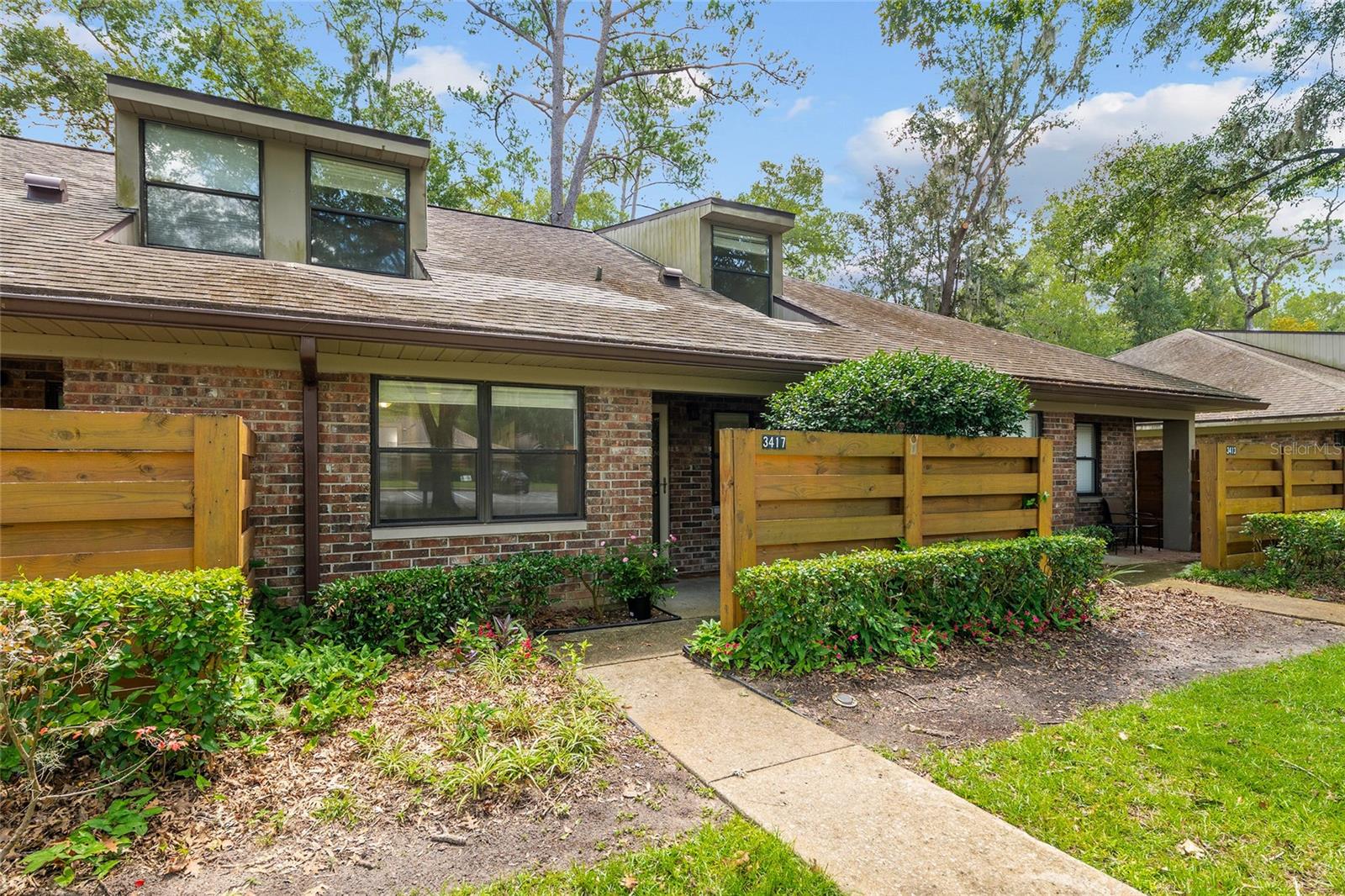 One or more photo(s) has been virtually staged. NEW PRICE ! Water heater will be replaced with an accepted offer. Welcome to Timberway – A Hidden Gem! Fall in love with this rare 3-bedroom, 2-bathroom townhome featuring a sunporch and private stone patio — perfect for morning coffee, birdwatching, or weekend grilling! With 1,364 square feet, this is one of the largest units in the neighborhood, offering space, comfort, and style. The primary suite is conveniently located on the main floor with double closets and a full bathroom. Then two generously sized bedrooms and a full bath are located upstairs. The kitchen and bathrooms have been beautifully updated with stone countertops, elegant tile work. The kitchen has stainless steel appliances, creating a modern yet timeless feel. A low monthly HOA covers the roof, pest control, and grounds maintenance and two designated parking spaces are located directly in front of the home for easy access. There is a nice storage closet at front of house and also ample storage space in the attic for your treasures. The Timberway community is peaceful and well-maintained, featuring mature trees and green spaces, a dog walk area with waste station, a swing set and outdoor pavilion for residents that overlooks a lovely grassy area. This is a Planned Unit Development (PUD), this home is classified as an attached single-family home, making financing simpler and more flexible than a traditional condo. Just minutes from Magnolia Park, One Love Cafe, and many local favorites like BBQ, fresh seafood, sushi spots, and a donut shop, you’ll enjoy the best of Gainesville’s vibrant food and outdoor scene right down the street! An easy commute to local hospitals and the University of Florida. Great proximity to Buchholz High School and Santa Fe College. Don't miss this unique opportunity — schedule your showing today and discover why Timberway feels like home!