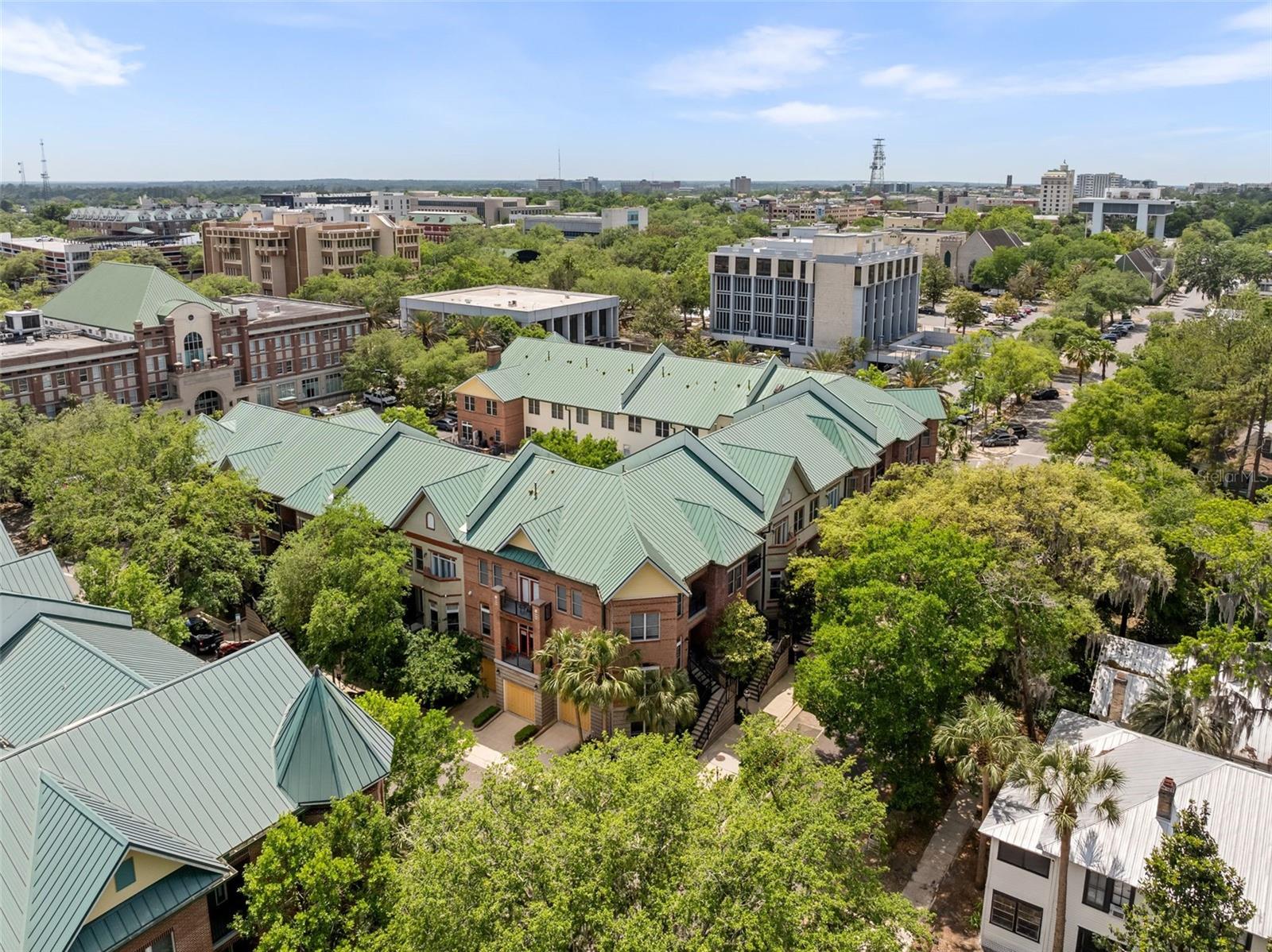 Largest ground floor unit in Regents Park! Walk to Downtown Gainesville! Here’s your chance to snag a rare, ground-level 3/2 in Regents Park—no stairs, no lost square footage, no hassle, just luxe tranqulity in the Duckpond. The open, airy floor plan features 9 ft ceilings, warm wood floors and a smart split-bedroom design that works perfectly for families, professionals, or anyone needing a home office setup. The kitchen is ready for everyday meals or entertaining with granite counters, solid wood cabinetry, stainless steel appliances, and a central island with ample seating. The oversized primary suite (500+sf) is a true retreat with tons of natural light from multiple windows—but rest easy, the street and parking lights don’t shine in like they do in some other units. You’ll also enjoy the generous closet space (4 to be exact) and roomy bath with dual sinks and a step-in shower. The finished garage gives you options—it’s set up with both a traditional door and a screened enclosure, making it just as useful for hobbies or hosting as it is for parking (3rd row SUV’s too). Recent upgrades include newer appliances (all original builder grade appliances have been replaced), a tankless water heater, updated fixtures/fans, fresh paint, and durable polyurea garage flooring. Enjoy microscopic GRU bills even in the thick of Florida summers! The HOA takes care of the roof, exterior upkeep, landscaping, pest control, internet, and more, so your weekends are finally YOURS! Families will love the nearby parks, library, and easy walk to all downtown events (like homecoming), the farmers’ market, while working professionals can take advantage of the short stroll to downtown coffee shops, restaurants, live theater, and networking spots. With a location like this it’s even harder to resist. Do not sleep on this opportunity to own a slice of downtown charm.