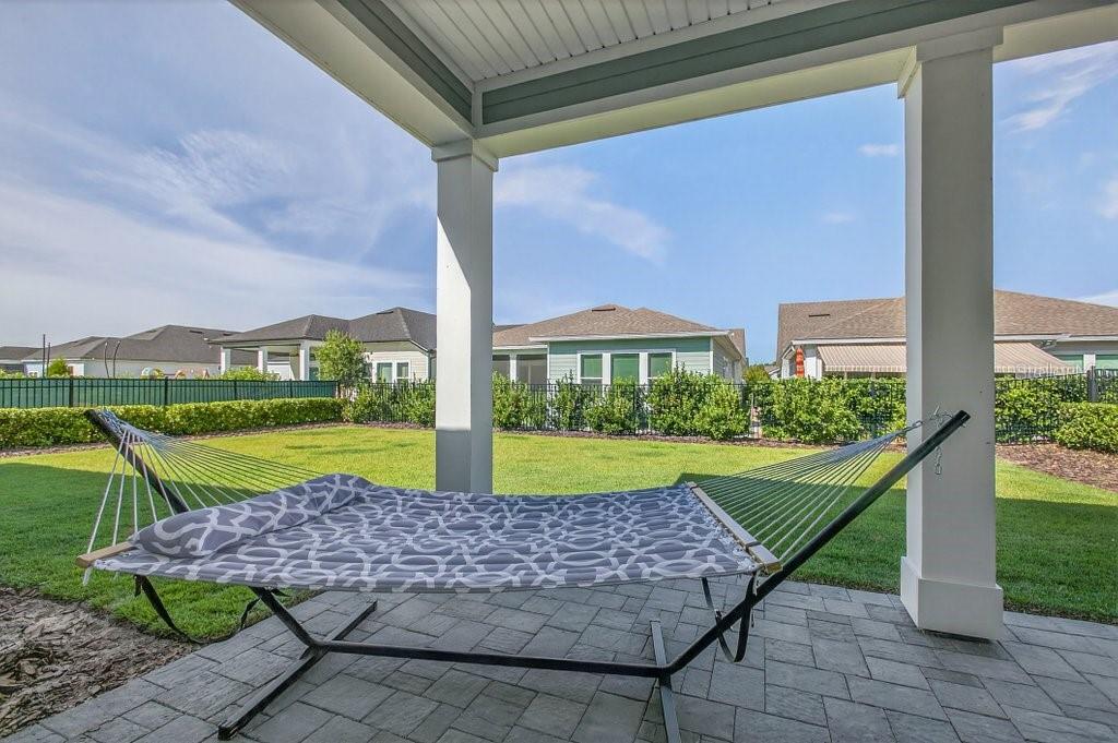 Welcome to Oakmont, one of Gainesville’s most desirable communities! Built in 2022, this beautifully designed home offers a modern open floor plan with 3 bedrooms, 2 full baths, and a versatile flex room with pocket doors for added privacy. Inside, you’ll find upgraded finishes throughout, including Cambria quartz countertops, soft-close cabinetry, and stylish flooring. The kitchen is a true highlight, featuring a spacious island, ample cabinetry, corner pantry, and stainless steel appliances—including a gas range, refrigerator, dishwasher, microwave, and disposal. Washer and dryer are also included (not warranted). The owner’s suite and additional bedrooms provide comfortable carpeted spaces, while the main living areas showcase durable tile flooring. Thoughtful upgrades such as cellular shades, ceiling fans, and a security system are already in place. Curb appeal shines with brick paver driveway, walkway, and front porch. Out back, enjoy the extended covered lanai with matching pavers, overlooking a fully fenced yard. Irrigation, a drip-line system, and additional landscaping with fast-growing privacy hedges provide both beauty and ease of maintenance. Living in Oakmont means more than just a home—it’s a lifestyle. Residents enjoy a resort-style pool, fitness center, tennis courts, playgrounds, and a vibrant community. Conveniently located on Gainesville’s west side, you’ll have easy access to nature trails, restaurants, shopping, the University of Florida, and UF Health.