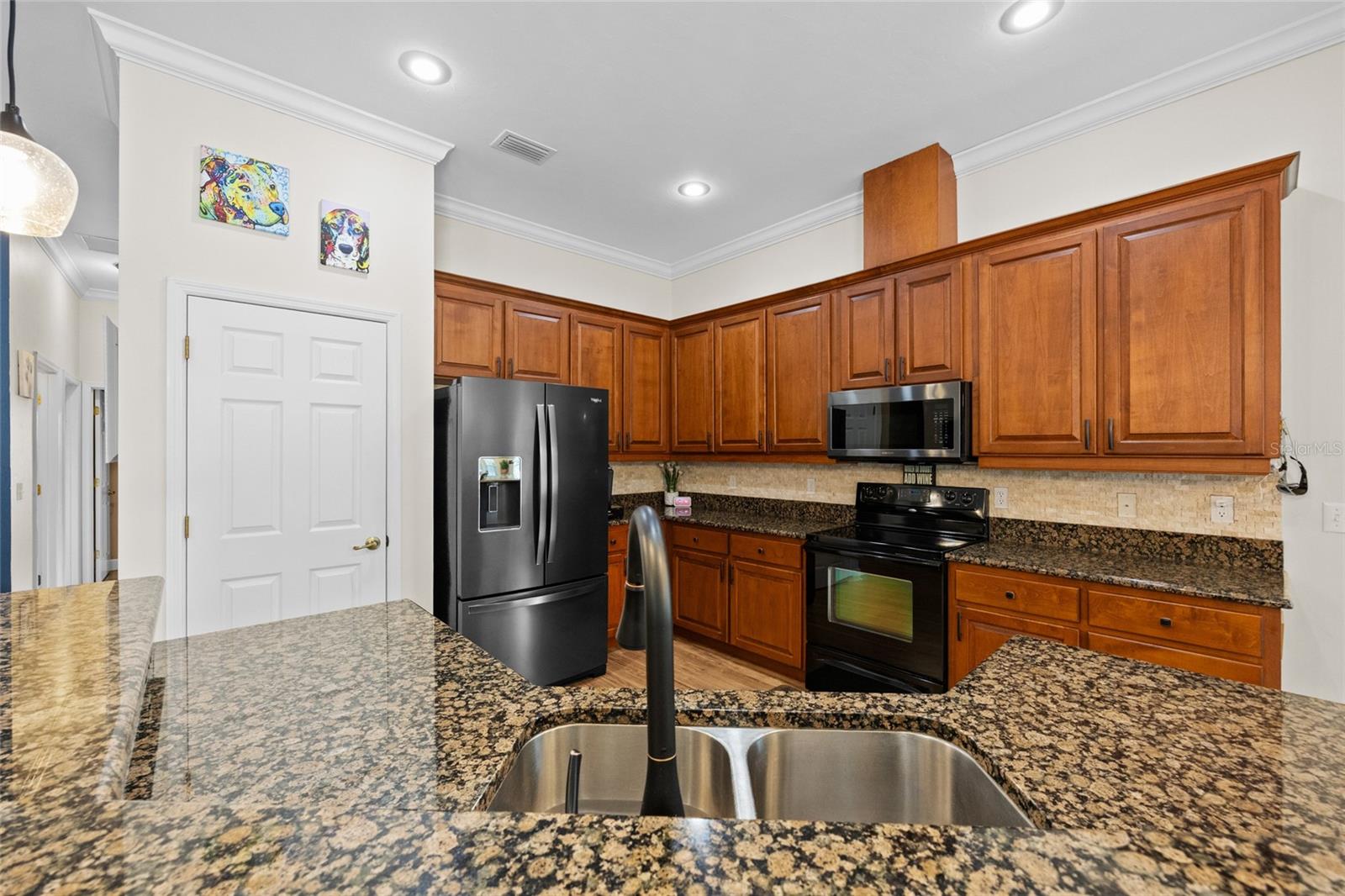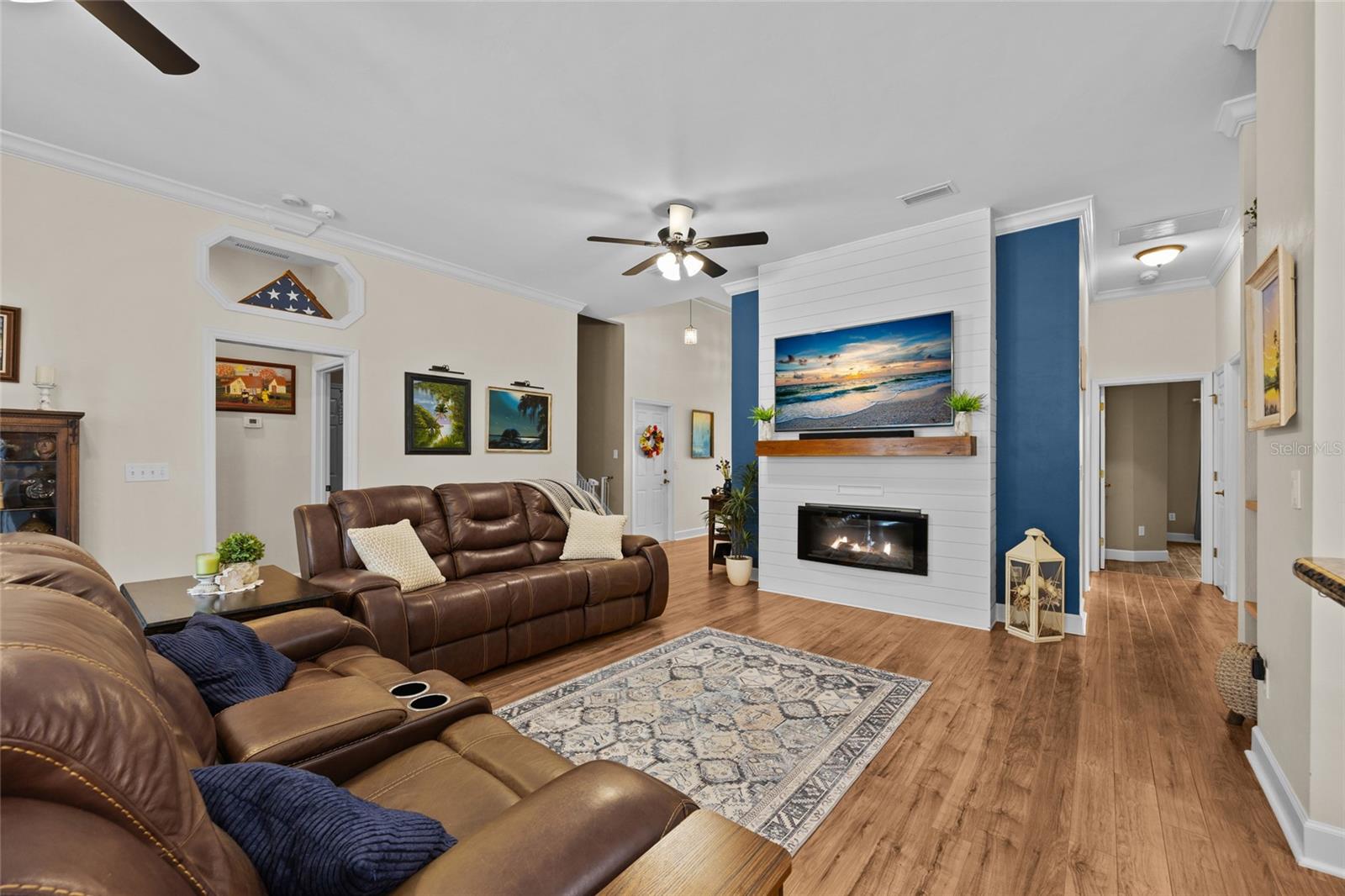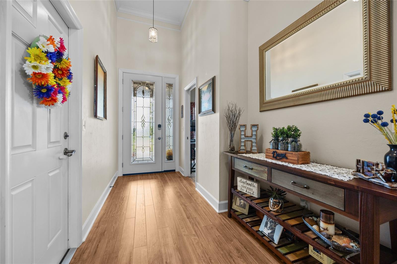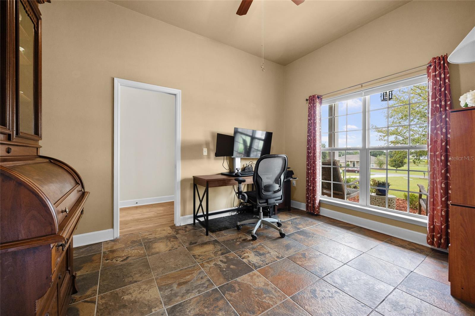 This beautiful 3 bedroom, 2 bathroom home with office and upstairs bonus room offers over 2,359 SF of thoughtfully designed living space, situated on a private 1+ acre lot with a wooded backdrop. From the moment you arrive, you’ll notice the upgraded finishes and the open, airy floor plan that make this home perfect for both everyday living and entertaining. The heart of the home is the spacious kitchen, complete with granite countertops, island with breakfast bar, and a seamless flow into the dining and great room. Wood floors and tile extend throughout most of the downstairs, creating both elegance and durability. The upstairs landing provides a charming sitting nook, and the oversized bonus room (approx. 22’ x 18’) offers endless flexibility. The primary suite is a true retreat, featuring a dream-worthy walk-in closet, dual granite vanities, a Jacuzzi tub, and a large shower with dual showerheads. The additional bedrooms and office provide plenty of room for family and guests. Step outside to your backyard oasis—an expanded screened porch with a covered sitting area overlooks the sparkling saltwater pool. The fenced yard features a newly added patio with outdoor fire pit, and plenty of open space for play or relax and enjoy stunning sunsets. This property backs up to large Kanapaha prairie preserve with lots of wildlife. The backyard shed includes electricity, and the home is equipped with a generator hookup for peace of mind. This home offers the perfect blend of privacy, luxury, and convenience within a gorgeous neighborhood featuring many recreation features, including playground, hiking trails through woods, as well as a paved walking trail.