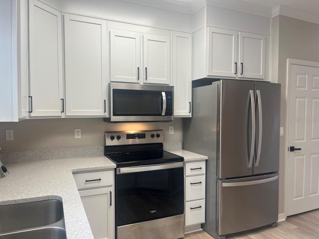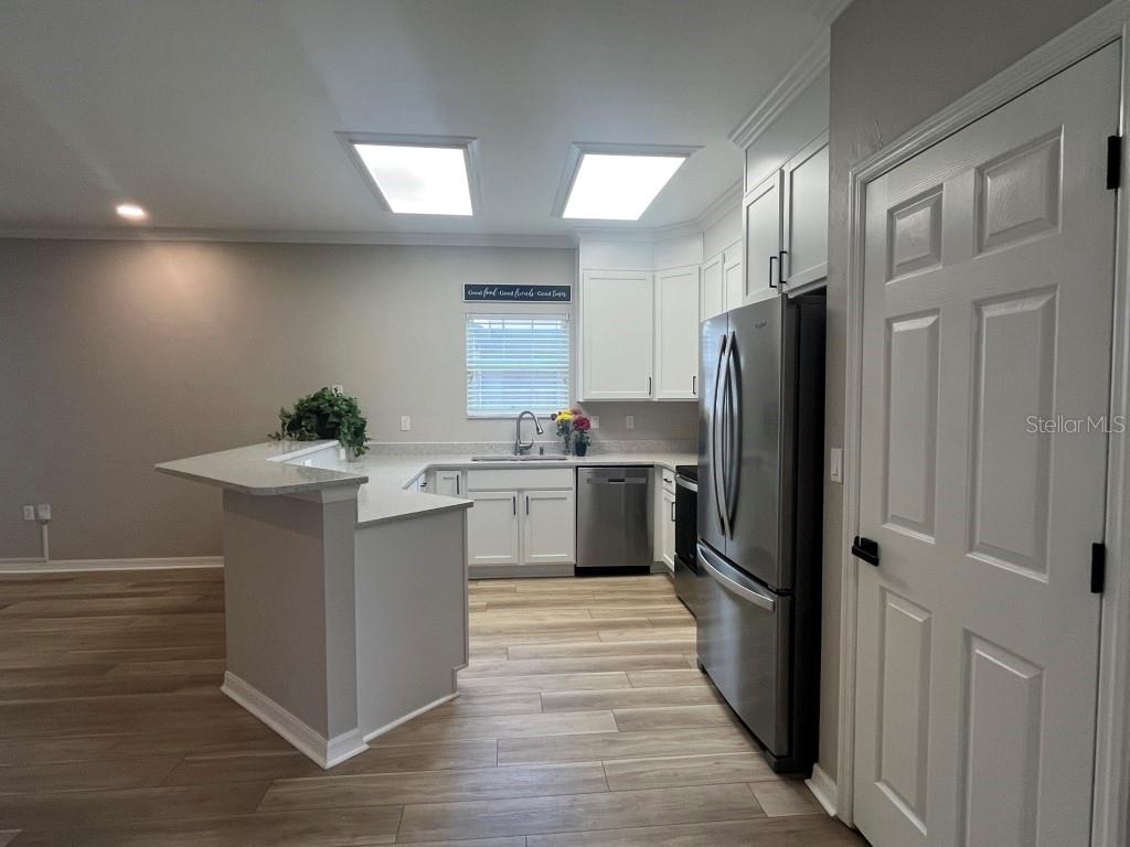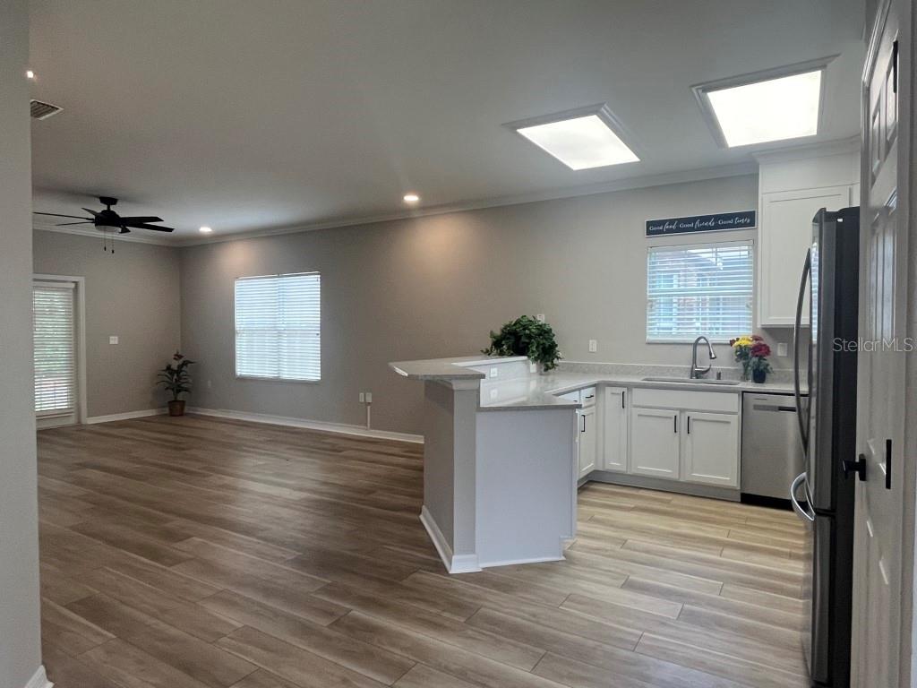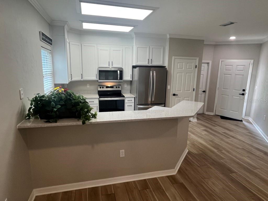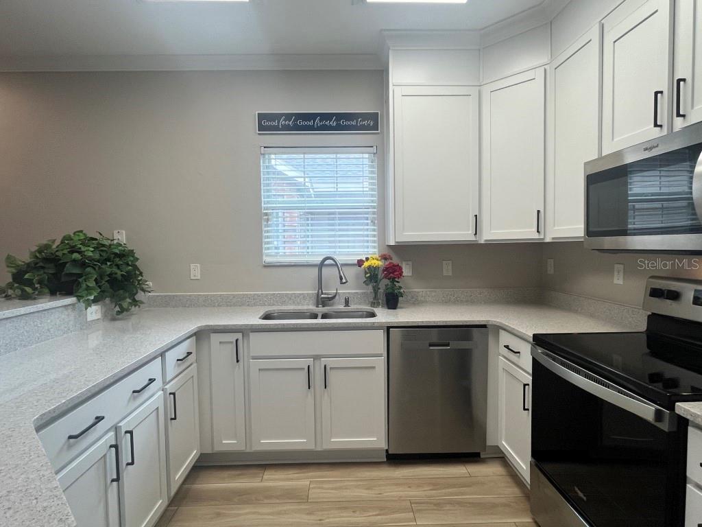 Enjoy one of Gainesville’s most sort after communities Blues Creek located at the Gardens. Take comfort with maintenance-free living in this beautiful, 2-bedroom, 2-bath single-family home on a tree lined street, filled with natural light, character that feels instantly welcoming. The bedrooms are ideally split for added privacy. With a seamless open floor plan and easy flow, the entryway leads to a light and bright kitchen, complete with a full set of new appliances (2024), including a new garbage disposal. The “fully” remodeled kitchen (2024) with all wood white shaker cabinets features a picture window over the sink, pantry, solid surface countertops, a peninsula island with seating, and a spacious pantry, all overlooking the dining area and large living room making it a dream for easily hosting friends and family on special occasions. Off the living room with crown molding, garden doors open to a covered porch, perfect for relaxing with a good book or beverage while watching the sun set. Additional highlights include a two-car garage with pull-down attic storage is where the laundry is located, hard-surface flooring throughout with new luxury vinyl plank flooring in the main living areas and bedrooms. The primary suite is highlighted by a classic bay window, a large walk-in closet with shelving, and an ensuite with double sinks and newly installed shower (2024) and the HVAC is only 8yrs old. At the other end of the hall is a guest bedroom and full guest bath. The rear covered porch is a perfect spot to relax and unwind. Zoned for schools: Talbot Elementary, Ft. Clarke Middle and Gainesville High. Enjoy a truly low-maintenance lifestyle where the HOA fees cover all lawn care, exterior maintenance, including the siding and roof (3yrs). Nestled in a lovely, well-kept walkable community with an array of amenities, including a pool, tennis courts, a clubhouse for hosting events, and direct access to scenic nature trails for hiking and biking. IQ Fiber AT&T internet is available. Blues Creek is located just minutes from Publix, Fresh Market, Starbucks, and popular dining spots along NW 43rd Street and Millhopper Road. Plus, you’re only a short drive to the University of Florida, Santa Fe College UF, VA, NFR and Shands hospitals. Whether you are a for first-time buyer, downsizing or just looking for a home with charm, comfort, with a premier Gainesville address this is the one, so don’t wait. Call today for your private viewing!
