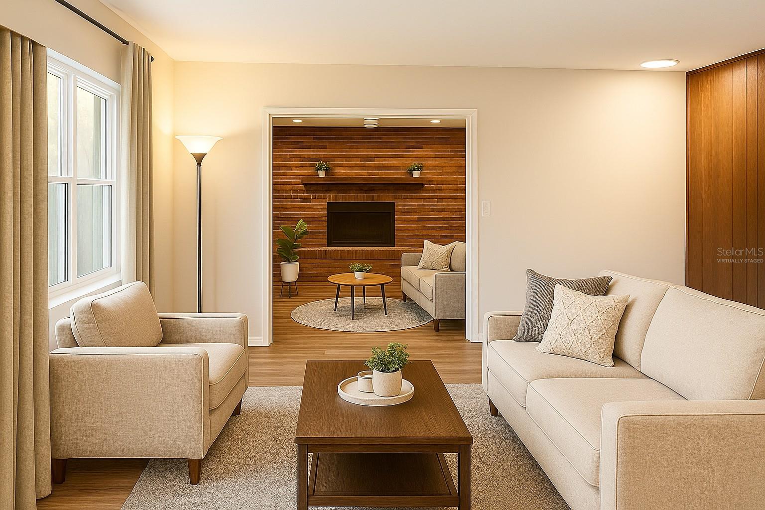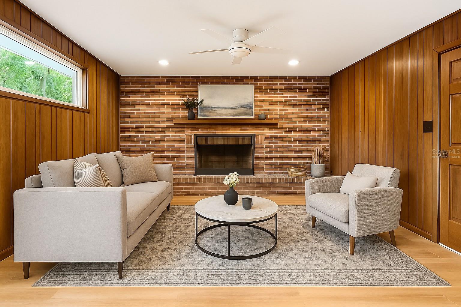 One or more photo(s) has been virtually staged. This 4-bedroom, 2-bath home is where classic charm meets thoughtful modern updates. An enclosed front porch offers a versatile space, perfect as a cozy reading nook, casual sitting area, or welcoming first impression before entering the main house. Every corner has been refreshed, so all you have to do is move in and enjoy. Fresh paint brightens every room, giving the home a clean, updated feel. New windows, a modern A/C, and remote-controlled ceiling fans ensure comfort no matter the season. An updated metal roof, brand-new hot water heater, and modern plumbing mean big-ticket items are already taken care of. Inside, the living spaces connect seamlessly, creating a welcoming flow throughout the home.The living room and den are anchored by a classic brick fireplace, bringing warmth and character to the home. Both rooms feature new laminate flooring, creating comfortable, inviting spaces to relax or entertain. Four generous bedrooms offer plenty of space, and the primary suite provides a quiet sanctuary with its own bathroom and separate entry. Brand-new carpet throughout the bedrooms adds a soft, fresh feel underfoot. The kitchen blends modern convenience with personality, featuring new appliances alongside a rare vintage Nutone built-in countertop blender/mixer. The kitchen and dining area both have newer tile floors, creating bright, functional spaces for cooking and dining. A sunlit bonus room with its own entrance invites creativity, perfect for a studio, home office, or private retreat. Outside, a fenced backyard with no rear neighbors creates a peaceful escape for entertaining, play, or quiet afternoons. Why settle for “good enough” when you can have everything already done? Step inside, and you’ll immediately feel at home.