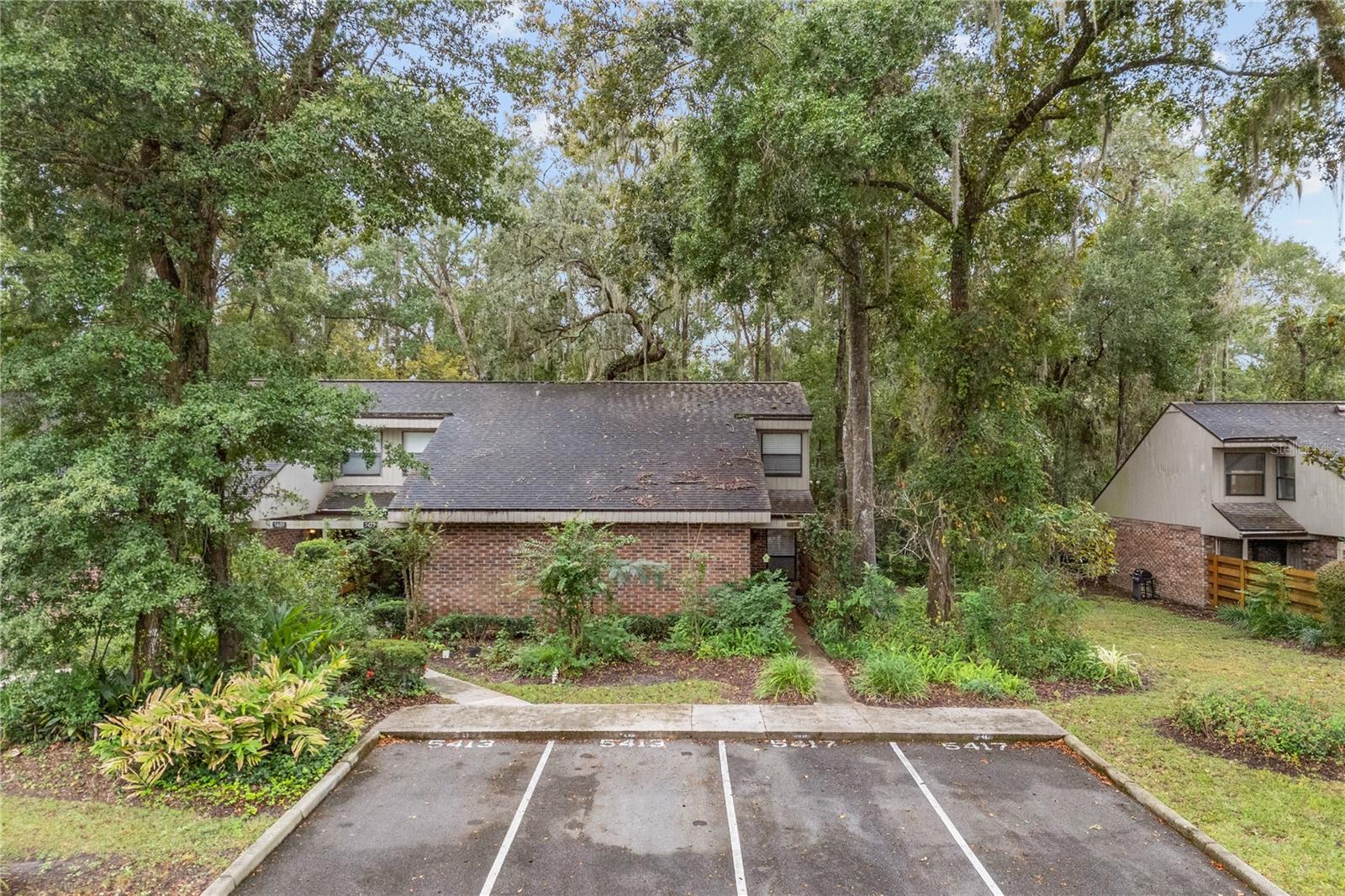Looking for an end unit townhome in a great location in Gainesville? This 2-bedroom and 2-bathroom end unit townhome in Timberway is move-in ready and waiting for you! This home features 1,225 square feet with the primary suite upstairs and a sunporch downstairs overlooking landscaping, trees and privacy. Downstairs hosts the second bedroom, the kitchen, dining room, living room, and the sunporch. Upstairs hosts the primary suite with double closets and a newer upgraded full bathroom. The primary suite also features an additional sitting area or extra space to use for a big closet, plus access to the attic for additional storage place. This home has no carpet, fresh paint throughout, and newer vinyl flooring in most areas. The sunporch is a great addition to this home and offers beautiful living space while welcoming the outside. You can enjoy nature watching, your morning and evening beverages, and relaxing on this sunporch. The laundry room is also accessed through the sunporch. This home has 2 designated parking spaced located directly in front of the home for easy access. The low monthly HOA covers the roof, pest control and grounds maintenance. Timberway is a peaceful and well-maintained community featuring nature, trees and green spaces, a dog walking area, a swing set and outdoor pavilion for its residents and guests to enjoy and relax while overlooking a grassy area for additional outdoor activity space. The location of this home in Timberway is perfect and secluded with being an end unit townhome while also being in the back of the community and it backing up to nature and a wooded buffer. The location of this community in NW Gainesville is ideal as it is just minutes away from some of Gainesville's most loved restaurants, coffee, groceries and shopping, Buchholz High School, and Santa Fe College. Plus, an easy commute to local hospitals and the University of Florida. Do not miss this awesome opportunity to own your own home in this great NW community!