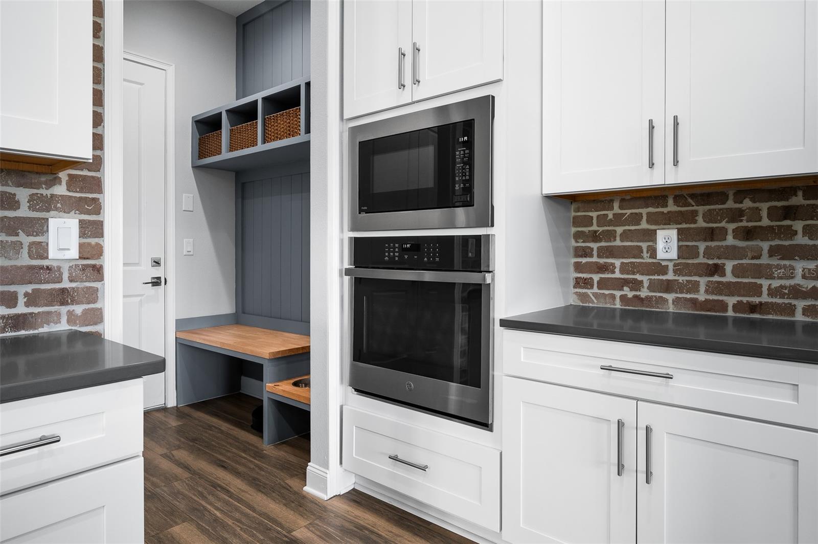Step into luxury with this exceptional 4-bedroom, 3-bathroom residence in the desirable Oakmont community in Southwest Gainesville. Built in 2024, this home seamlessly blends modern craftsmanship, elegant finishes, and thoughtful design. Entering through the beautiful, custom four-panel rain glass front door you’re greeted by the bright office/study with custom barn doors and a built-in bookcase with a library ladder — the perfect spot for working from home or curling up with a good book. Across the hall, you’ll find two bedrooms and a full bath, with one bedroom featuring charming bookcase closet doors that add a touch of personality. Continuing down the main entry past the gallery with tray ceilings, the kitchen is a true showpiece feature of the home. Double stacked, upgraded deluxe kitchen cabinets, upgraded quartz countertops, upgraded undermount sink, a furniture-wrapped island with decorative X panels, drop-in gas range with hood, wall oven, and custom bricked walls create a space as functional as it is stunning. From here, the kitchen flows seamlessly into the dining room featuring a board and batten wrapped wall that continues into the spacious living room where tray ceilings with gorgeous hand-hewn wood beams and sweeping multi-panel sliding glass doors open to the infinity screened porch, revealing serene views of the fenced backyard that overlooks a gopher tortoise preserve conservation area behind the property. Adjacent to the living room, a third guest bedroom showcases elegant crown molding and is accompanied in the hall by a guest bathroom with upgraded pebble stone in the shower. Across the home, the owner’s suite is a true retreat, offering a tray ceiling, luxurious ensuite bath with upgraded pebble stone shower flooring, dual vanities, and a walk-in closet with built-in closet organizer. Practical elegance continues throughout the home with a mudroom featuring a charming built-in bench and storage, a large double-door pantry connecting to the laundry room, and a three-car tandem garage with ample space for storage or a workshop. Exquisite upgrades extend throughout the home, including plantation shutters, LED recessed lighting, wood-look tile flooring, seamless gutters, a whole-house water filtration system, concrete landscape curbing around the house, and additional insulation in the walls in some areas of the home. Oakmont residents enjoy resort-style amenities, including a clubhouse, fitness center, resort-style swimming pool with lap lanes, tennis courts, basketball court, multi-purpose activity field, and playground, all within a prime SW Gainesville location close to highly-rated schools, shopping, and dining.