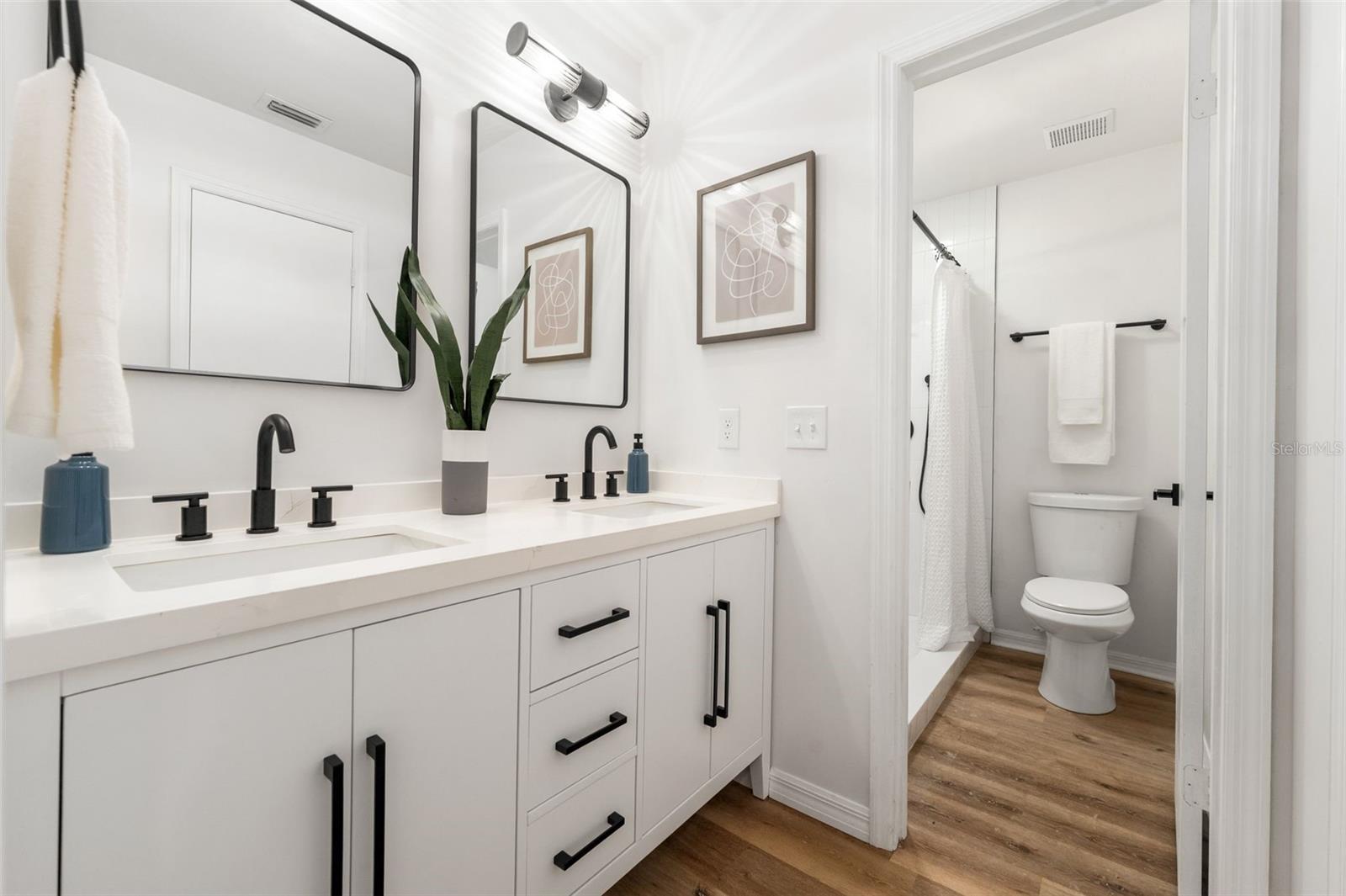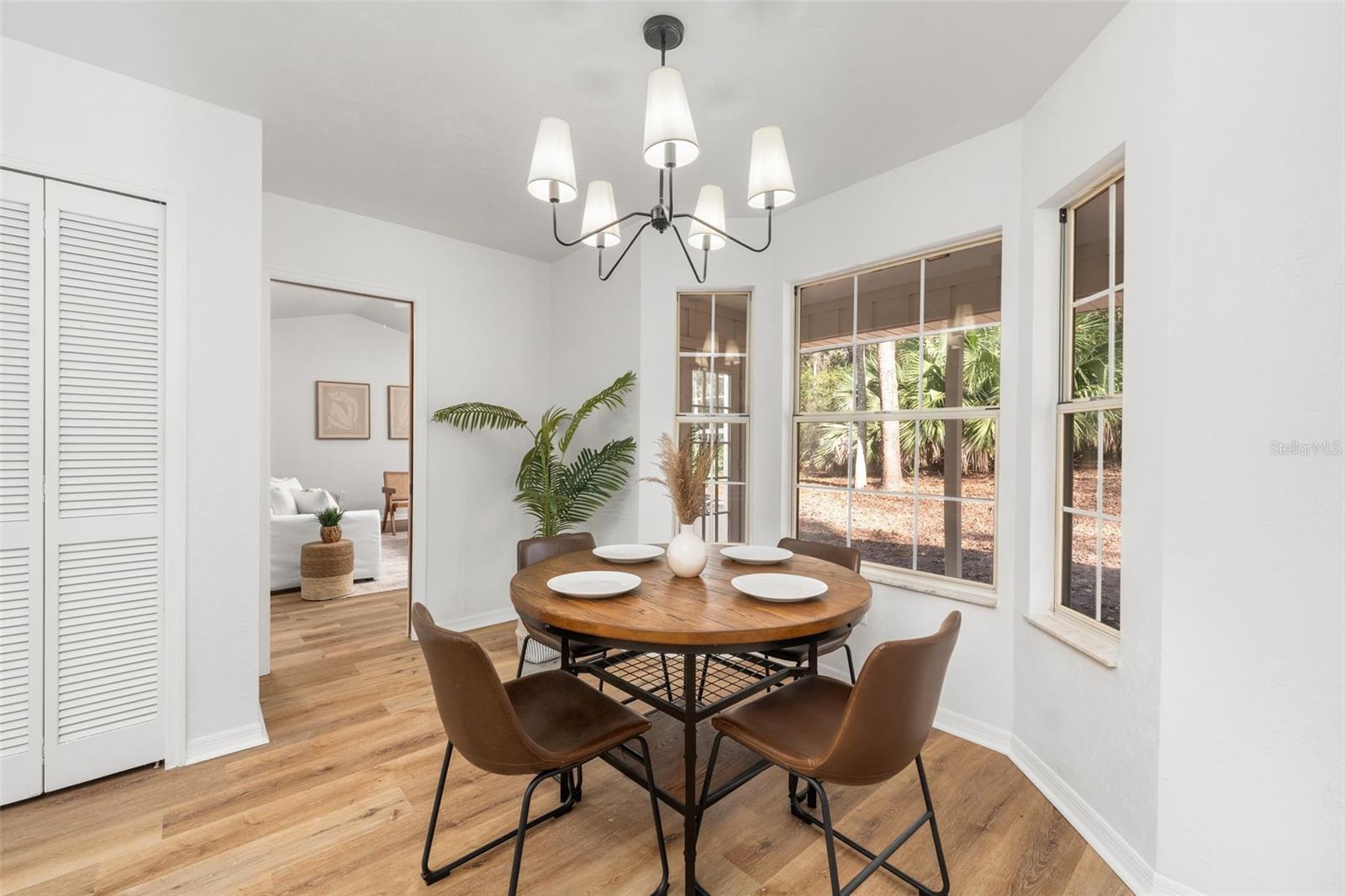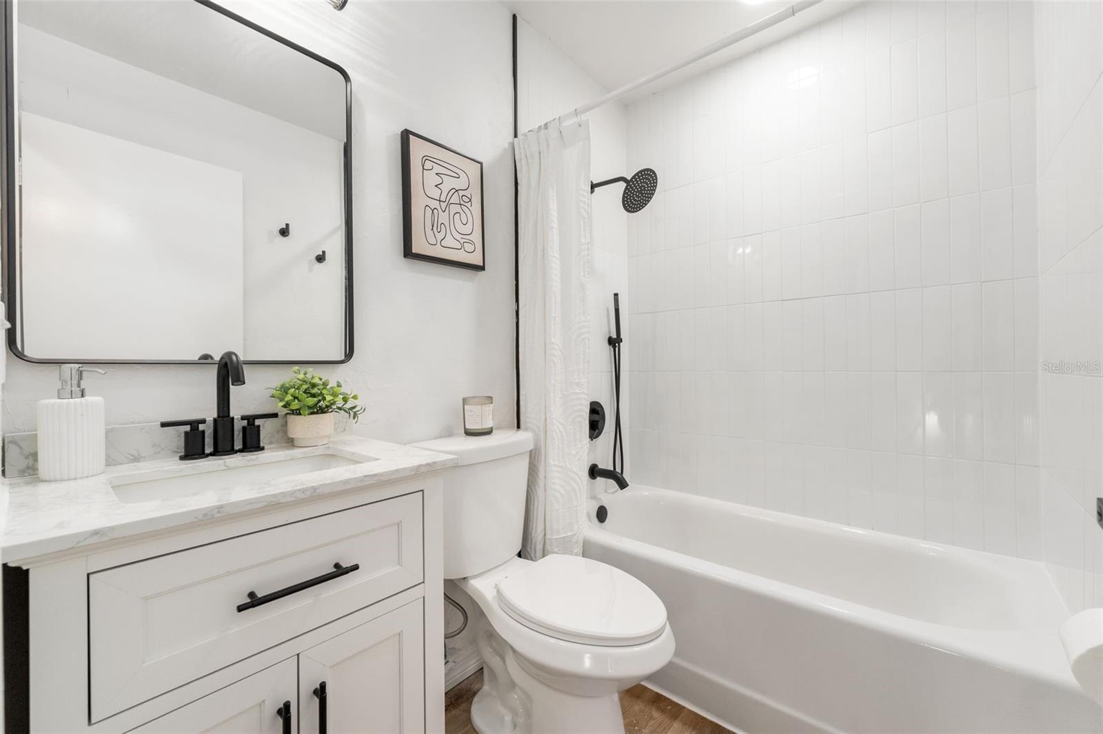 Fully Renovated home with huge front porch and garage workshop in the sought-after Blues Creek neighborhood! Raised on a solid concrete block foundation, the home offers 1,558 square feet of thoughtfully updated living space. Recent improvements include a newer roof (2021), brand-new HVAC and water heater (2025), and a full remodel featuring new kitchen, new bathrooms, new flooring, and fresh interior and exterior paint.(2025) Step inside to a warm, welcoming foyer with a coat closet. To the right, the dining room is bathed in natural light from a bay window overlooking the front porch. Straight ahead, the living room impresses with vaulted ceilings, a striking black brick fireplace, and French doors that open to a large covered back patio. Down the hall, you’ll find two guest bedrooms overlooking the front yard, along with a beautifully updated guest bath featuring a new tub with subway tile surround, modern black fixtures, and a marble-topped vanity. The primary suite is privately situated at the end of the hall and includes a walk-in closet and an ensuite bathroom with dual vanity, quartz countertops, and a spacious walk-in shower. Two additional hallway closets provide generous storage. The kitchen is located on the opposite side of the home with access from both the living and dining rooms. It features real wood cabinetry, Calacatta quartz countertops, custom butcher-block floating shelves, and a stainless steel appliance package worthy of any home chef. A sunny breakfast nook with a bay window overlooks the backyard, creating the perfect spot to start your day. Just off the kitchen is a dedicated laundry room with a storage closet and access to both the covered back porch and the oversized garage and workshop. Blues Creek is known for its network of nearby parks, walking trails, and green spaces, ideal for morning walks, bike rides, or simply enjoying the outdoors. The neighborhood is also home to abundant wildlife, and you’ll often spot deer, foxes, armadillos, possums, and birds of every kind. Nature lovers will appreciate the home’s close proximity to some of Gainesville’s most beloved state parks, including San Felasco Hammock Preserve State Park and Devil’s Millhopper Geological State Park. Don’t miss this opportunity to see this move-in-ready, one-of-a-kind home.