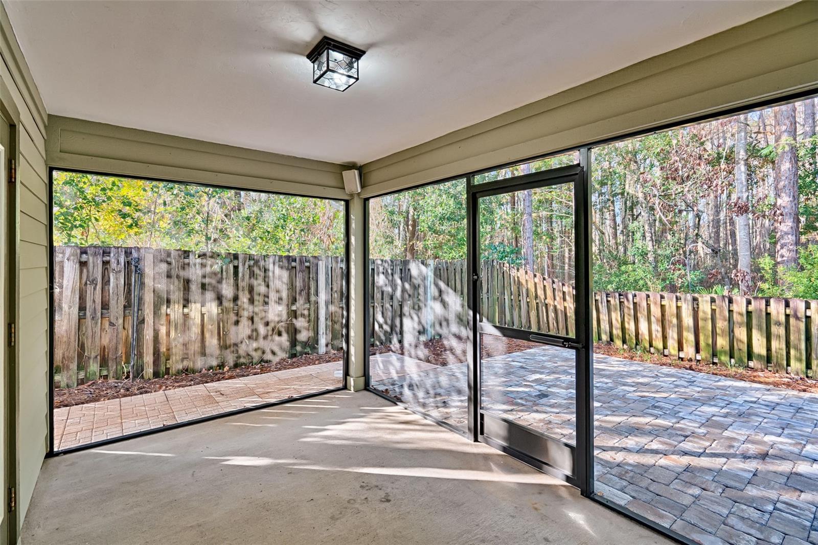 Welcome to this beautifully maintained, move-in ready 3-bedroom, 2-bath home nestled in the desirable Sorrento community. Featuring a new roof installed in 2022, this home offers an inviting open floor plan with vaulted ceilings and a stunning skylight that fills the living space with natural light. The interior has been thoughtfully updated with new luxury vinyl plank flooring installed in 2022, adding durability and modern style throughout. The kitchen is equipped with stainless steel appliances, and the split floor plan provides a spacious master suite complete with a walk-in closet. Situated on a secluded corner lot, the property offers exceptional privacy with no neighbors behind or to the left, and serene views of the surrounding nature. The home backs up to a protected nature preserve, enhancing the peaceful setting and ensuring long-term tranquility. Enjoy quiet mornings or relaxing evenings on the screened-in porch, or step out onto the new paver patio installed in 2024, the perfect space for outdoor dining, entertaining, or simply unwinding in your private backyard oasis. The home’s location within Sorrento places you just a short distance from the community’s impressive amenities, including a clubhouse, featuring a gym, as well as a pool, playground, tennis courts, and basketball courts. Conveniently located in NW Gainesville, this home is approximately five miles from the University of Florida, UF Health Shands Hospital, and the VA Hospital. You’ll also be close to local shopping, restaurants, parks, and walking trails, making this a wonderful blend of comfort, privacy, and convenience.