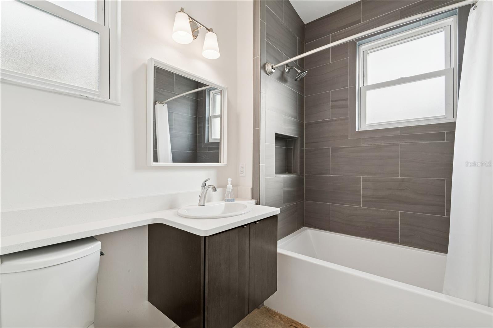 Welcome to Gainesville's thriving Cohousing community. This bright, contemporary home's features include an open floor plan, cathedral ceilings throughout, great natural light, large kitchen island with quartz countertops, polished concrete floors, metal roof and solar panels with backup batteries. Spacious primary bedroom has twin closets and ensuite with walk-in shower. The 2nd bedroom is adjacent to a guest bath with tub/shower. A cozy office area near the front delights for morning coffee or at-home work. The kitchen area adjoins a spacious living area. There is a large studio/flex space at the back which could be converted to a 3rd bedroom. The home's screened-in porch and 3 patios allow full enjoyment of outdoor living. Information about cohousing and this specific community is attached and a community tour/orientation is easily arranged. The home has been gently occupied since its 2019 construction. Low energy costs verified by GRU records. Plan to see today.