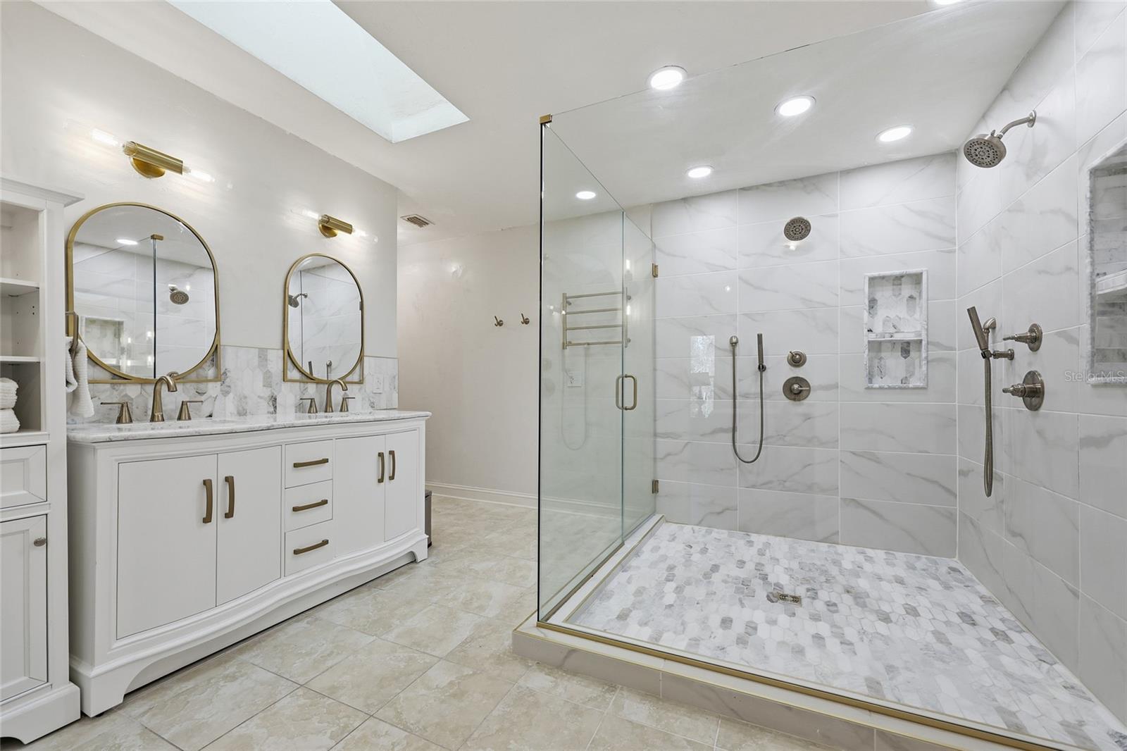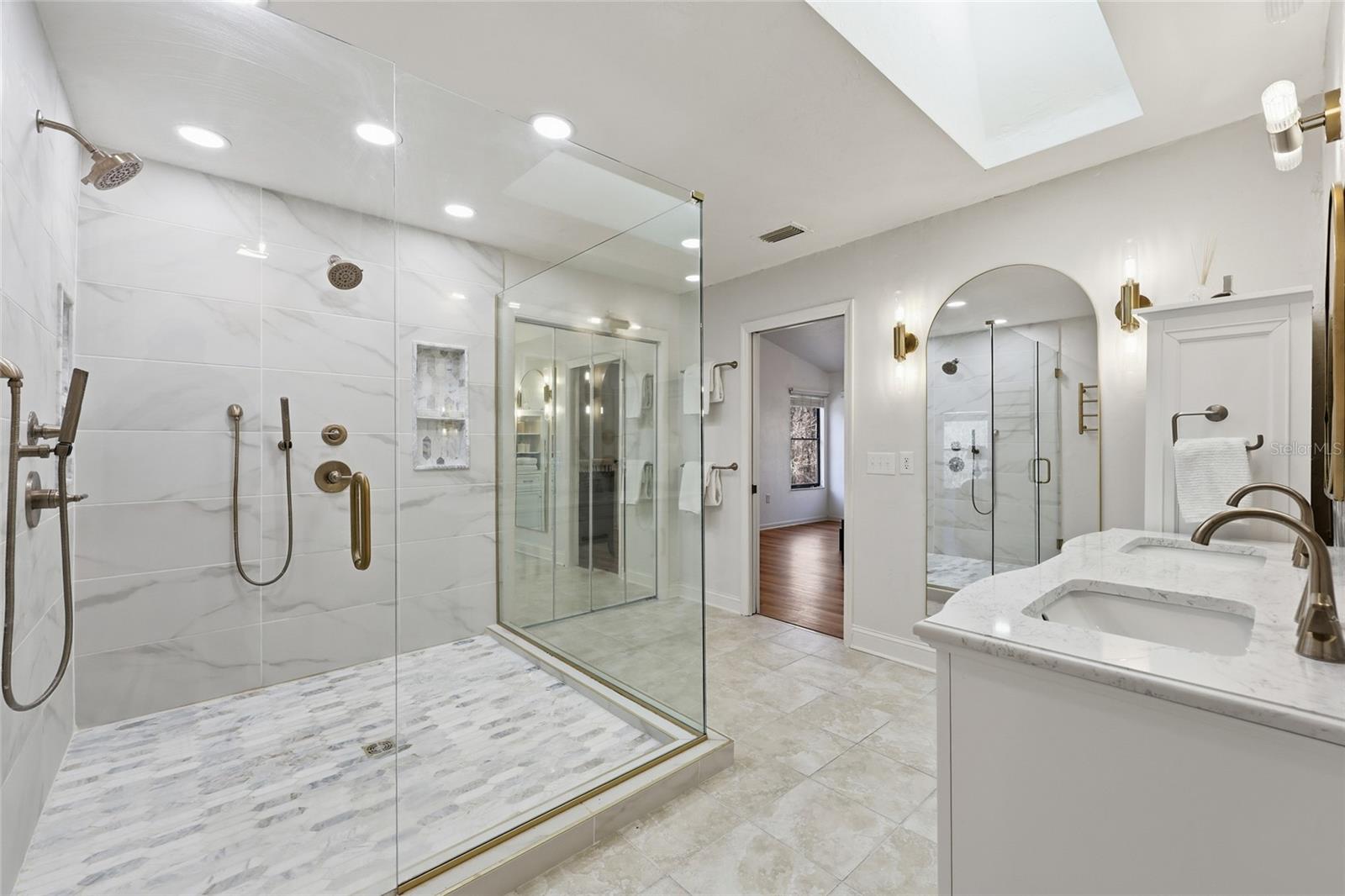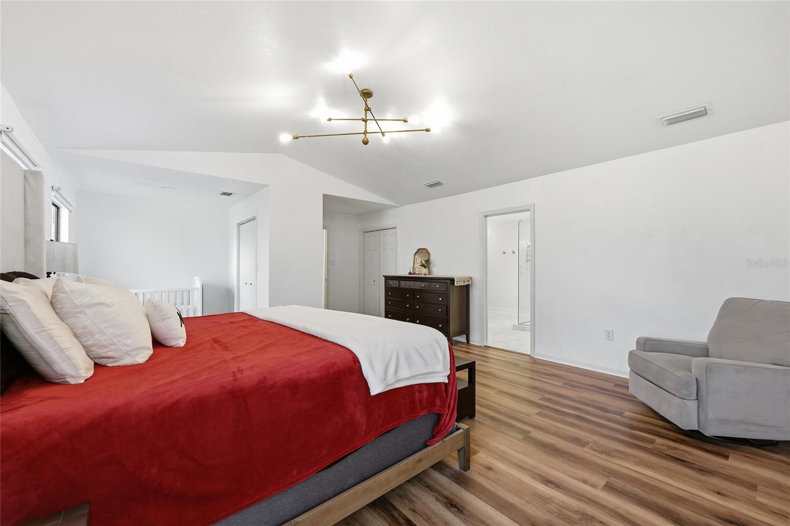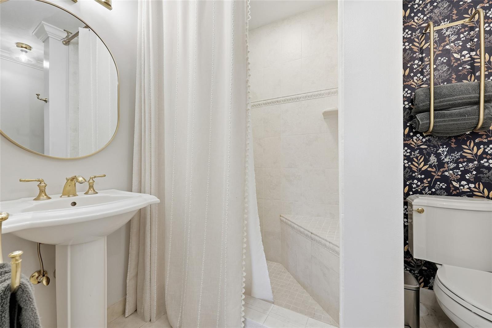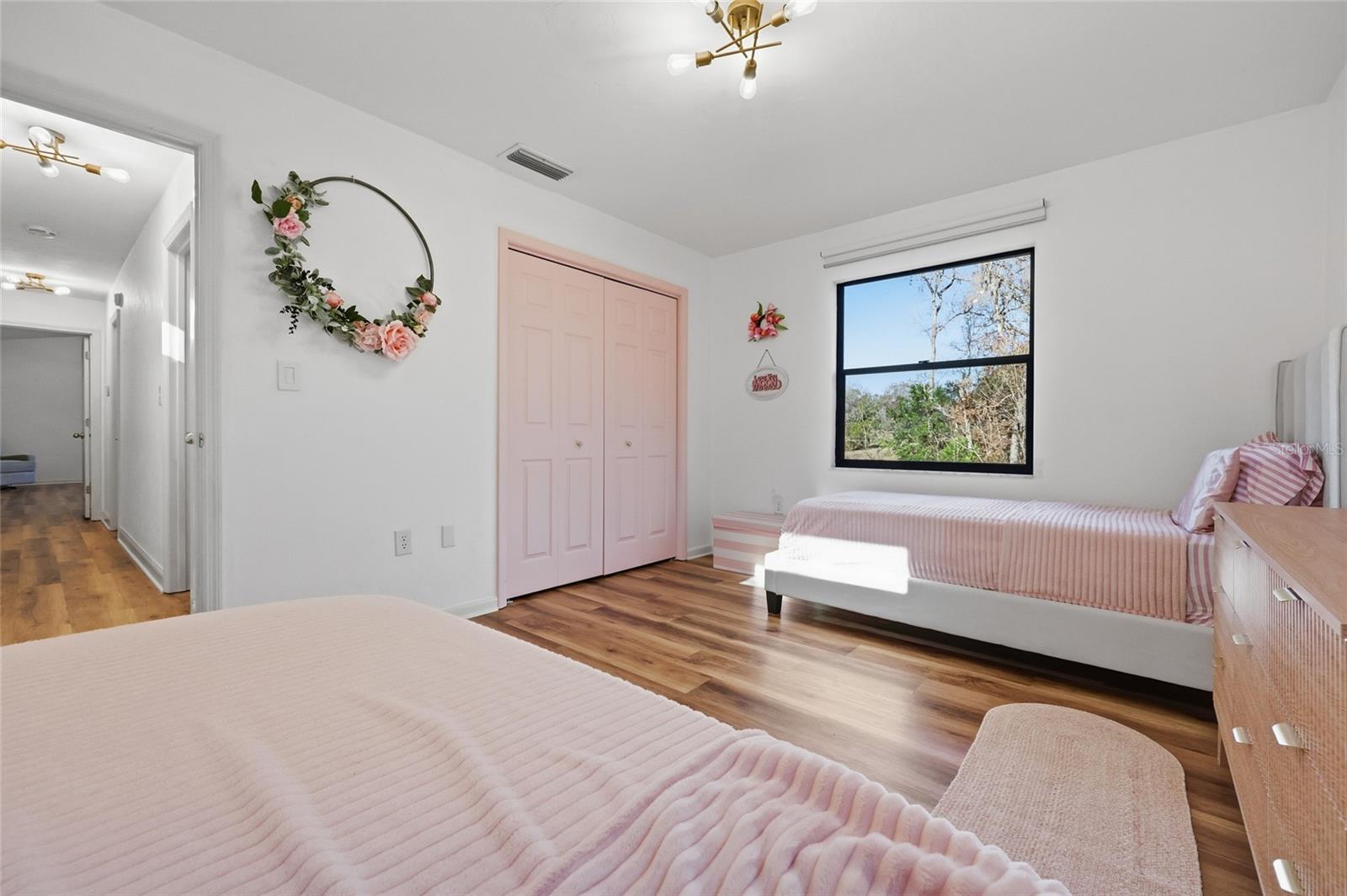 Tucked away at the end of a quiet cul de sac this fully remodeled home offers privacy charm and a peaceful natural setting complete with a babbling creek and daily deer sightings. As you enter you are greeted by updated lighting and new LVP flooring throughout with tile in the kitchen and laundry. The stairs lead up while the main living space opens with high ceilings in the living room flowing seamlessly into the dining area and kitchen. The kitchen has been thoughtfully opened up and completely refreshed with stunning Taj Mahal quartzite countertops installed in 2024 a new workstation sink with water filtration tile backsplash and an oversized island with eat in seating. Stainless steel appliances and a wine fridge were also added making this space both beautiful and functional. Just off the kitchen is the family room with a wood burning fireplace perfect for cozy evenings. The laundry room features cabinetry a sink and stylish wallpaper with the washer and dryer. Under stair storage provides excellent pantry space. A cute updated first floor bath and a bedroom just off the living area complete the main level. Upstairs you will find 2 additional bedrooms with blackout shades. The second story shared bath has been updated with a new vanity, tub shower combo, and a separate toilet area. The primary suite is a true retreat featuring a vaulted ceiling a spacious layout including seating area or office alcove and an oversized bathroom with a giant marble floored shower, dual vanities with marble backsplash and three closets including a large walk in. Outside the home truly shines with a brand new wood deck completed in 2025 rated to hold up to sixteen thousand pounds overlooking the creek and wooded backdrop. The area under the deck has been cleared creating additional usable space. Additional improvements include a new roof in 2024, and a hybrid water heater installed in 2025. This home combines modern updates with a serene setting and is truly move in ready.