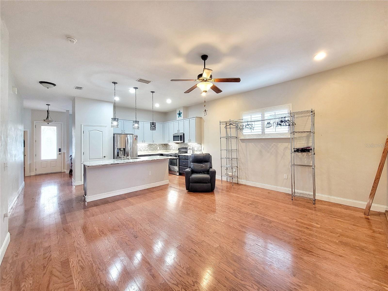 Incredible opportunity in Longleaf! One of Gainesville’s most desirable communities, this spacious 3-bedroom, 2-bath, just over 1,600 sq. ft. home offers numerous upgrades and a flexible canvas for your final personal touches. The open-concept kitchen, dining, and living area features a renovated kitchen (2021) with granite countertops, stainless steel appliances, plantation-style shutters, updated lighting and ceiling fans, and engineered hardwood flooring throughout. The generous primary suite includes an opulent bathroom with a jetted soaking tub, walk-in shower, double vanity with solid-surface countertops, and extra cabinet space. French doors open to a large covered and screened patio with ceramic wood-look tile, overlooking a low-maintenance astroturf backyard. The home features durable, low-maintenance HardieBoard siding, a rear-entry two-car garage, and the association maintains the front yard for easy upkeep. Community amenities include a playground, pool, and master-planned features perfect for families. The location offers amazing schools, easy access to UF, Shands, I-75, and proximity to the budding city of Alachua. With the home on Clay Electric, not Gainesville Regional Utilities, energy costs are kept low. A fantastic opportunity to own a well-upgraded home in a highly sought-after neighborhood!
