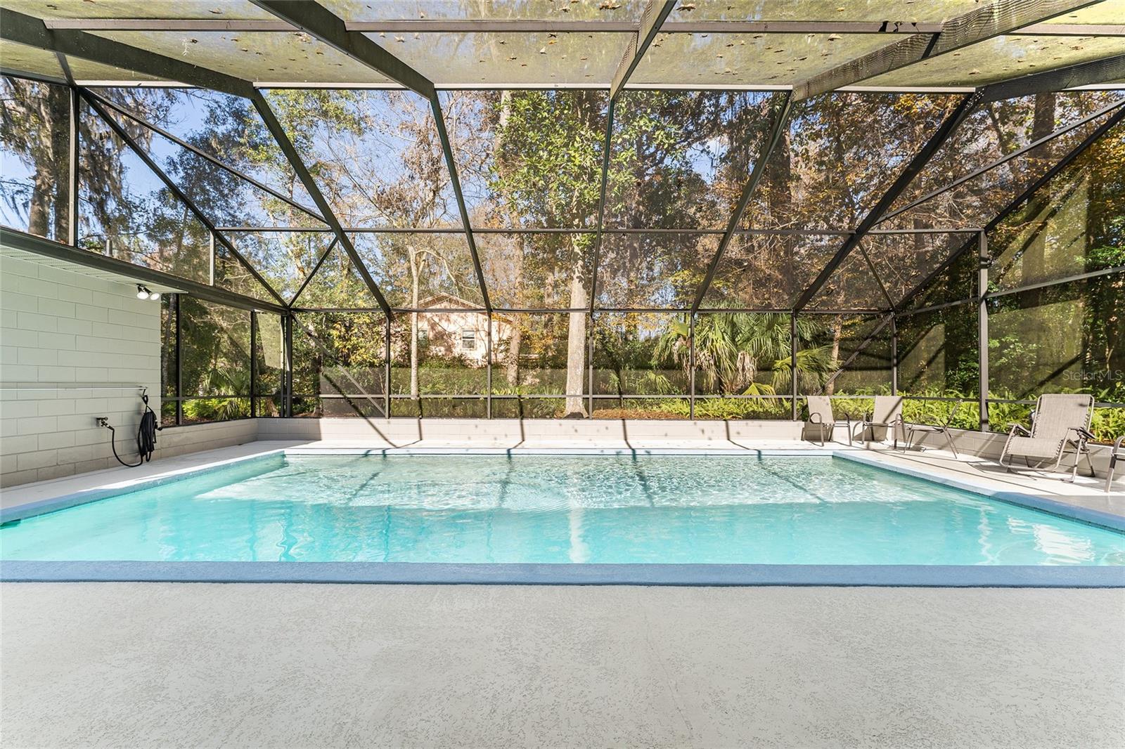 One or more photo(s) has been virtually staged. Welcome home to Maple Hill — where comfort, space, and community come together. Nestled in the highly desirable Northwest Maple Hill neighborhood, this beautifully maintained 4-bedroom, 3-bath pool home offers the perfect setting for family living, entertaining, and making lasting memories. Built with solid concrete block construction, the home sits on a private lot, ideal for relaxation time, pets, and outdoor play. The large, screened pool and lanai create a safe and inviting space for family gatherings, weekend barbecues, and relaxing evenings at home. This residence has been thoughtfully updated throughout, reflecting years of careful maintenance and pride of ownership. Recent improvements include a new roof, updated plumbing throughout most of the home, two zoned HVAC systems (one newer), fresh interior and exterior paint, updated flooring, recently resealed driveway, and mostly replaced windows for improved comfort and efficiency. At the heart of the home is the beautifully renovated chef’s kitchen, featuring abundant cherry-faced cabinetry, stainless steel appliances featuring a 5-burner natural gas range, and plenty of storage — perfect for family meals and entertaining. All three bathrooms have been fully renovated with tasteful finishes and modern design. The flexible floor plan offers generously sized bedrooms, a separate living room, and a separate family room with a cozy wood-burning fireplace, providing space for everyone to spread out while still staying connected. Ideally located near the University of Florida, shopping, medical facilities, hiking trails, nature parks, and the center of town, Maple Hill is a wonderful community to call home. This move-in-ready home offers the space, upgrades, and location today’s families are looking for.