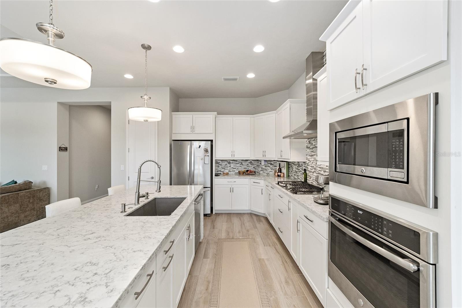 Welcome home to this stunning Oakmont gem in Gainesville, where luxury meets family-friendly living. This 3 bedroom, 2 bath home with 2,127 square feet offers an open, inviting layout designed for both comfort and connection. The great room showcases tray ceilings and a stone-accent gas fireplace, creating a warm and elegant gathering space. At the heart of the home, the chef-inspired kitchen features a large quartz island and high-end stainless steel appliances with an abundance of storage space, ideal for entertaining or busy everyday life. The private owner's suite feels like a retreat, featuring tray ceiling, spacious walk-in closet and a spa-like en suite bath complete with a glass enclosed shower and luxurious soaking tub. Two additional bedrooms are generously sized and thoughtfully located on the opposite side of the home, ideal for guests or work-from-home needs. A flexible bonus room adds even more functionality. Oversized sliding glass doors lead to a screen lanai with hot tub and a fenced backyard backing to serene green space, no rear neighbors and plenty of room to relax or play. Enjoy access to Gainesville's premier neighborhood amenities, including a grand clubhouse, fitness center, resort-style pool with lap lanes and zero-entry play area, playground, tennis and basketball courts. This home truly offers comfort, privacy and an exceptional community lifestyle.