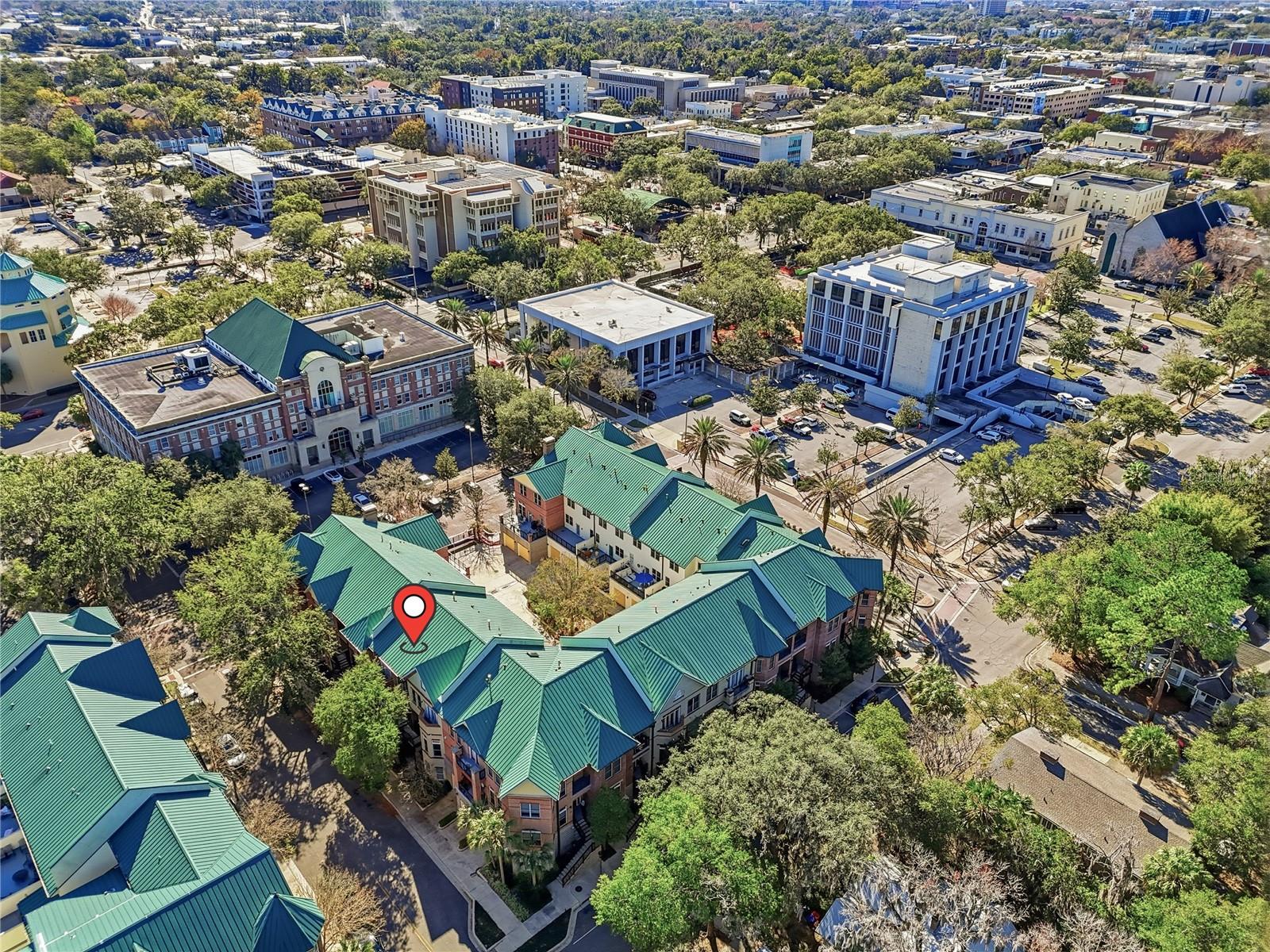 Welcome to upscale living in this stunning 3-bedroom, 2.5-bath, two-story condo that blends a beautifully designed space with comfort, and convenience. The spacious family room features a cozy fireplace, custom built-in shelving, and gorgeous wood flooring that enhances the home’s common spaces. The kitchen is a dream for both everyday living and entertaining, offering stainless steel appliances, granite countertops, a breakfast bar with seating, dining area, and an additional living space with more built-in shelving. Just off the kitchen, enjoy a roomy back porch—perfect for relaxing or hosting guests. Freshly updated with new paint throughout and carpet in the bedrooms. The home also features elegant plantation shutters on every window. The spacious primary suite boasts a walk-in closet, private balcony, and a luxurious en-suite bathroom with dual sinks and a generously sized shower. Two additional bedrooms provide ample space for family, guests, or a home office. Additional highlights include a one-car attached garage located in the basement with interior access, all within a private, gated courtyard, plus one additional designated parking space. Ideally located near schools, shopping, dining, and entertainment. The condo is less than 1.5 miles from the University of Florida—perfect for enjoying game days and all the amenities Gainesville provides. Don’t miss this rare opportunity to enjoy luxury living with unbeatable convenience!