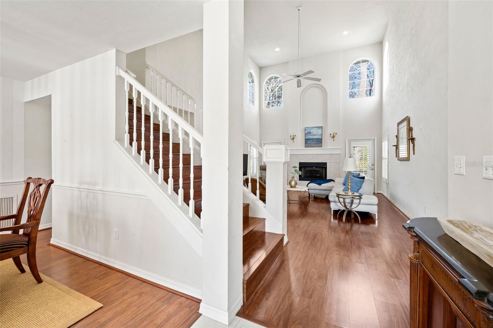 Coming to market significantly below market value for a quick sale, this exquisitely appointed former builder model home resides in a coveted NW neighborhood with top-tier schools. Featuring a 2021 roof, 2018 HVAC systems, and a recently painted exterior, the residence offers over 2,400 square feet of refined living space and over 3200 under roof. Laminate flooring graces the main areas, staircase, and first-floor primary suite. The expansive kitchen boasts stainless steel appliances, ample counters, utility desk built-in and a breakfast area worthy of primary dining. The great room, adorned with a gas fireplace and cathedral ceilings provides so much volume and it opens to a serene screened porch with tranquil wooded views of the common areas. Plantation shutters add to its elegance. Upstairs, three bedrooms, a shared bath, and a versatile bonus room (potential 5th bedroom or office) await. The formal dining room can also be a flex room/study. All the space, functionality and versatility you need.The primary suite pampers with a double vanity, walk-in shower, and jetted tub. A large laundry room with sink leads to an oversized garage. Nestled on a cul-de-sac, with low $412/year HOA fees, and washer/dryer included—this home is elegance ready to welcome you home. Other features include a half bath, storage spaces Washer and dryer stay. $1000 credit towards minor kitchen backsplash repair and shower trim repair from splashes. Cameras onsite.