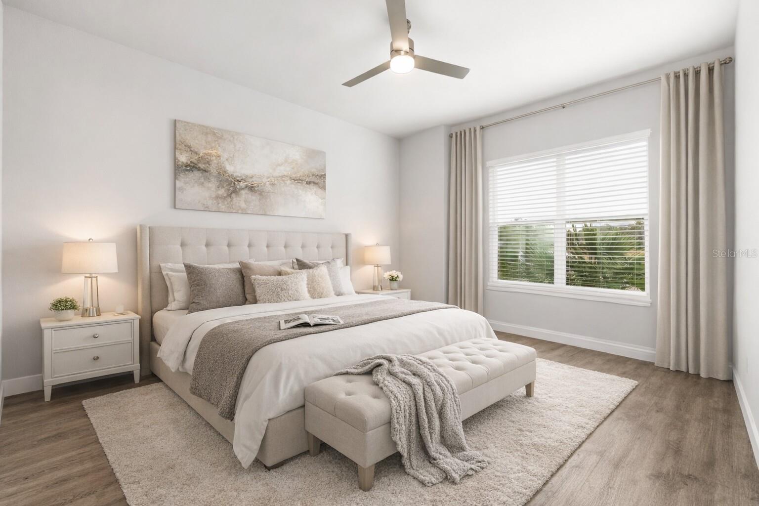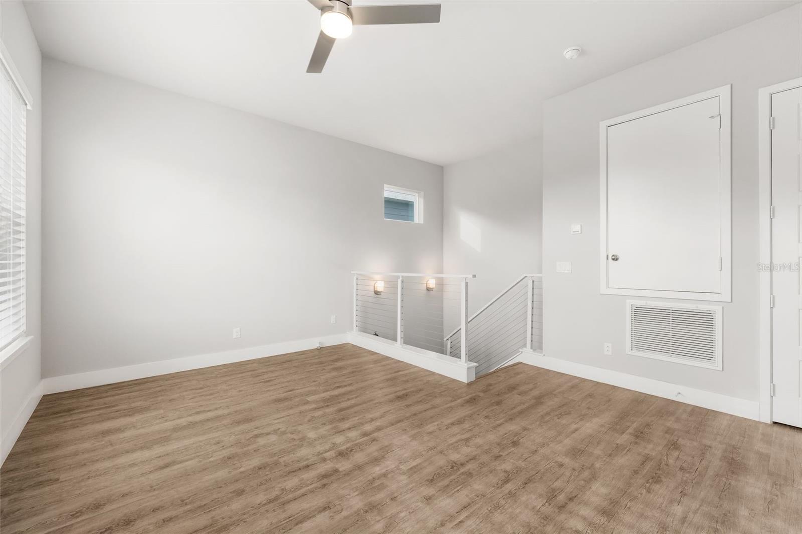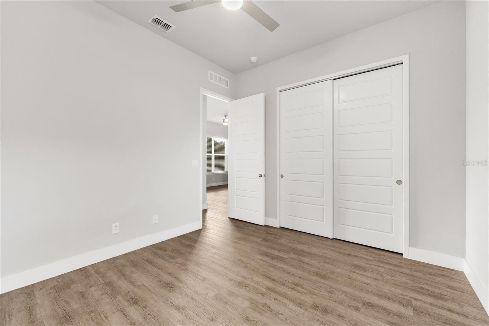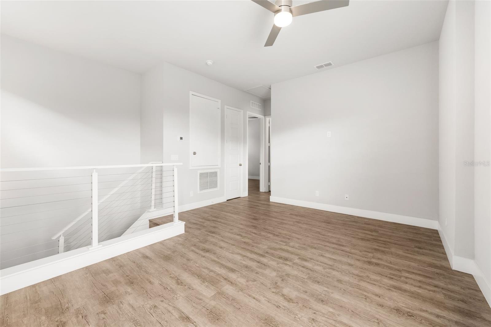 One or more photo(s) has been virtually staged. One or more photo(s) has been virtually staged. Welcome to this Grand Preserve at Kanapaha move-in ready contemporary home in Gainesville, FL offering an unbeatable location just minutes to the University of Florida, UF Health Shands Hospital, the VA Medical Center, North Butler Plaza, and Celebration Pointe. This 4-bedroom plus loft, 2.5-bath home with 2,077 square feet delivers the ideal blend of modern style, energy efficiency, and functional living — perfect for a primary residence, second home, or investment property. Designed with an open concept floor plan and luxury vinyl plank flooring throughout (no carpet), the main level features a flexible front bedroom with a large walk-in closet, ideal for a home office or guest room. The spacious great room showcases 11-foot ceilings plus trays and abundant natural light, creating an airy and inviting living space. The kitchen is the heart of the home, offering a large center island, stone countertops, designer backsplash, deluxe touchscreen stainless steel appliances with double oven range, and a walk-in pantry with wood shelving. The dining area flows seamlessly to stackable sliding glass doors that open to a screened paver porch and fenced backyard, providing excellent indoor-outdoor living. The primary suite is conveniently located on the first floor and features a spacious walk-in closet with custom built-ins and a beautifully appointed en suite bath with dual sinks, walk-in shower, and private water closet. Also on the main level are a half bath, laundry room with storage and utility sink, and access to the rear-entry two-car garage. Upstairs, a large loft or bonus room provides a second living area, media room, or play space, along with two additional bedrooms and a full bath. Modern railing up the stairs stands out in this exceptional home. This energy-efficient home includes spray foam attic insulation, a tankless gas water heater, and insulated low-E vinyl windows. Smart home technology allows app- and voice-controlled lighting, thermostat, door access, and security systems on both floors. Additional highlights include high ceilings, tray ceilings, 8’ six-panel doors, stone counters throughout, tasteful tile selections, generous windows, ceiling fans in all rooms, custom closet systems, upgraded fixtures and abundant natural light. Washer/Dryer stay. Residents of Grand Preserve enjoy resort-style amenities including a clubhouse, pool, fitness center, and sidewalks. The HOA covers front lawn maintenance, high-speed fiber internet, and full cable with DVR, adding exceptional value to the HOA fees. The community is serviced by Clay Electric, known for competitive utility rates. This Gainesville home offers modern construction, smart features, stylish and luxe finishes and a prime location near UF, hospitals, shopping, dining, and major employers — a rare opportunity combining convenience, comfort, and lifestyle.