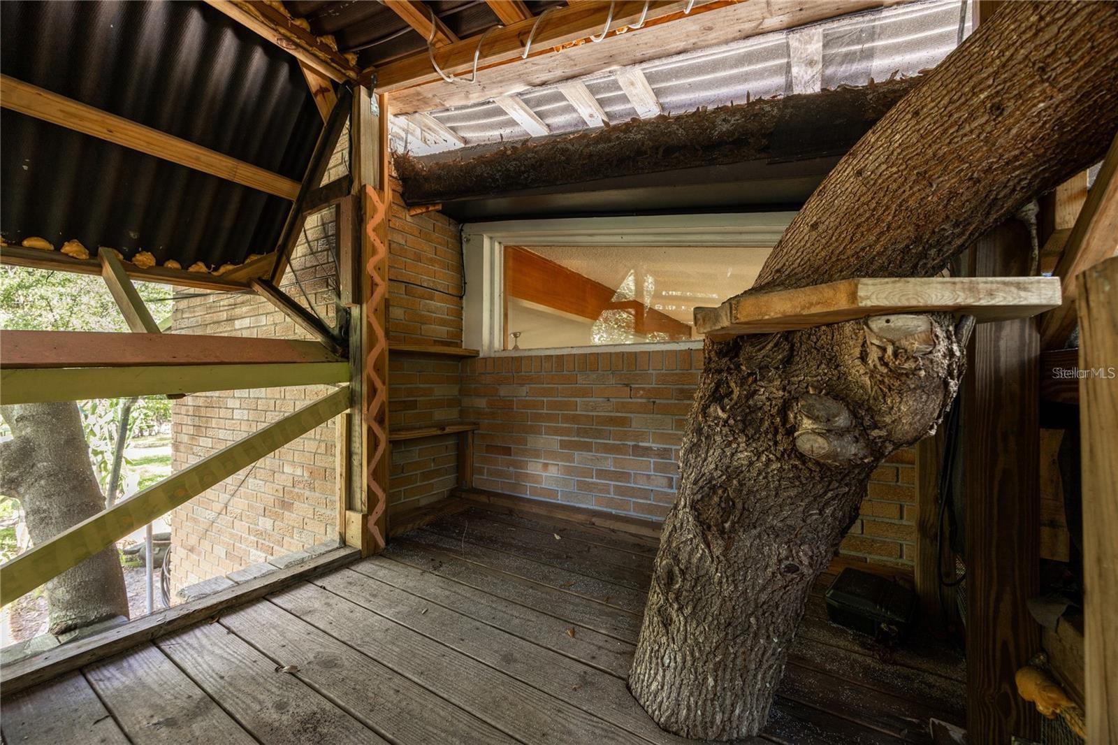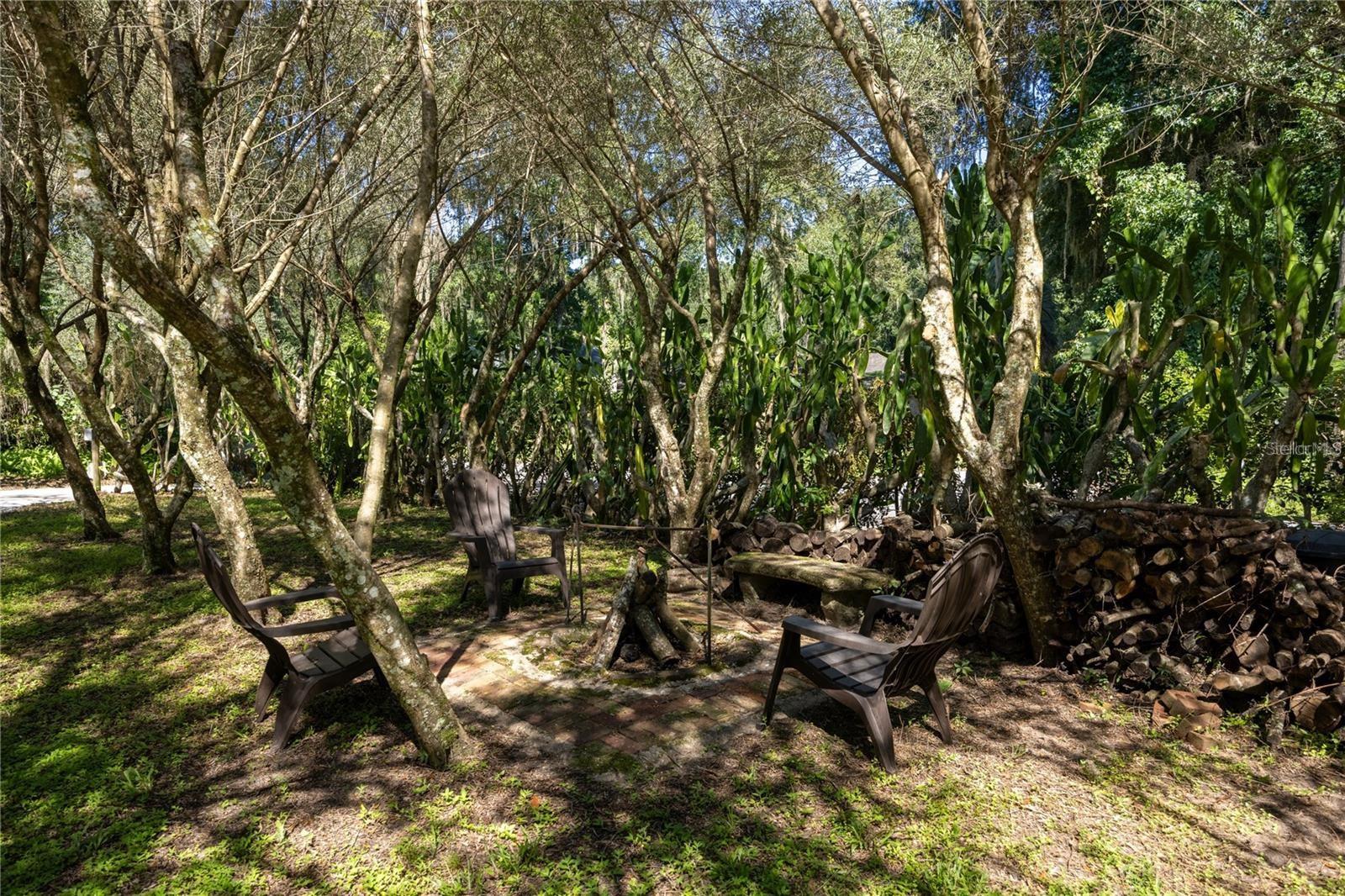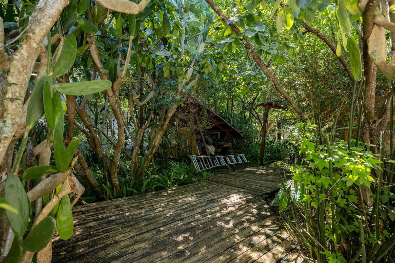 For sale in Black Acres, an amazing Mid-Century Modern brick pool home complete with tree house. This 4 bedroom plus flex space, 3 bathroom home was built in 1959 and is blocks from the University of Florida Law School. Located on nearly a half an acre lot, this 2,984 heated and cooled home has all the charm yet has been thoughtfully updated. Period finishes include gorgeous terrazzo floors with unique decorative designs, vaulted wood beam ceilings, brick construction and vintage tiled bathrooms. Located in NW Gainesville, Black Acres is a quiet tree lined community within walking distance of Loblolly Woods Nature Park, Westside Park and Hogtown Creek. Just a few blocks away is a Publix Shopping Center with area shops and restaurants. Updates include new Kitchen in 2010, new windows, tankless gas water heater in 2015, water supply lines replumbed, HVAC 2010, mini-splits in 2022 and recoated roof in 2025. From the circular drive, you enter through a grove of olive trees and cactus that offer beauty and privacy from the street. On the front porch you will love the double front door that allows a ton of natural light into the foyer. The terrazzo, found throughout the entire home, is in amazing condition. The change of color and decorative designs offer a fun play on light as you move from area to area. To the right of the Foyer is the large Living Room with wood beam vaulted ceiling, wood burning fireplace with stone hearth and vintage tile and built-in wood cabinets. The space flows seamlessly into the brick-walled Florida Room overlooking the rear garden and screened, in-ground pool. To the left of the Florida Room is the large open Family Room. There is a breakfast bar that opens to the Kitchen. At the end of the Family Room is a second fireplace and wood oven. To the right is a storage closet and to the left the room opens to the Kitchen and Dining Area. The Kitchen has stainless steel appliances, double electric oven, gas range, microwave, skylight and granite counter tops. The Dining Area is open, has the wood beam vaulted ceiling, storage closet and solar tube. To the right of the Dining Area is access to the In-Law Suite and Laundry closet. The laundry area includes a washer and gas dryer. The In-Law Suite has a large bedroom with built-in bookshelves, separate entrance, access to the garage and private patio and covered, screened porch, through the bedroom you enter the flex space. There is a full kitchen and en suite bathroom. This flex space could be the living room of the In-Law Suite, additional sleeping space, office or studio. It has a second, separate entrance as well. The screened porch off the flex space overlooks a decorative creek bed with lush tropical foliage. Enjoy the view from the porch or outdoor soaking tub. To the left of the dining area are two guest bedrooms that share a guest bathroom. One bedroom has a vaulted ceiling and built-ins. The other overlooks the front yard and is full of natural light. The guest bathroom has a tub/shower and has been impeccably maintained. To the left of the foyer is the Primary Bedroom with built-in dresser, two large closets and en suite bathroom. The large room has a vaulted ceiling and double window. The vintage bathroom is in beautiful shape with a large vanity and shower/tub. Two car garage. Partially fenced rear yard. The side yard includes a two story treehouse. The yard includes citrus, persimmon, fig, blueberry and grapes. Zoned for Parker Elem, Westwood Middle and GHS.