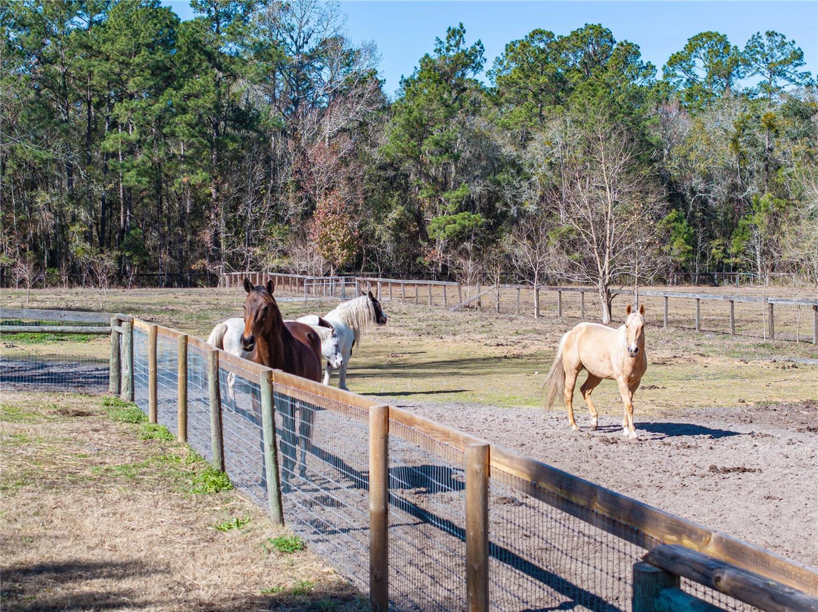 Welcome to this stunning 10-acre fully fenced horse property offering the perfect blend of peaceful country living and convenient city access. The 4-bedroom home features wraparound porches and a 30’ saltwater pool added in 2020, ideal for outdoor entertaining and relaxation, along with recent updates including new appliances in 2024, granite countertops, a new upstairs bathroom shower, new garbage disposal, and a new HVAC system in 2020. A huge bonus room above the garage offers flexible space and could serve as a fourth bedroom, home office, media room, or attached in-law suite. Equestrians will appreciate the exceptional horse barn featuring six stalls, a tack room, wash rack, workshop, and office. This barn is built of sturdy concrete block to withstand the elements! The property features three feed stalls in one pasture, multiple paddocks, a riding ring all with excellent potential to generate income by boarding horses. Sit and unwind on the front porch overlooking the picturesque one-acre pond. Tucked away in a quiet, secluded-feeling area of Gainesville yet just minutes from restaurants, shopping, and local hospitals, this rare property is serviced by City of Alachua utilities (not GRU), offering both lifestyle and long-term value.