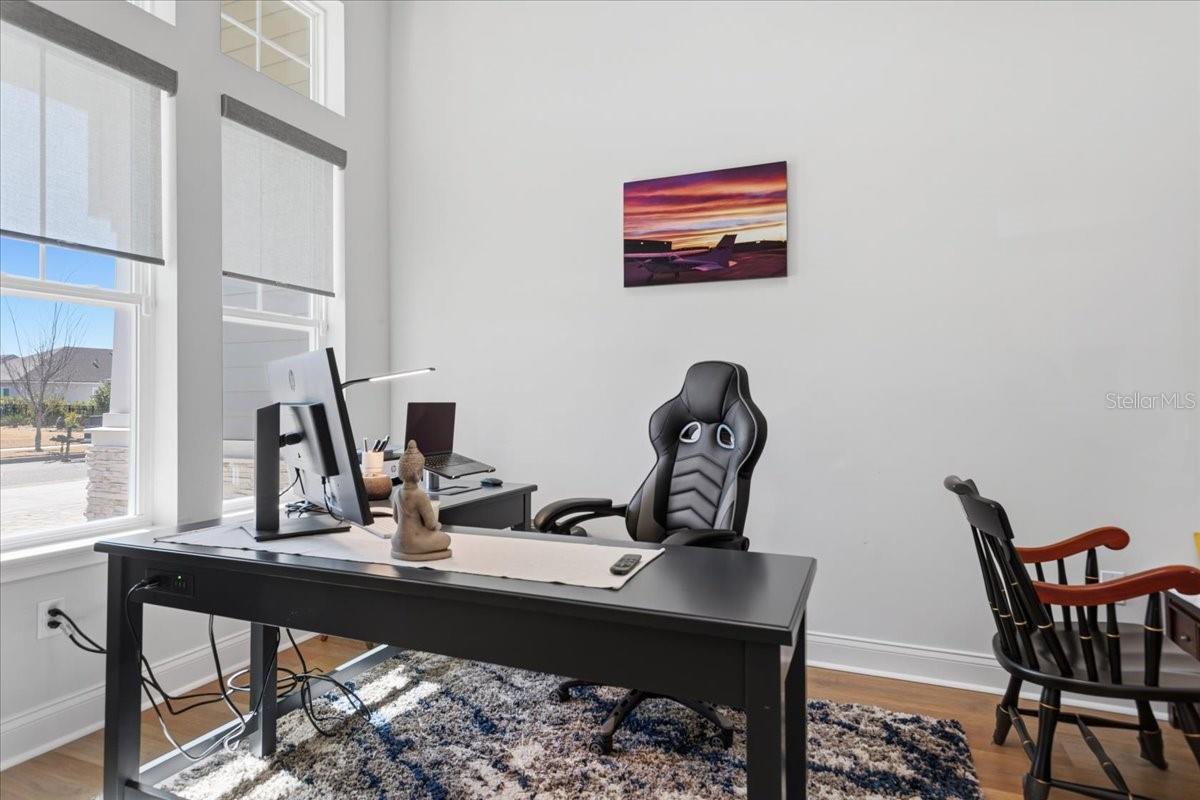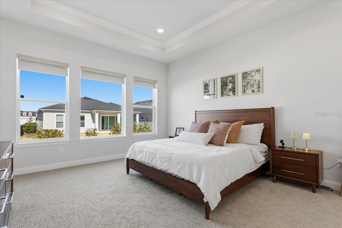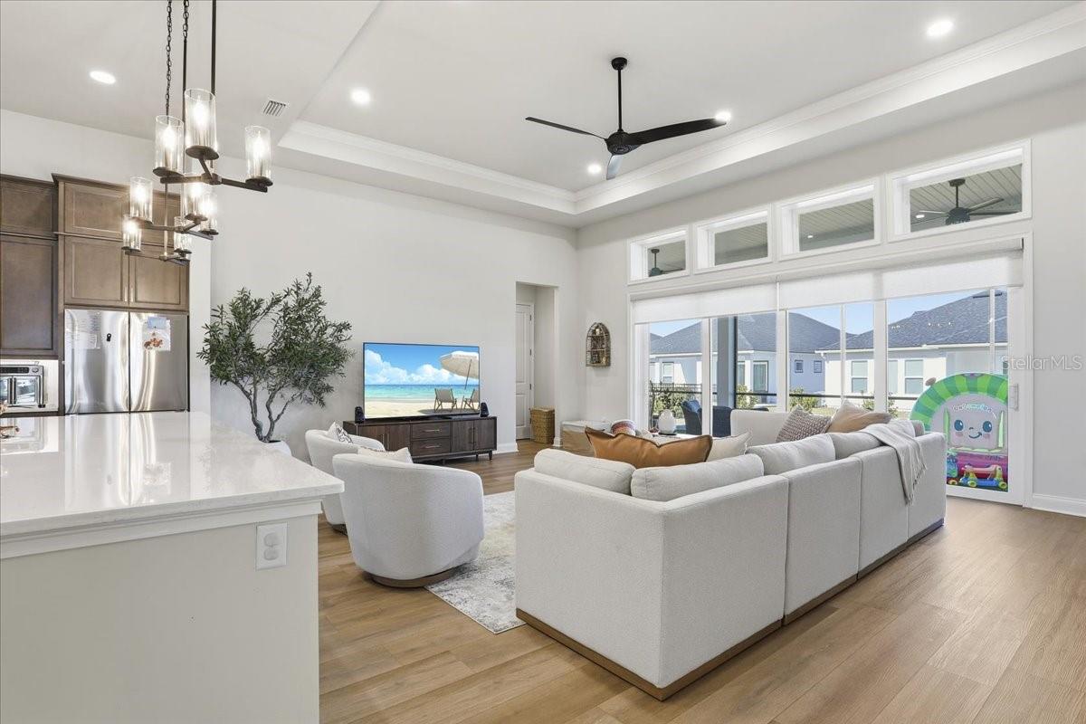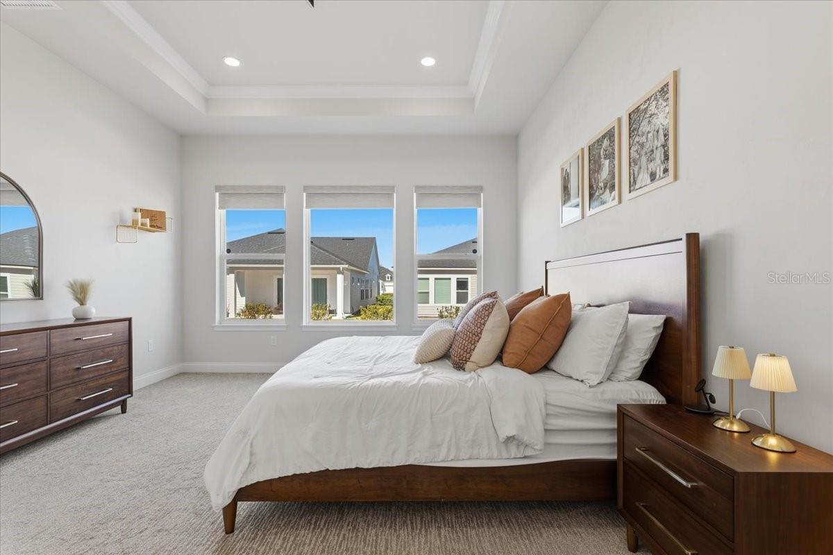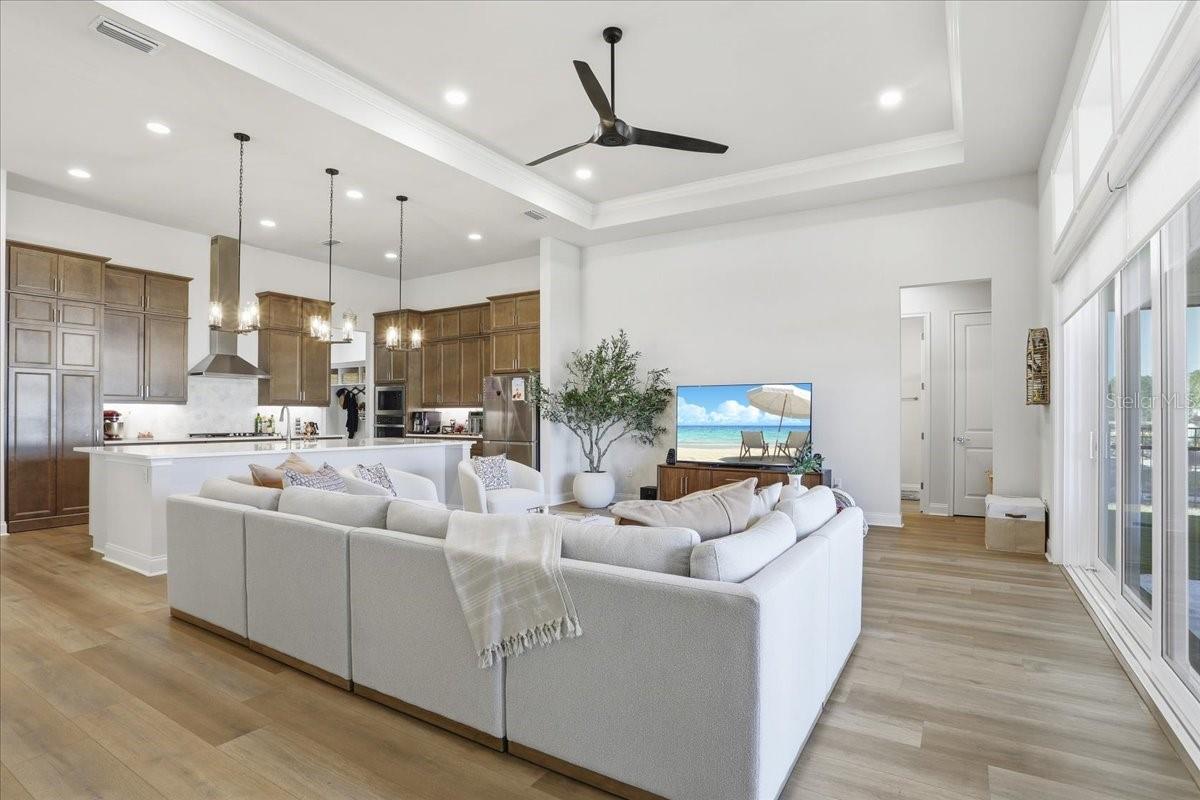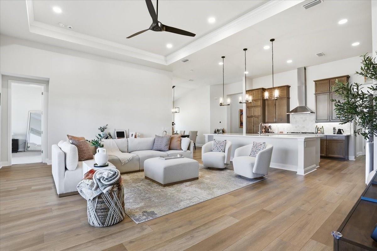 Located in the warm and inviting Oakmont community, the home offers access to a variety of amenities and activities designed for comfortable living. Coming soon New Pickle Ball courts in addition to the Tennis courts, Basketball court & Volleyball court keeps the spirit alive. Elegant, calm interiors create a welcoming sense of home the moment you step inside. A soothing, mellow color palette greets you as you enter the house, instantly setting a relaxed ambiance and easing the stress of the day. The home is thoughtfully split into three distinct sections, providing privacy for each area, and includes a dedicated study ideal for working from home. The entryway gently guides you into a soaring 12' Ft. high ceilings space with an open-concept living, dining, and kitchen space. A spacious kitchen island is perfect for hosting buffet-style gatherings, seamlessly flowing into the living area and extending outdoors to the long back patio through wide sliding doors. If one plans to extend cooking in the Rear Patio, provisions for plumbing line, natural gas and exhaust vent for future summer kitchen has been already made. Interesting feature of the Kitchen is camouflaged access to the walk-in pantry in the kitchen cabinets. Tandem Garage gives an extra space to park a car or Golf cart. Also, it can be used as a storage space. Please Tour the house to experience in person and appreciate the upgrades.