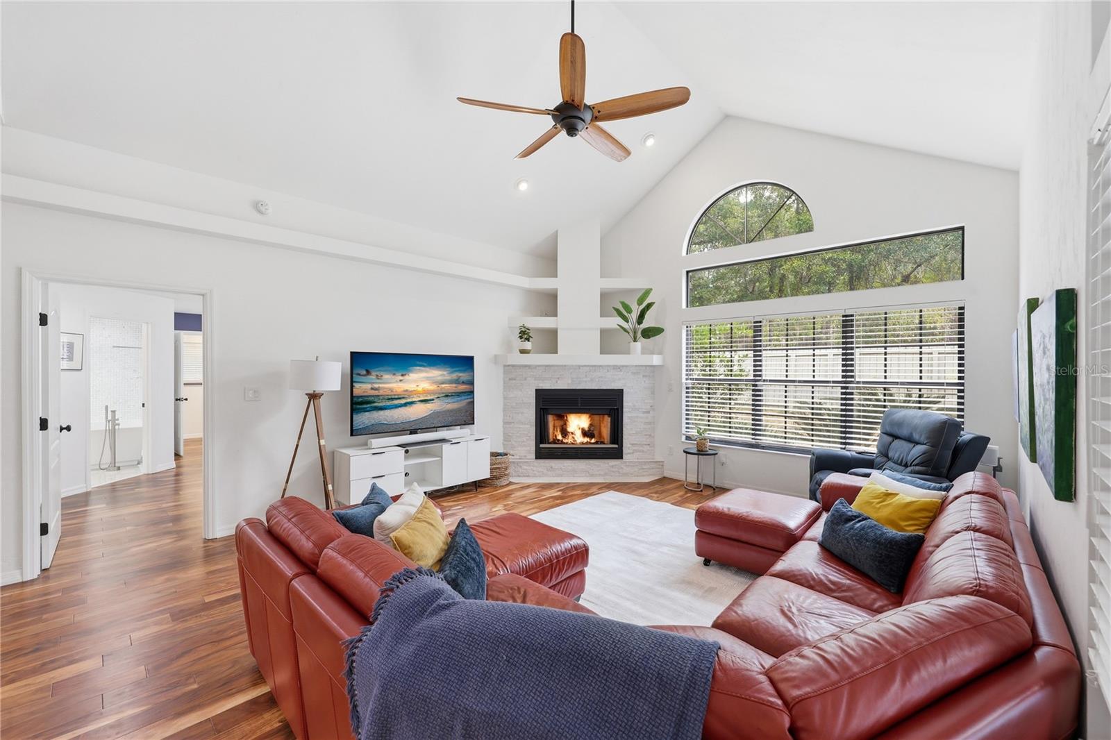 Timeless Craftsmanship in Haile Plantation’s Sought-After Oakmont Community. Built by renowned local builder Tommy Waters, this exceptional 5-bedroom, 3 full bath, 2 half bath residence offers 3,750 total square feet of thoughtfully designed living space, with character and craftsmanship evident in every room. Lovingly maintained and reflecting true pride of ownership, this home also features a brand-new roof scheduled for installation this month—providing added value and peace of mind. From the moment you enter, you’re welcomed by spacious formal living and dining areas filled with natural light from tall windows throughout. Beautiful engineered hardwood flooring flows seamlessly through the home, creating warmth and continuity, while the bathrooms showcase a modern touch with designer tile finishes. The large kitchen is both functional and inviting, offering abundant granite countertop space, generous cabinetry, and open views to the main living areas—ideal for entertaining or everyday living. A gas fireplace adds charm and comfort to the gathering space. All bathrooms have been fully and tastefully remodeled. The spacious primary suite is a true retreat, featuring a bright white bathroom with a skylight over the soaking tub and dual oversized walk-in closets. A rear bedroom with its own private entrance provides flexibility for an in-law suite, guest quarters, or private office. Step outside to your personal backyard oasis: a heated, chlorine-free pool under a screened enclosure, complete with a built-in grill and convenient outdoor half bath—perfect for year-round Florida living. The meticulously maintained yet easily managed landscaping surrounds the property, enhancing its curb appeal. Additional highlights include a large laundry room and an oversized, side-facing two-car garage. Located in the highly desirable Haile Plantation community, residents enjoy access to the Haile Village Center, Haile Country Club, and miles of scenic walking trails—all within a top-rated school district. This is a rare opportunity to own a beautifully crafted Tommy Waters home in one of the area’s most sought-after neighborhoods.