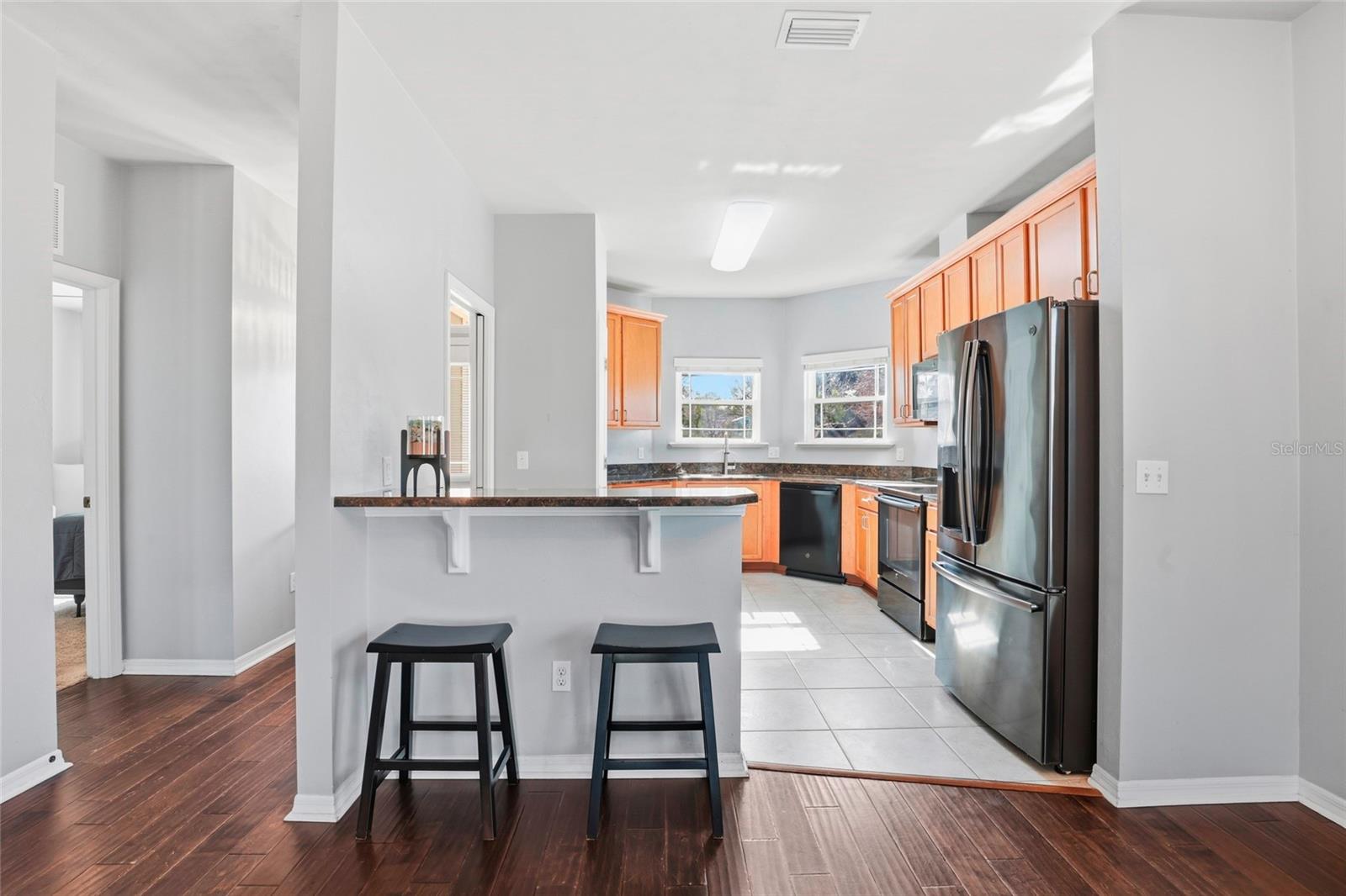 Do not miss your chance to own this IMMACULATE 3 Bedroom, 2 Bathroom home located in the highly sought-after Longleaf Village subdivision. This certified energy efficient green home boasts an open floor plan with high ceilings, a large living space, an abundance of natural light, hardwood floors, and a huge kitchen with a breakfast bar peninsula. The spacious primary suite features a large closet and bathroom with a beautiful ceramic tiled shower and double sinks. Green upgrades include "heat shield" roof barrier, "sunset" heat-block windows, and tankless water heater! Located just one block from Longleaf’s top notch amenities, including a clubhouse, beach entry resort-style pool, kiddie fountain, tennis courts, pickleball courts, basketball court, playground, and fitness center. All front yard maintenance is included, allowing you extra time to lounge in your very own screened in lanai looking out towards your beautiful, fully fenced backyard. This home has been impeccably cared for and it shows!