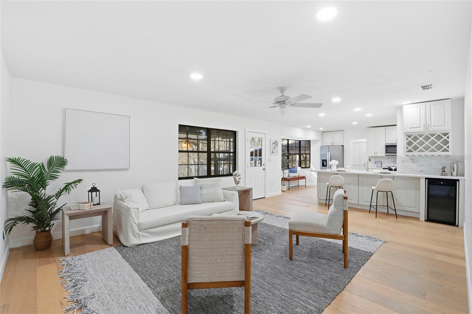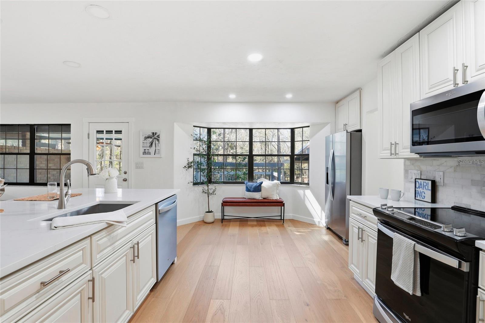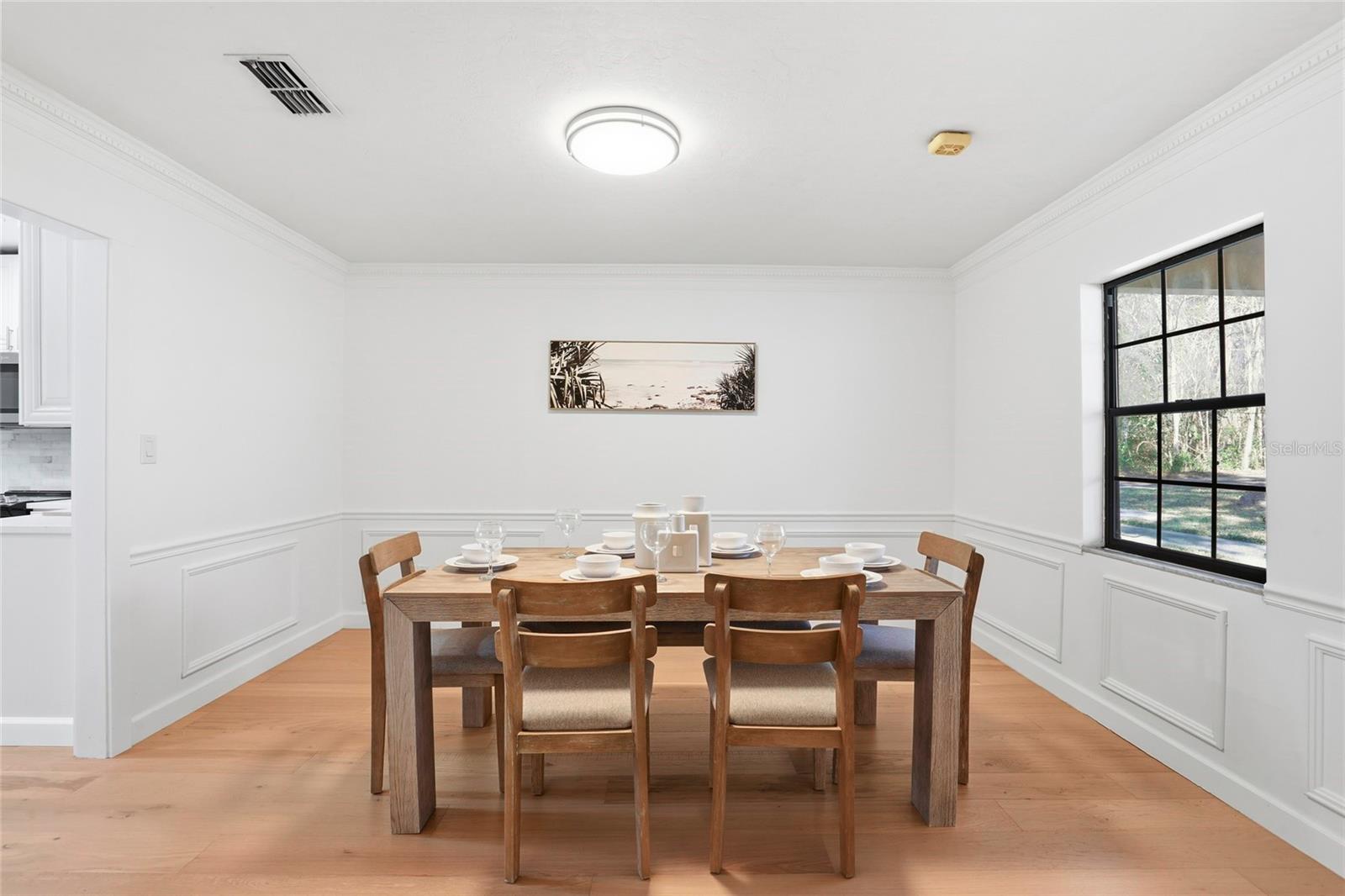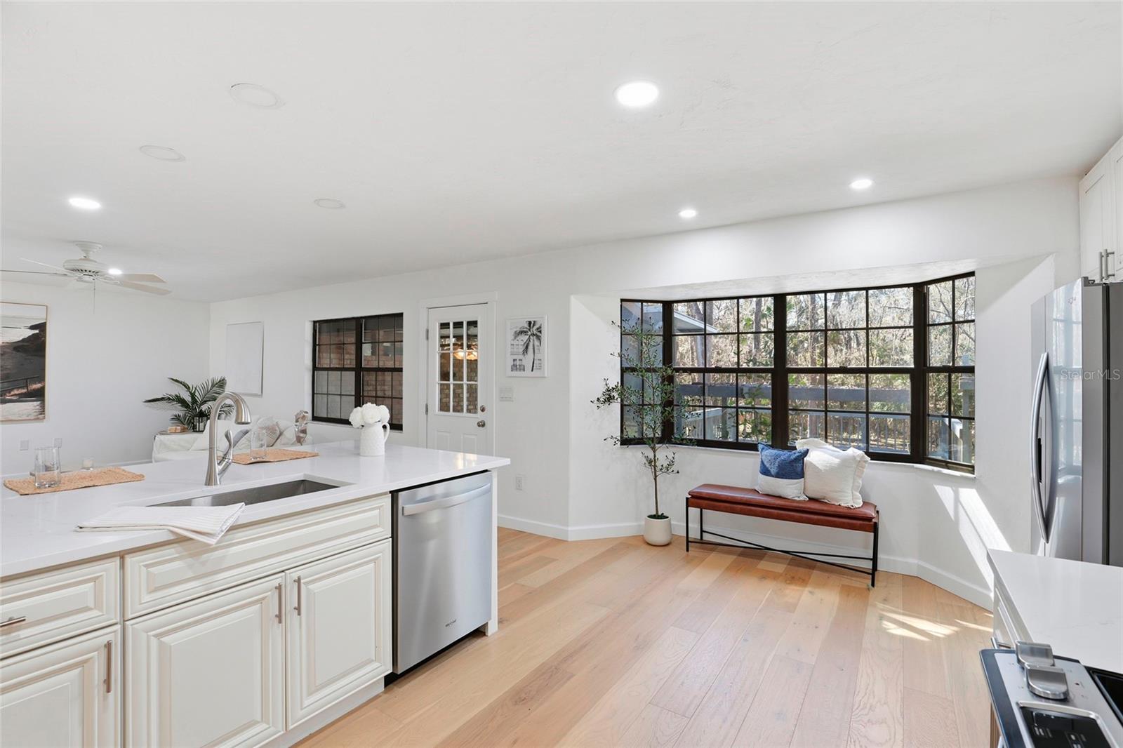 This Pine Hill Estates property offers a spacious and flexible layout on approximately one acre with a mix of open and lightly wooded areas. The home includes four bedrooms, three bathrooms, a large flex room, formal living and dining rooms, and a family room that connects directly to the kitchen, creating a functional flow for daily living. Additional interior spaces include a separate laundry room and a large utility room providing extra storage and workspace. Recent updates include water-resistant wood flooring, updated kitchen cabinetry with quartz countertops and appliances, and remodeled bathrooms featuring tiled tub and shower walls, tile flooring, and updated vanities. The flex room provides versatility and may accommodate a variety of uses such as additional living space, office, or guest area. Exterior features include a covered back porch, open front porch, and a deck overlooking the rear portion of the property. The metal roof was installed in December 2023. HVAC system and water heater were replaced in 2016. Conveniently located near schools, shopping, and everyday amenities.