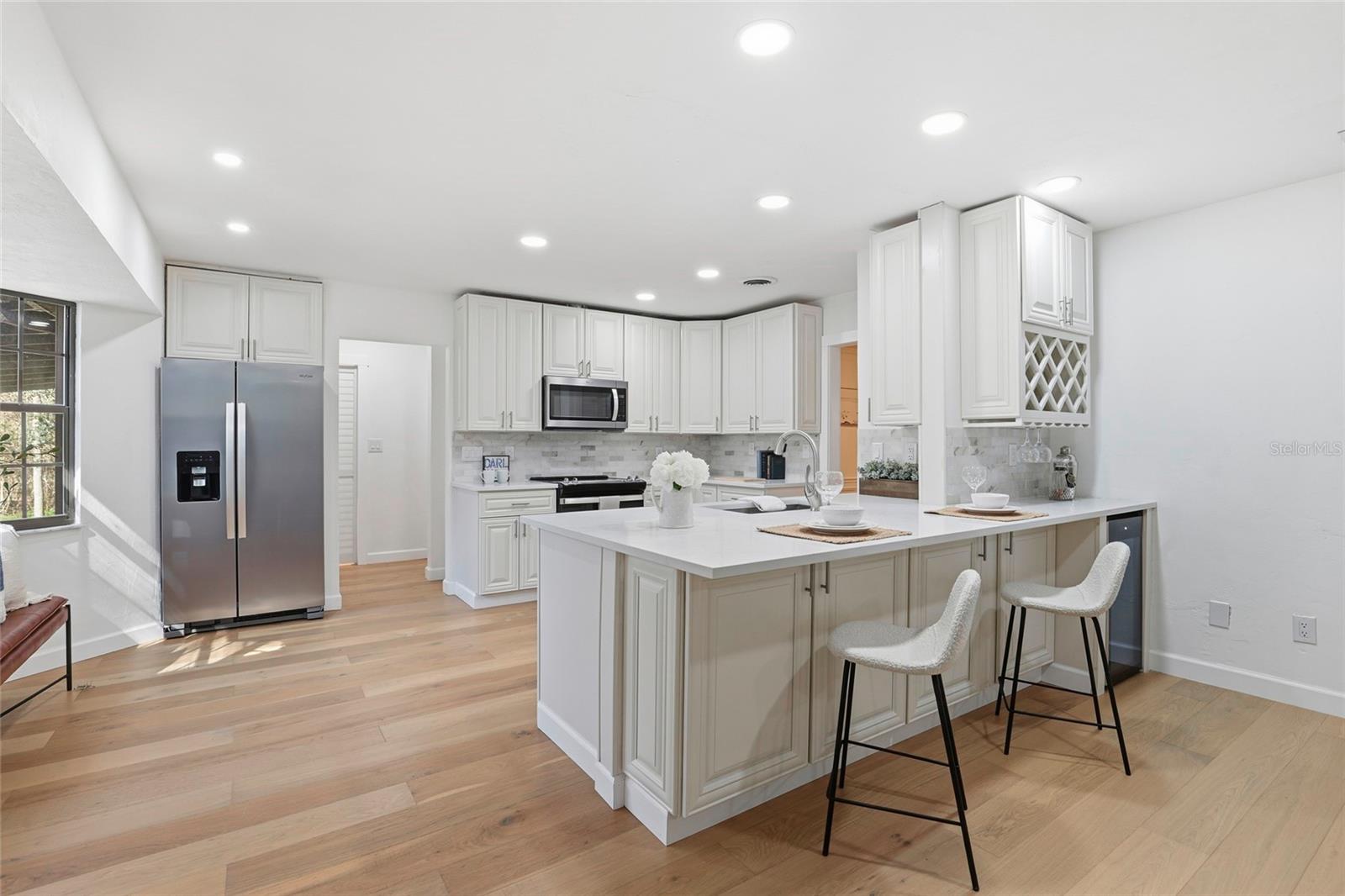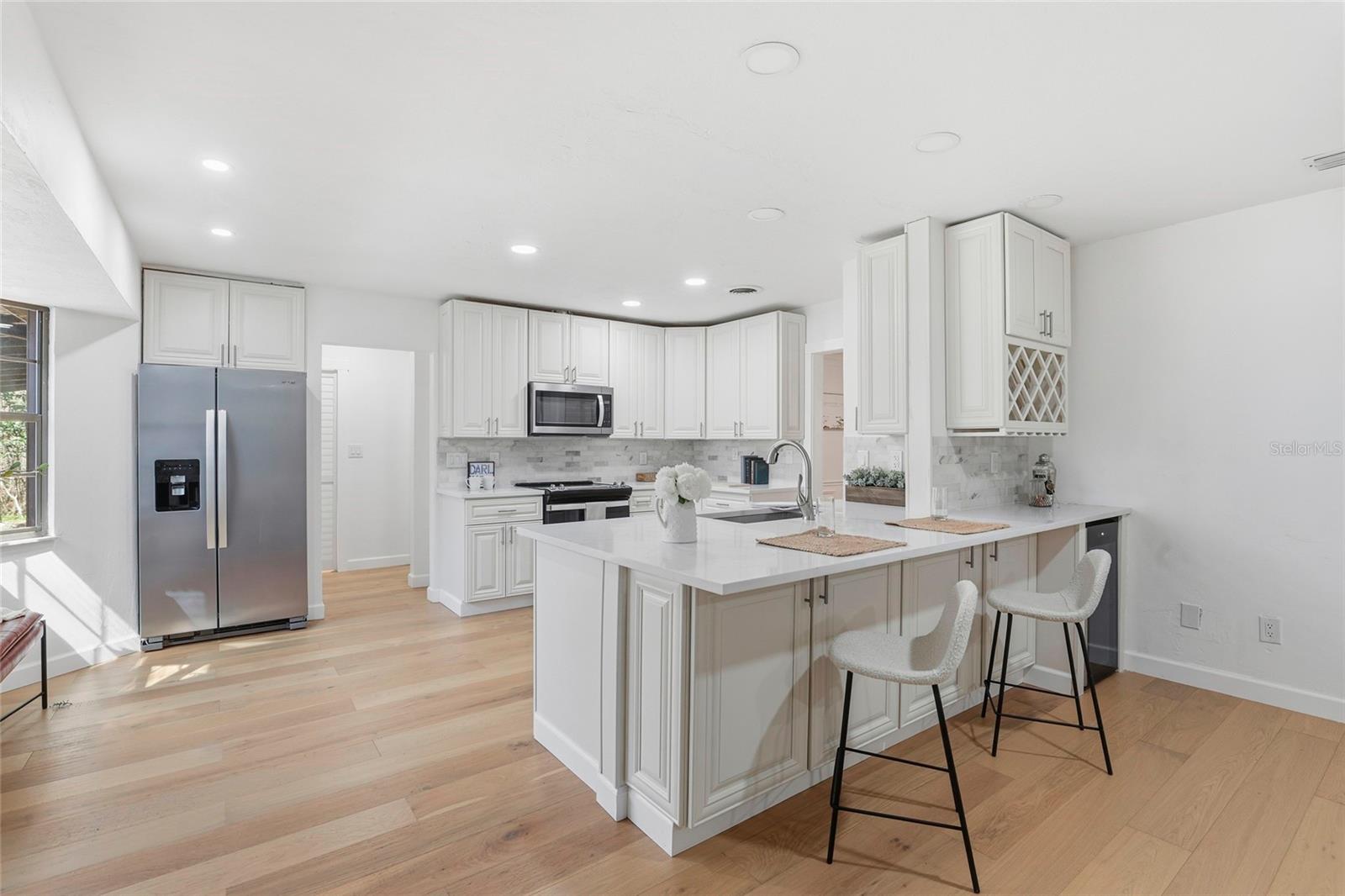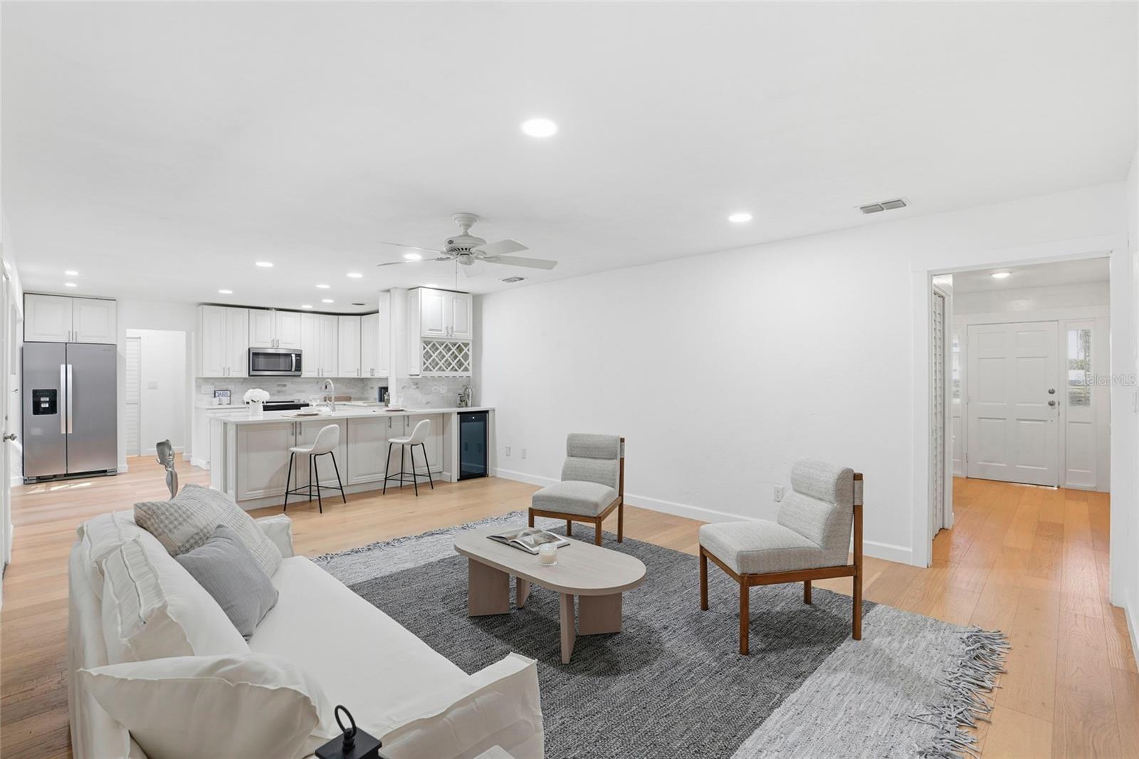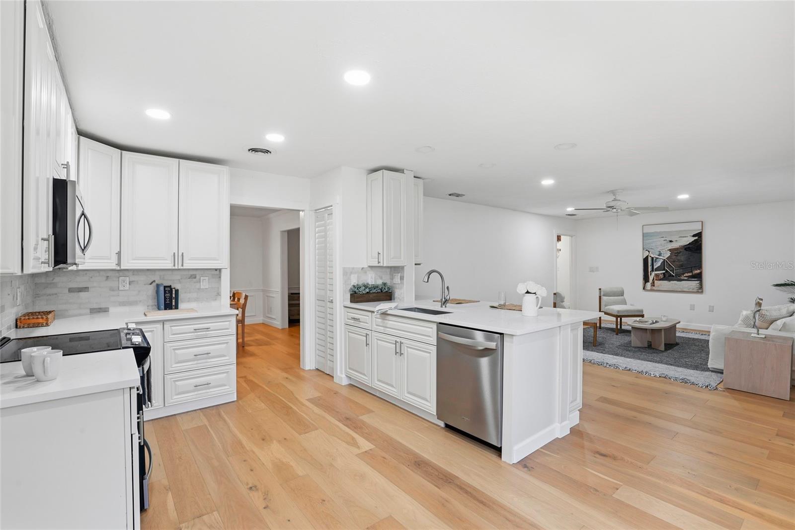 This Pine Hill Estates property offers a spacious and flexible layout on approximately one acre with a mix of open and lightly wooded areas. The home includes four bedrooms, three bathrooms, a large flex room, formal living and dining rooms, and a family room that connects directly to the kitchen, creating a functional flow for daily living. Additional interior spaces include a separate laundry room and a large utility room providing extra storage and workspace. Recent updates include water-resistant wood flooring, updated kitchen cabinetry with quartz countertops and appliances, and remodeled bathrooms featuring tiled tub and shower walls, tile flooring, and updated vanities. The flex room provides versatility and may accommodate a variety of uses such as additional living space, office, or guest area. Exterior features include a covered back porch, open front porch, and a deck overlooking the rear portion of the property. The metal roof was installed in December 2023. HVAC system and water heater were replaced in 2016. Conveniently located near schools, shopping, and everyday amenities.