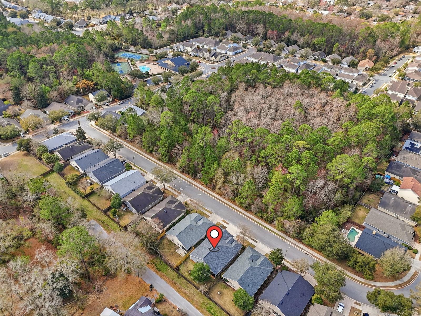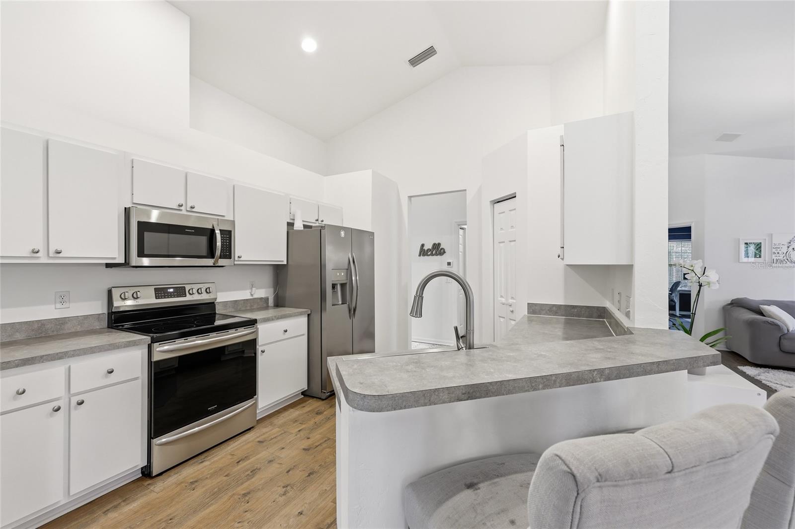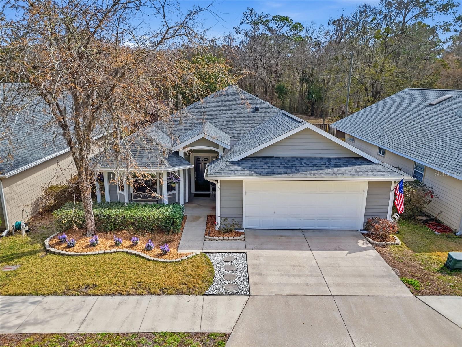 Welcome to resort-style living in sought-after Sorrento; impeccably maintained 4-bedroom, 2-bath home offers a rare combination of dramatic architectural details and major system updates. You are greeted immediately by a covered front porch with serene conservation wooded views—no front neighbors! Step inside to discover soaring 18-foot ceilings that bathe the common areas and primary suite in natural light. The smart 3-way split floor plan ensures maximum privacy for all. The heart of the home features wood laminate flooring (2022) and a kitchen dressed to impress with a full suite of Frigidaire Gallery stainless steel appliances and a deep single-tub stainless sink (2025). Truly move-in ready, the heavy lifting has already been done for you: New Roof (2023), Water Heater (2023), HVAC (2019), and fresh Interior/Exterior Paint (2022). Relax on your screened lanai overlooking the fully fenced backyard, or explore the neighborhood. Sorrento offers fiber-optic internet and resort-style amenities, including a pool with splash pad, tennis/pickleball courts, basketball court, playground, fitness center and nature walks. This dream home won’t be on the market long. Schedule your showing today!
