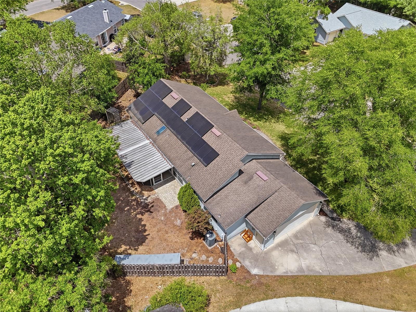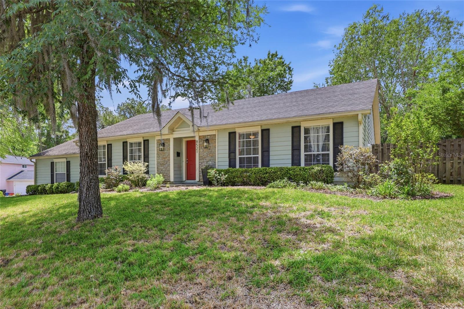 Step into a lifestyle of effortless comfort in this stately 1,669 sq ft home in Northridge, a community prized for its resort-style amenities, wide streets, and mature greenery. This 3-bed, 2-bath home captures your attention immediately with its classic curb appeal and eco-friendly features, including solar panels that are owned outright for significant energy savings. The indoors doesn’t disappoint either, with its striking vaulted and tray ceilings and versatile floorplan that includes a welcoming foyer, formal dining room, and spacious living area complemented by a dedicated flex room. The large kitchen serves as the anchor point of the home, featuring stainless steel appliances and an expansive pass-through window with breakfast bar and serving counter with built-in drawers and cabinets. Thoughtfully designed for privacy, a central hallway leads to all three bedrooms, a convenient linen closet, and a stylish guest bath with a tub/shower combo. The primary suite serves as a true retreat at the end of the day, boasting a private door leading directly onto the screened-in porch and an ensuite with a walk-in closet, double vanities, and glass-enclosed walk-in shower situated under a bright skylight. Modern convenience is at the forefront with ethernet ports in every room and a two-car garage featuring attic access for additional storage. The fenced backyard provides a secure space for gardening, play, or weekend entertaining, and includes compost bins, an arbor, and a dedicated enclosure for kayaks or gardening tools. Beyond your property line, the Northridge community provides a recreational haven with exclusive access to a shimmering community pool and recently restored tennis courts. Location is everything, and this home delivers by providing a peaceful sanctuary that sits just minutes from the University of Florida, UF Health Shands, and the VA Hospital. You are perfectly positioned for easy access to the premier shopping and diverse dining options at Magnolia Parke and Hunter’s Crossing. Schedule your private tour today to discover how this impressive home and its vibrant community provide the perfect setting and total package for your next chapter!