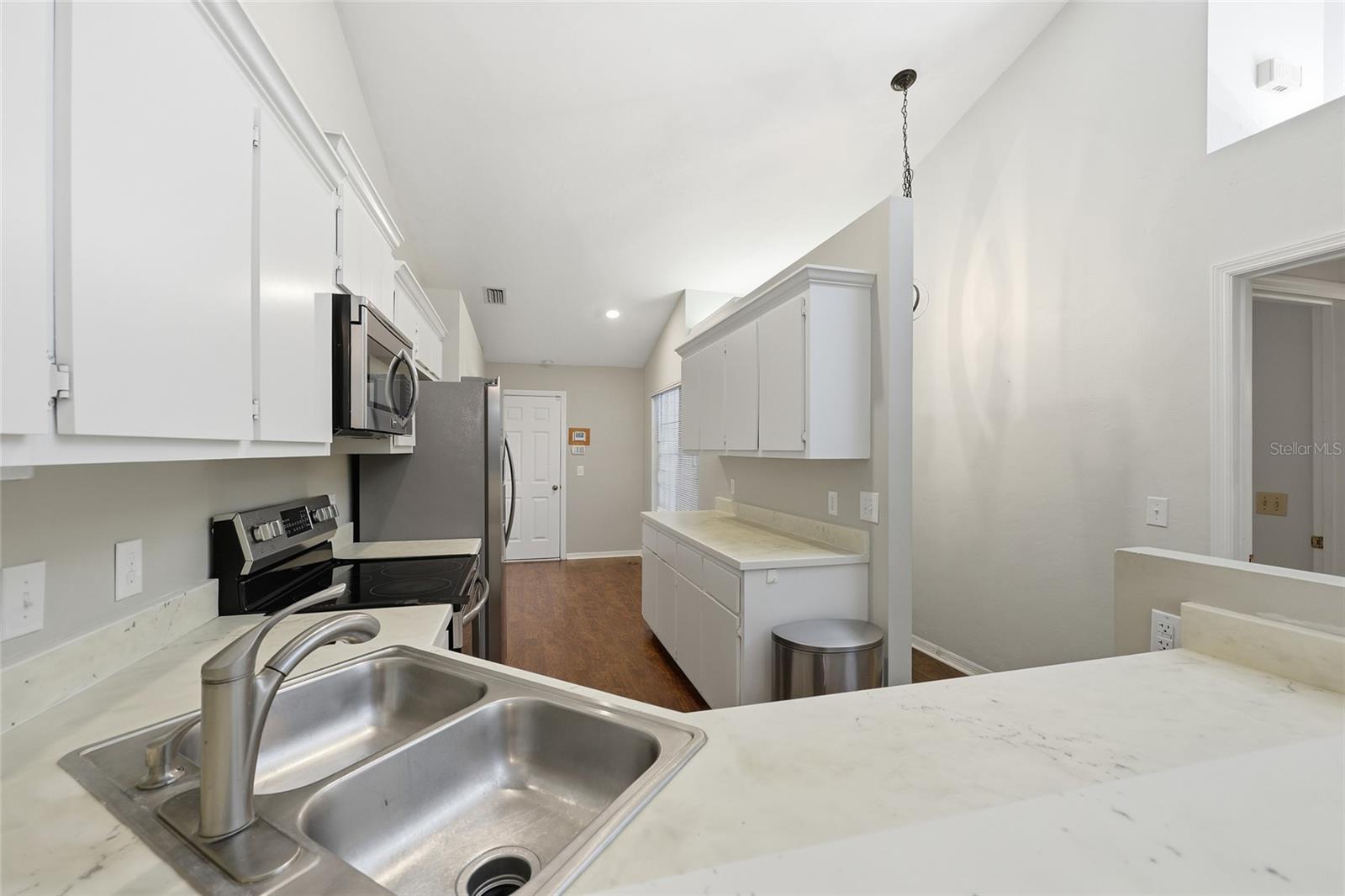 Located within the resort-style community of Vintage View, this two-bed, two-bath villa offers 1,420 sq ft of living space where the typical constraints of a traditional layout are replaced by a breathtaking sense of volume and a flood of natural light. From the first step inside, you are greeted by the warmth of rich engineered hardwood flooring and a thoughtfully reimagined galley kitchen that has been opened up to serve as a high-efficiency culinary hub, seamlessly connected to the main living area. While the social spaces flow together under dramatic vaulted ceilings and strategically placed skylights, the split-floor plan ensures the primary suite remains a secluded retreat, positioned away from the guest bedroom and beautifully updated guest bath. This interior elegance extends naturally to a spacious screened-in porch, providing a serene, outdoor room perfect for morning coffee while overlooking the neighborhood's mature trees. The home offers the rare peace of mind that comes with modern infrastructure, featuring a fully re-plumbed system, a 2018 air conditioning unit, and a roof replaced by the association in 2021. Just a short stroll from your front door, you can enjoy the neighborhood's private, screened-in swimming pool, tennis courts, and clubhouse, all while sitting just minutes from the University of Florida, UF Health Shands, and North Florida. With immediate access to the I-75 corridor and the premier shopping at both Butler Plaza and Celebration Pointe, this is a masterclass in maintenance-free living that doesn't sacrifice style for convenience. This isn't just another listing; it is your invitation to a turnkey lifestyle in the heart of Gainesville—come see the difference for yourself today!