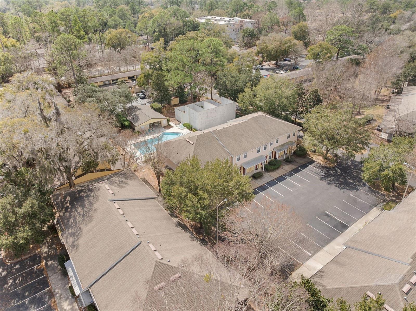 Welcome to this beautifully updated 2-bedroom, 2.5-bath townhome in the gated community of Grantwood, conveniently located on the UF bus line for easy access to campus, shopping, and dining. The thoughtfully designed floor plan features all living and common areas on the main level, along with a convenient half bath for guests. The home has been tastefully updated and meticulously maintained, with recent improvements including a new dishwasher, new dryer, new water heater, updated light fixtures throughout, and a smart Nest thermostat for modern comfort and efficiency. This is truly a “bring your toothbrush” opportunity — the home is fully furnished from furniture and décor to linens and dishes, making it perfect for homeowners, students, or investors seeking a turnkey property. Sliding glass doors open to a private back patio that faces the community pool, offering relaxing outdoor space and easy access for a quick swim. Upstairs, both spacious bedrooms feature queen-size beds and private en suite bathrooms, creating the ideal layout for roommates or guests. Each en suite includes a tub/shower combo and large windows that fill the space with beautiful natural light. With its gated entrance, unbeatable location on the UF bus route, poolside setting, modern updates, and low HOA, this townhome offers comfort, convenience, and exceptional value. Don’t miss your chance to own this fully furnished, move-in-ready home in Grantwood!