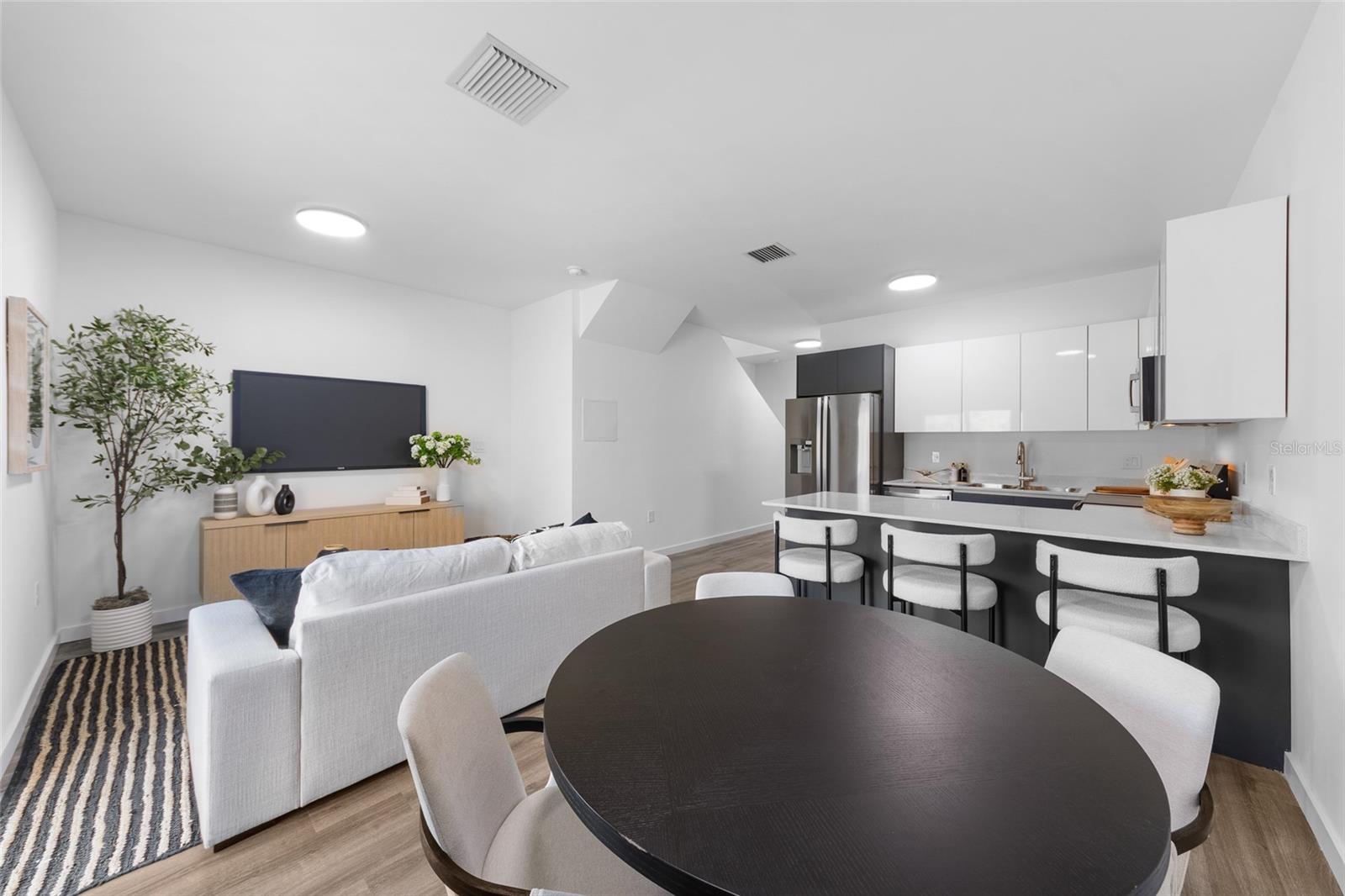 Introducing NEW CONSTRUCTION at Eagle Trace, just 2.3 miles from the University of Florida in the heart of NW Gainesville. The Model B, has a covered entry and offers a spacious two-story design with 3 bedrooms, 3.5 bathrooms. The main level includes a master bedroom with a private bath, along with a convenient half-bath for guests. Upstairs, two additional bedrooms each have their own bathrooms. Gourmet kitchen with quartz counters, custom soft-close cabinetry, and fully equipped with stainless steel appliances - including a refrigerator and freezer, smooth-top range, microwave, dishwasher, and garbage disposal. Double-pane windows, luxury vinyl tile wood-look flooring, and porcelain tile paired with quartz countertops in the bathrooms, and window blinds included too! Eagle Trace has a beautiful lake-view entrance, a pool, clubhouse, and fitness center—all with a low HOA fee. Each condo comes with a 1-year builder warranty. Seller is offering a $15,000 credit to the buyer at closing! Please note that the photos are of a recently completed model unit with comparable finishes, but may not reflect the specific floor plan of this unit. With quick access to UF Health Shands Hospital, UF campus, and Downtown Gainesville, this new construction condo offers the perfect blend of luxury, affordability, and convenience! The builder is Ark Development Group, Inc.