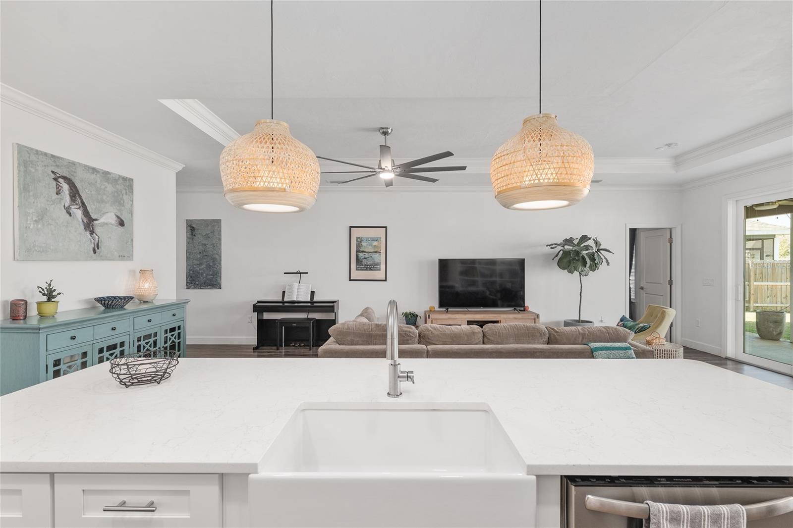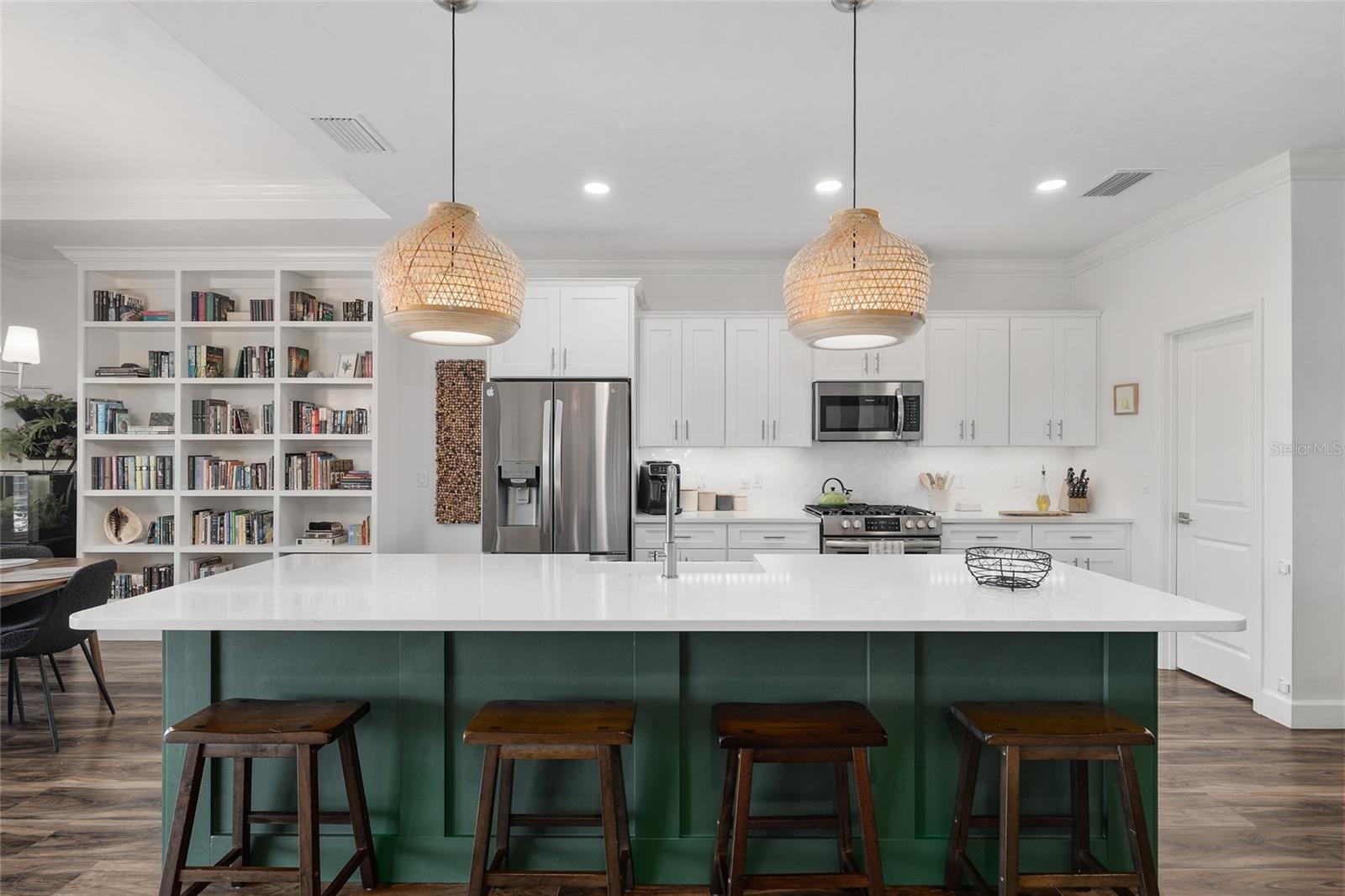 One of the most upgraded homes on the largest lot in Grand Oaks—located just 3 miles to the University of Florida and UF Health Shands. Situated in Grand Oaks Gainesville, this 2022-built William Weseman Construction Boulder floor plan offers 3 bedrooms, 2.5 bathrooms, and 1,720 square feet with a level of customization, functionality, and outdoor living that is rarely available in this community.T his property is fully finished, thoughtfully upgraded, and move-in ready, with features already completed that buyers often spend months—and significant additional cost—trying to replicate. From the moment you enter, the home feels open and refined with 9-foot ceilings, tray ceiling details, natural light, and durable luxury vinyl plank flooring throughout (no carpet). The open concept kitchen and living space is designed for connection and entertaining, anchored by a large quartz island, farmhouse sink, gas range, and custom dining room built-ins that add both character and function. The primary suite goes beyond a standard layout, offering a built-in office nook with floating desk and recessed electronics media panel with outlet for wall mounted TV, along with an upgraded walk-in closet system designed for organization and ease. The bathroom continues the elevated feel with a glass-enclosed tiled shower with premium soft-close shower door and added comfort features. What truly sets this home apart is how it lives beyond the walls. Step outside to one of the largest, fully fenced yards in Grand Oaks, already transformed into a functional and inviting outdoor space. Whether it’s gardening, relaxing, or simply enjoying the space, the yard includes raised vegetable beds with drip lines and full irrigation, curated garden areas, herb plantings, and a container water feature, along with a separate enclosed side yard with river rock ground cover and auto-water trough currently used as a dog run. This is the kind of outdoor setup buyers envision—but rarely find already completed. For those who value workspace, hobbies, or organization, the garage has been fully upgraded into a true working environment with custom workbench, built-in power access, overhead storage, tool organization systems, and wall-mounted storage solutions—a standout feature that sets this home apart from others in the neighborhood. Smart home features such as an Ecobee thermostat, Ring security system, smart lighting, and video doorbell add another layer of convenience and modern living. Located just minutes from UF, UF Health Shands, Butler Plaza, Celebration Pointe, and major Gainesville roadways, this home offers the ability to stay connected to everything while enjoying a space that feels complete, personal, and ready to enjoy from day one. For buyers comparing new construction or other completed homes in Grand Oaks, this home represents something different—a finished, upgraded, and functional home on a premium lot where the work has already been done.
