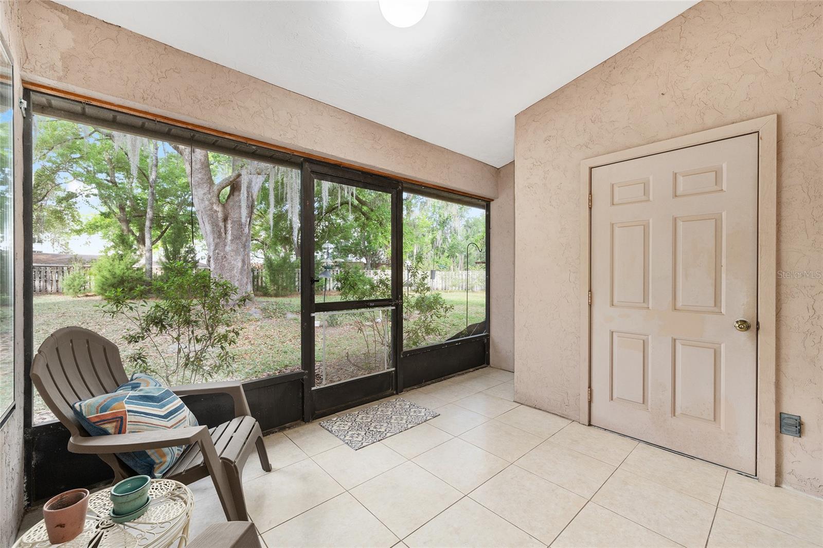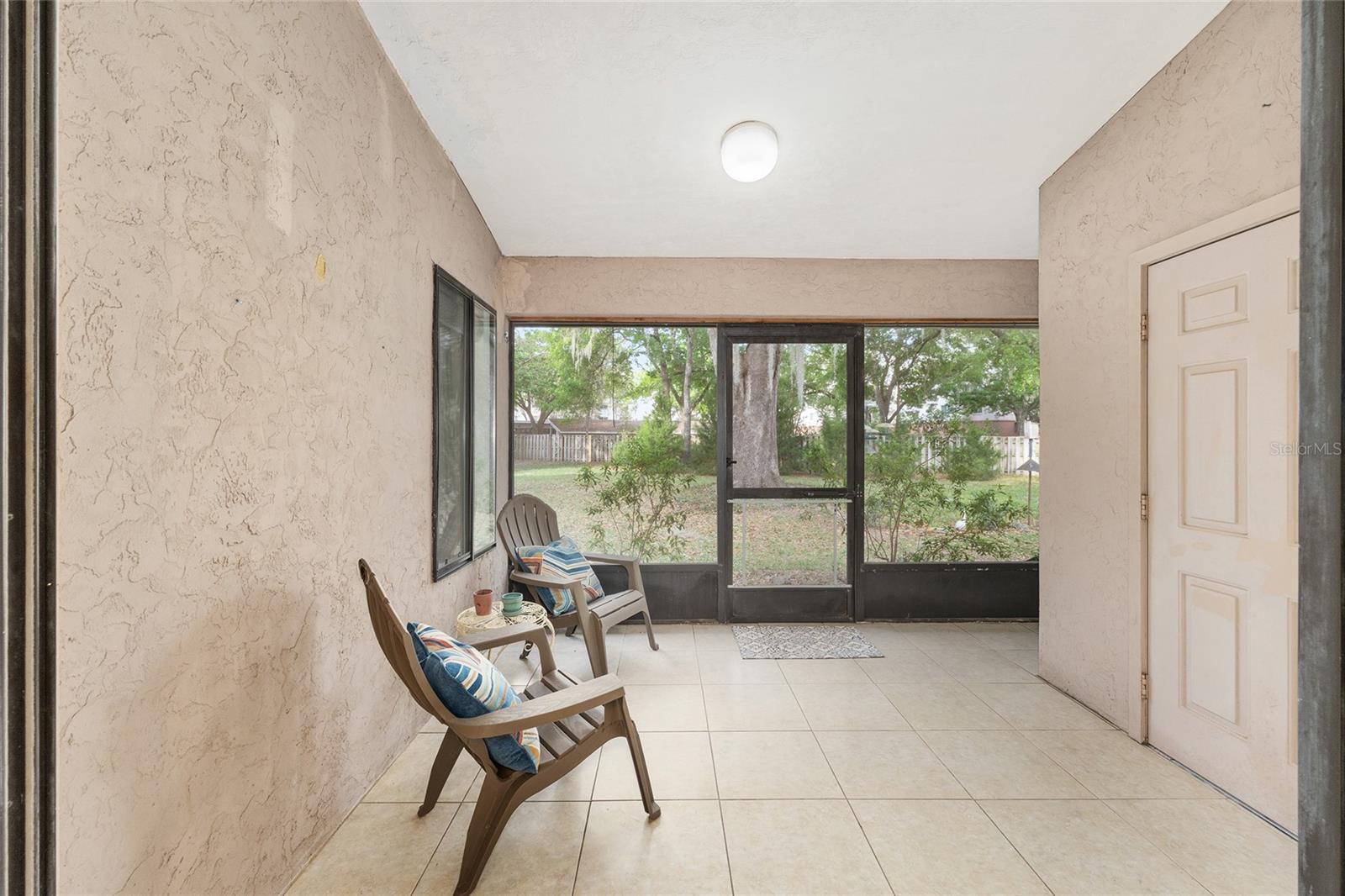 Experience the best of low-maintenance living in one of Gainesville’s most convenient and charming locations, Wood Creek Village. This single level townhome offers 2 bedrooms and 2 full bathrooms with a bright and open floor plan. Spacious great room features soaring vaulted ceilings and a wood burning fireplace. Just off the great room is the kitchen offering stainless steel appliances, ample cabinetry, and breakfast nook that could easily serve as a home office or flex space. The primary bedroom provides a private retreat with a large walk-in closet and ensuite bathroom with updated dual vanity and walk-in shower. A generously sized secondary guest bedroom and full hall bath offer comfort and flexibility. Enjoy your morning on the screened enclosed covered porch overlooking community green space. Additional features include tile flooring throughout the entire home-completely carpet-free, interior laundry closet, outdoor storage, and two assigned parking spaces with guest parking available. Located just minutes from the University of Florida, UF Health, HCA Hospitals and Santa Fe College. Zoned for top-rated schools and less than one mile to local favorites like Uppercrust Bakery, Northwest Seafood, and the Shoppes at Thronebrook as well as shopping at Fresh Market and Publix.