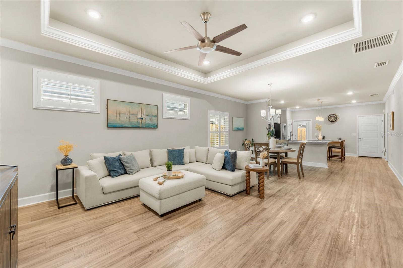 Under contract-accepting backup offers. Just listed in highly sought-after Lugano, this darling Sicily model cottage is better than new and absolutely loaded with upgrades. Built in 2020 and has been meticulously-loved, this 3-bedroom, 2-bath home offers 1,504 square feet of heated and cooled living space (from Builder plans), plus a screened back lanai, fully fenced yard, and rear-entry 2-car garage with premium coated floors. The open, spacious floor plan features luxury vinyl plank flooring throughout the main living areas, tray ceilings with crown molding, plantation shutters, beautiful fixtures, and an abundance of natural light. The kitchen is both stylish and functional with glazed cabinetry, granite countertops, designer backsplash, gas range, stainless steel appliances, an island, and plenty of storage. The primary suite is generously sized with a large walk-in closet, while the luxurious primary bath offers a huge walk-in shower and a Japanese-style bidet toilet. The guest bedrooms share a beautifully appointed bath, and the spacious laundry room includes the washer and dryer. Additional features include a tankless water heater and front yard landscaping maintenance included in the HOA. Lugano is a newer community off Archer Road, ideally located near Haile Plantation, Haile Village Center, Celebration Pointe, North Butler Plaza, North Florida Regional, the University of Florida, UF Health, and the VA. The community offers resort-like amenities including tennis/pickleball courts, pool, playground, BB court, clubhouse with recreational room.