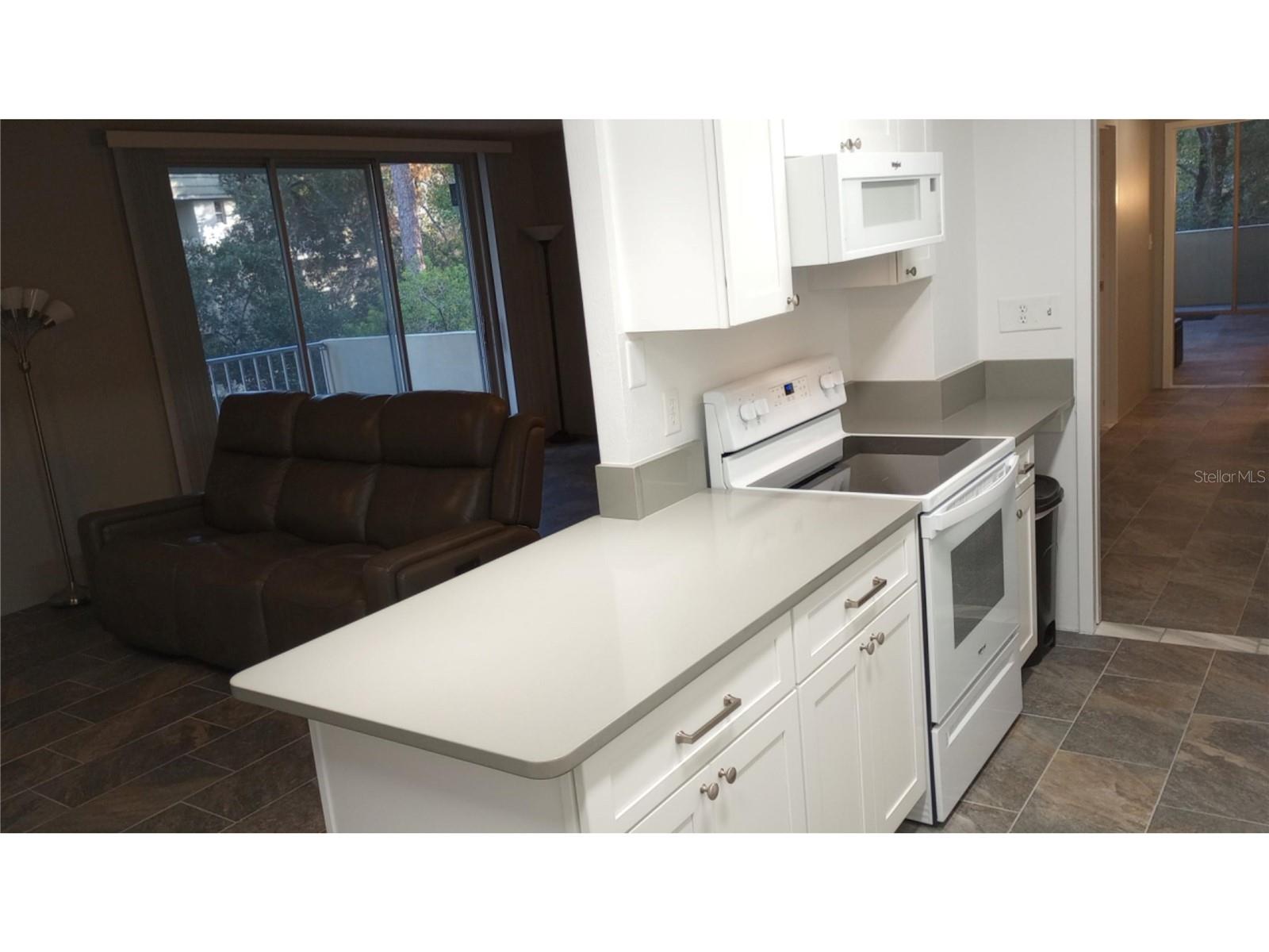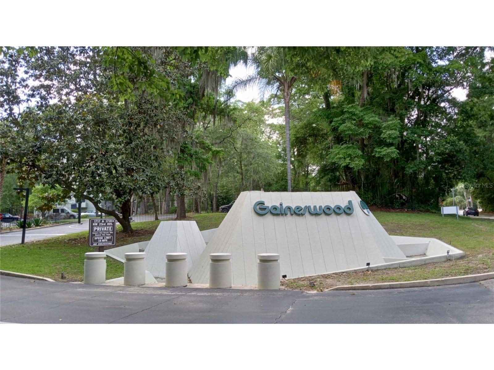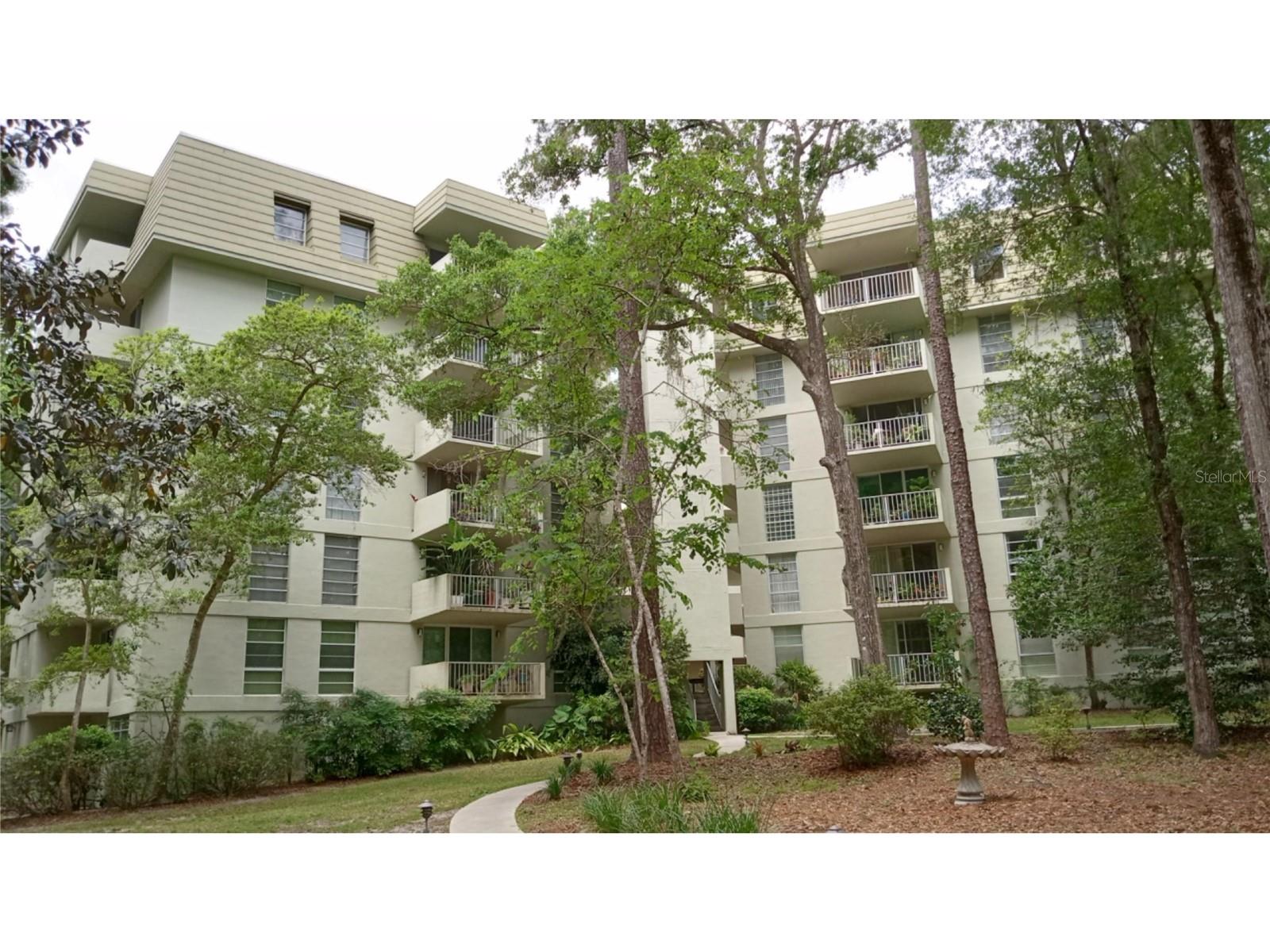 Towering above a spring-fed creek, this renovated 4th-floor Gaineswood condo features views of the forest canopy and floor-to-ceiling windows in every room. Renovations include slate-inspired porcelain tile, sparkling quartz countertops, hardwood shaker cabinets and vanities, Kohler sinks, and Whirlpool appliances. Gaineswood is a gated community on 7 wooded acres bordered by Hogtown Creek and Ring Park. Gaineswood amenities include elevators, atriums with koi ponds, a swimming pool, tennis court, art studio, workshop, and clubhouse. HOA fee includes water, sewer, valet trash, pest control, reserve funds, maintenance and insurance. Gaineswood features all concrete construction and has completed all required structural inspections and reserves studies. Up to $6k of seller concessions available.