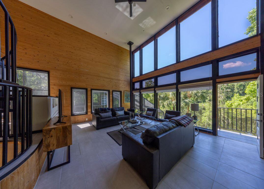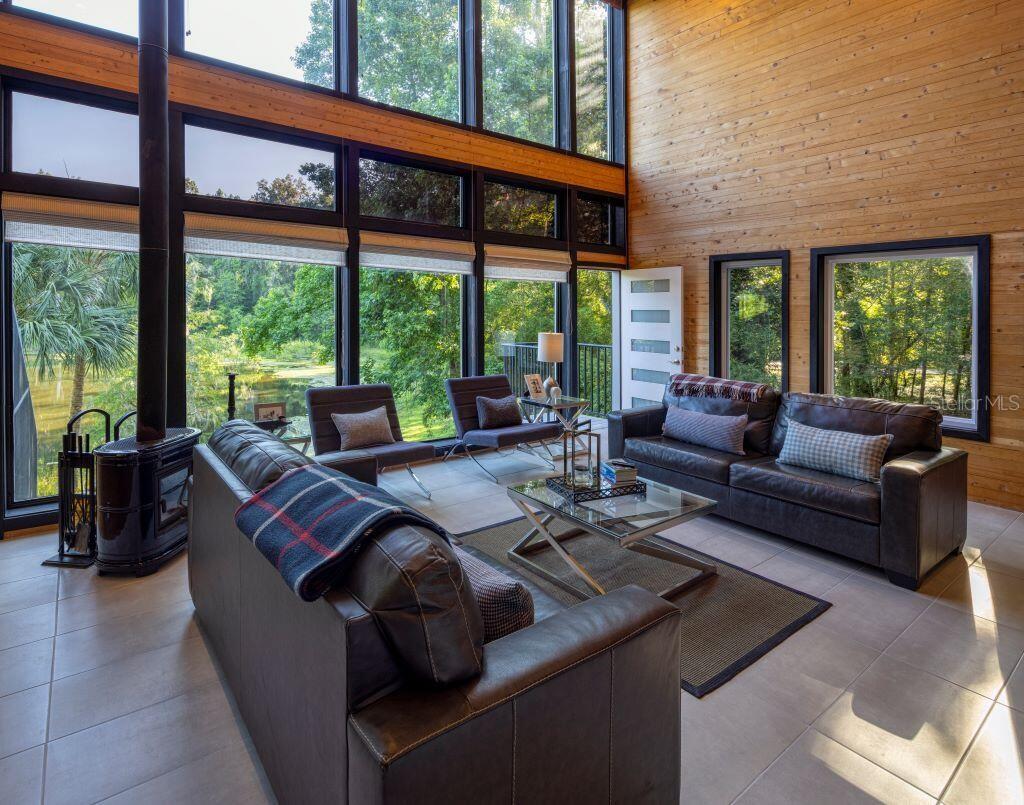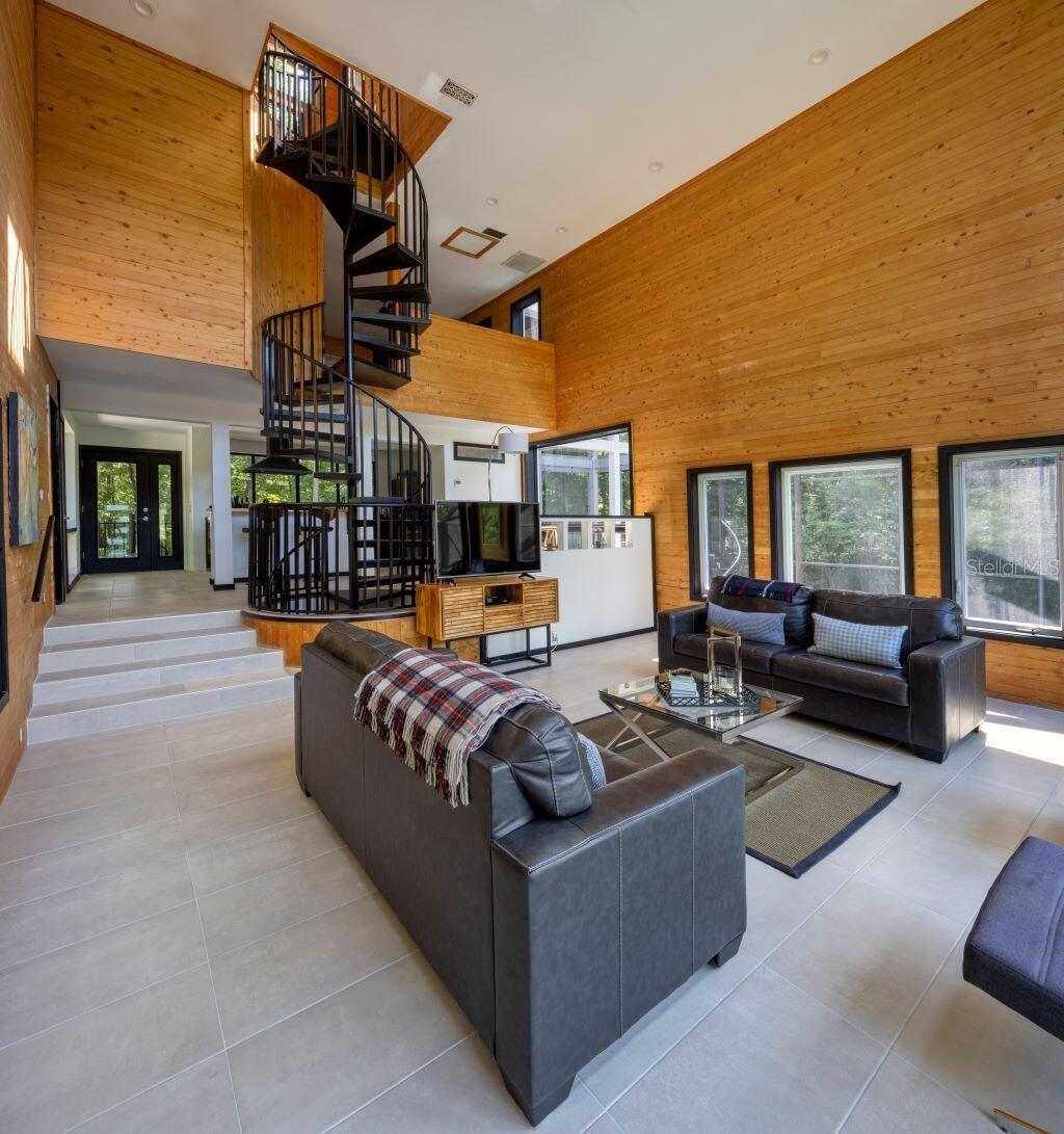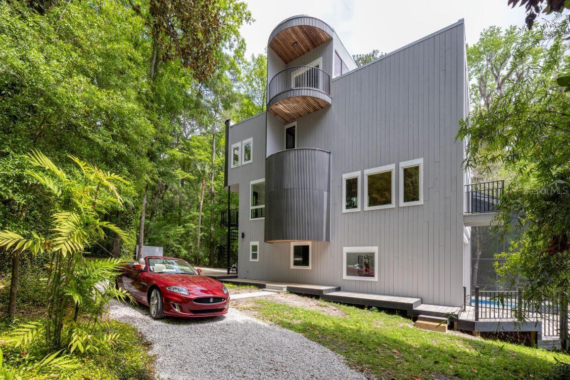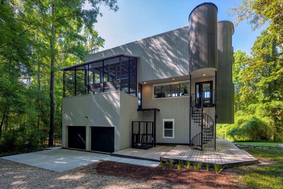 With its unparalleled architectural beauty, breath-taking panoramic views, and seamless blend of luxury and nature, 5311 NW 98th Terrace isn’t just a home—it's a private retreat offering the ultimate Florida lifestyle. Want to know more?! 1. ARCHITECTURAL DESIGN: This post-modern, multi-level home was inspired by Frank Lloyd Wright's designs and designed by Tom Tonnelier, a famous architect in Gainesville, offering a "treehouse" aesthetic with extensive use of natural materials and seamless integration into its wooded setting. Its unique design emphasizes light, space and connection to nature offering a luxurious and unique living experience. 2. EXCLUSIVE AMENITIES: The property boasts a heated 40-foot lap pool within a multi-story screened enclosure. Situated on nearly two acres of wooded land, an abundance of large windows and natural light, high ceilings, multiple decks and balconies, ensures that the property provides stunning lake views and an immersive connection to nature. 3. SPACIOUS LUXURIOUS LIVING: With over 2,300 square feet of living space spread across 4 levels, excluding the 400 square foot main screened deck area and double car garage, the home includes a sunken lounge, open-concept living and dining areas, and a top-floor observatory. The primary suite features a spa-like ensuite bathroom with a freestanding tub and a two-story rain shower and takes up the entire 3rd floor. While the music room, guest bedrooms and guest bathroom, a occupy the 1st floor. 4. MODERN CONVENIENCES: The home is fully outfitted with modern conveniences, including a built-in elevator. It boasts high-end appliances, luxury flooring, and a stunning showcase spiral staircase spanning all four floors. Additional features include granite countertops and custom wood cabinetry. 5. FURNISHED: The home is being sold fully furnished less items which are personal to the seller. 6. FLOOD ZONE X: Unlike many Florida properties, this home is situated in a Flood Zone X, providing peace of mind for buyers concerned about climate risks. 7. LOCATION: An upscale, highly sought-after neighborhood, located just 19 minutes from the University of Florida and 23 minutes from Gainesville Airport; other nearby amenities include Devil’s Millhopper Geological State Park and San Felasco Hammock Preserve State Park, Hunter's Crossing shopping center, UF Health Shands Hospital and more, offering a balanced lifestyle, offering both tranquility and accessibility to urban conveniences.