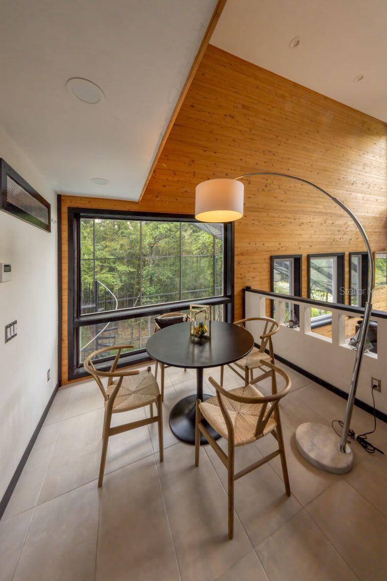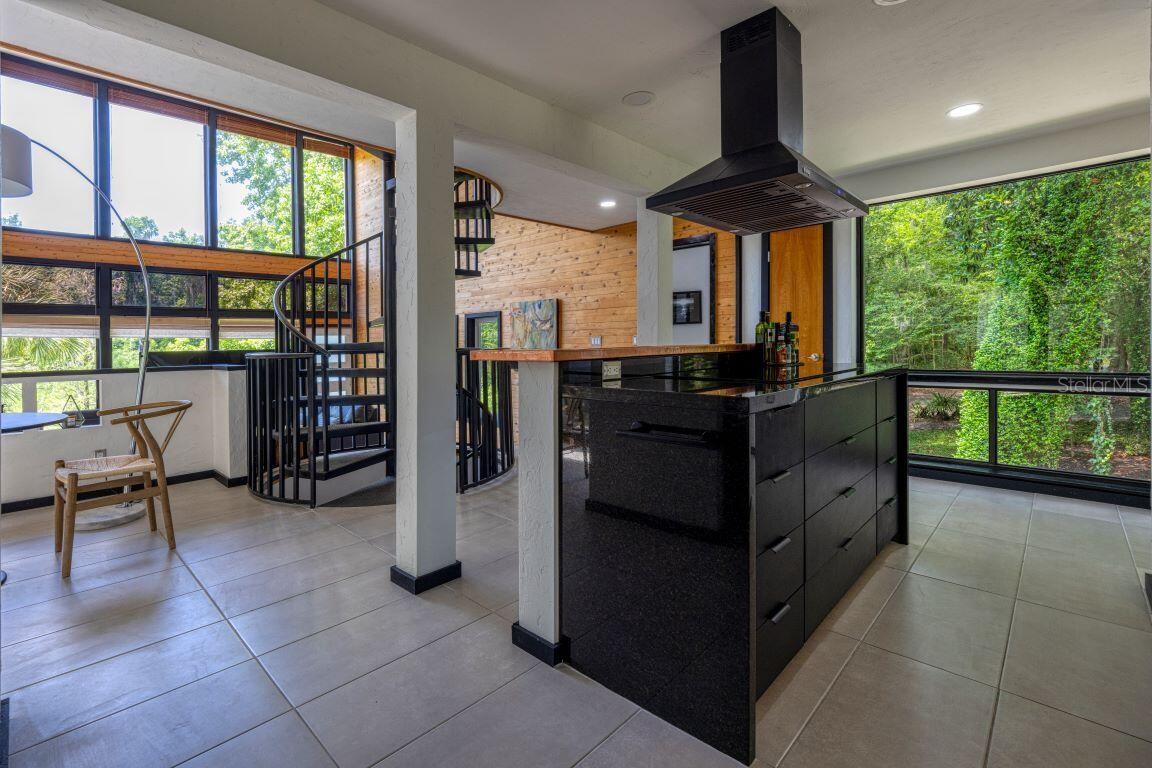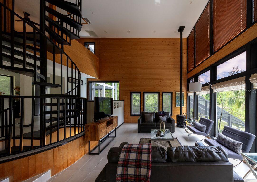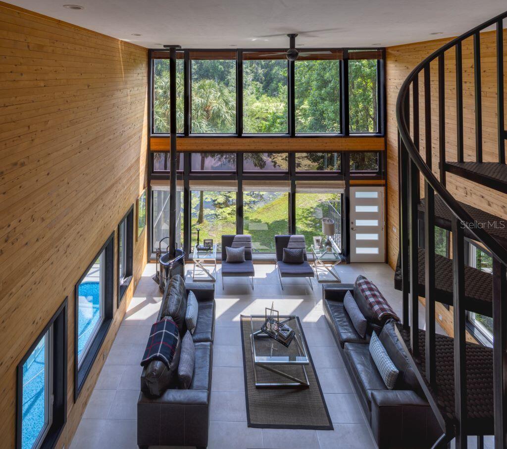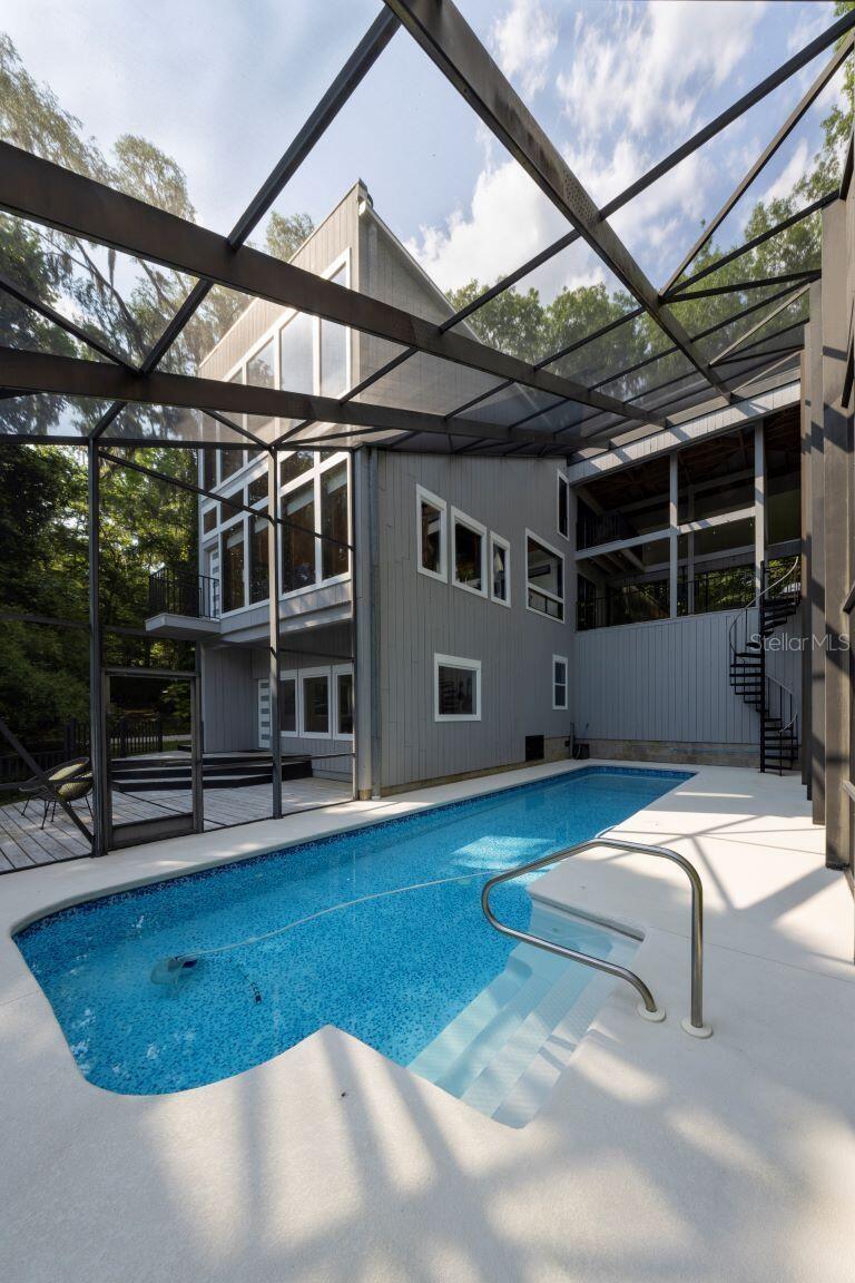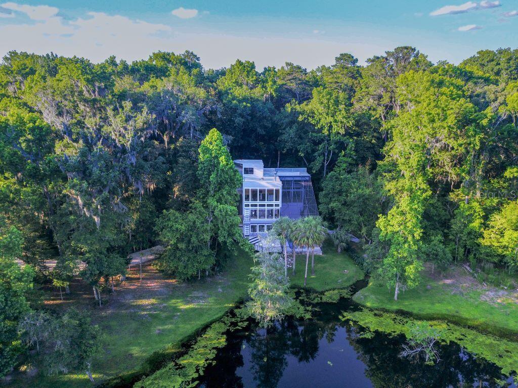 With its unparalleled architectural beauty, breath-taking panoramic views, and seamless blend of luxury and nature, 5311 NW 98th Terrace isn’t just a home—it's a private retreat offering the ultimate Florida lifestyle. Want to know more?! 1. ARCHITECTURAL DESIGN: This post-modern, multi-level home was inspired by Frank Lloyd Wright's designs and designed by Tom Tonnelier, a famous architect in Gainesville, offering a "treehouse" aesthetic with extensive use of natural materials and seamless integration into its wooded setting. Its unique design emphasizes light, space and connection to nature offering a luxurious and unique living experience. 2. EXCLUSIVE AMENITIES: The property boasts a heated 40-foot lap pool within a multi-story screened enclosure. Situated on nearly two acres of wooded land, an abundance of large windows and natural light, high ceilings, multiple decks and balconies, ensures that the property provides stunning lake views and an immersive connection to nature. 3. SPACIOUS LUXURIOUS LIVING: With over 2,300 square feet of living space spread across 4 levels, excluding the 400 square foot main screened deck area and double car garage, the home includes a sunken lounge, open-concept living and dining areas, and a top-floor observatory. The primary suite features a spa-like ensuite bathroom with a freestanding tub and a two-story rain shower and takes up the entire 3rd floor. While the music room, guest bedrooms and guest bathroom, a occupy the 1st floor. 4. MODERN CONVENIENCES: The home is fully outfitted with modern conveniences, including a built-in elevator. It boasts high-end appliances, luxury flooring, and a stunning showcase spiral staircase spanning all four floors. Additional features include granite countertops and custom wood cabinetry. 5. FURNISHED: The home is being sold fully furnished less items which are personal to the seller. 6. FLOOD ZONE X: Unlike many Florida properties, this home is situated in a Flood Zone X, providing peace of mind for buyers concerned about climate risks. 7. LOCATION: An upscale, highly sought-after neighborhood, located just 19 minutes from the University of Florida and 23 minutes from Gainesville Airport; other nearby amenities include Devil’s Millhopper Geological State Park and San Felasco Hammock Preserve State Park, Hunter's Crossing shopping center, UF Health Shands Hospital and more, offering a balanced lifestyle, offering both tranquility and accessibility to urban conveniences.