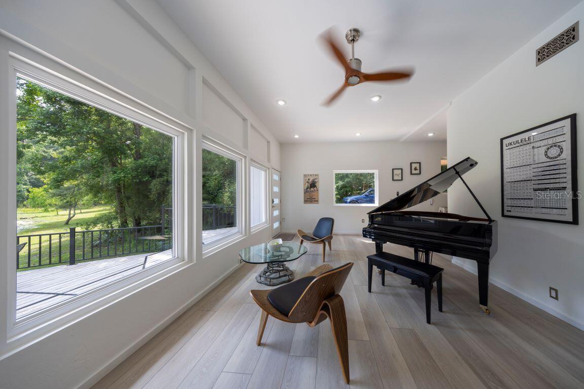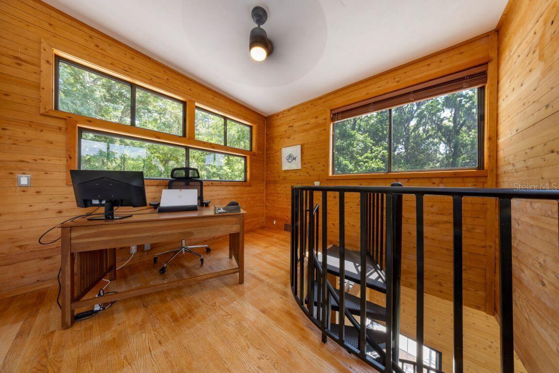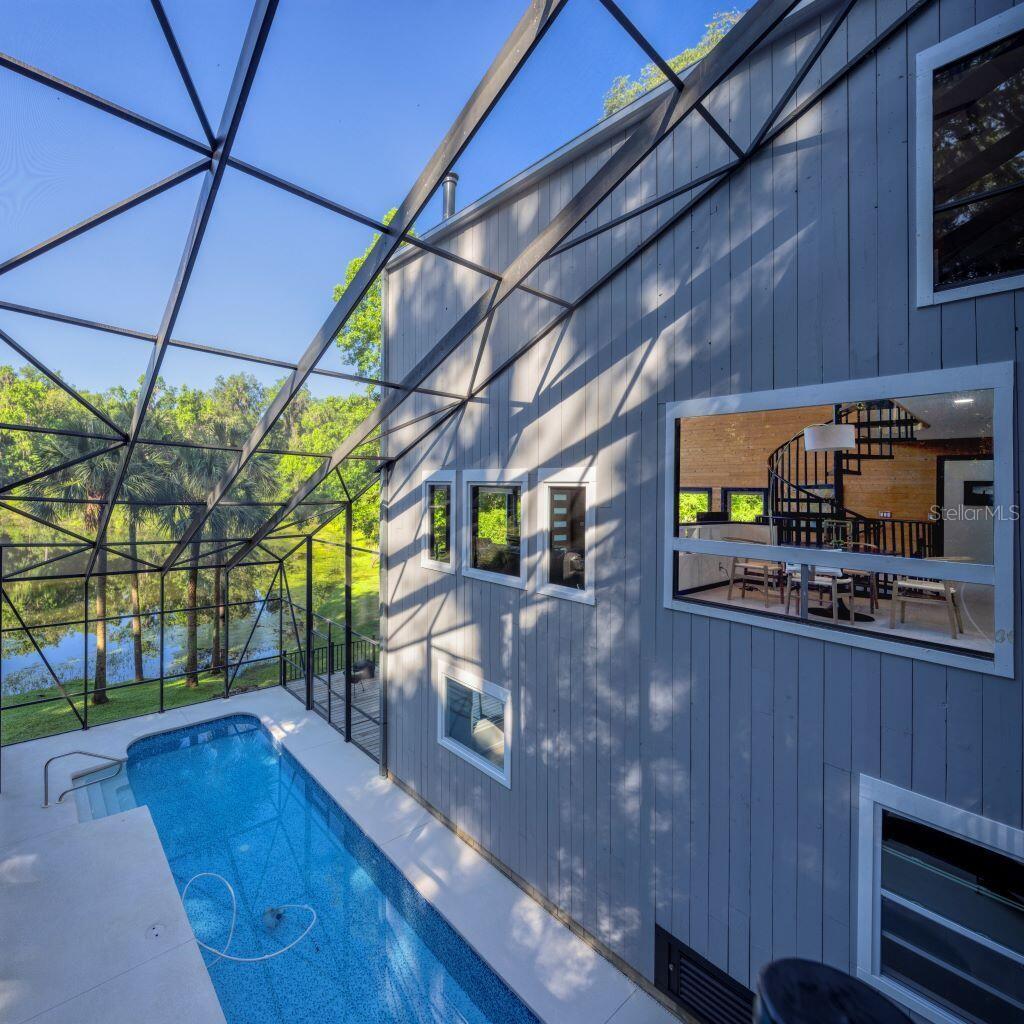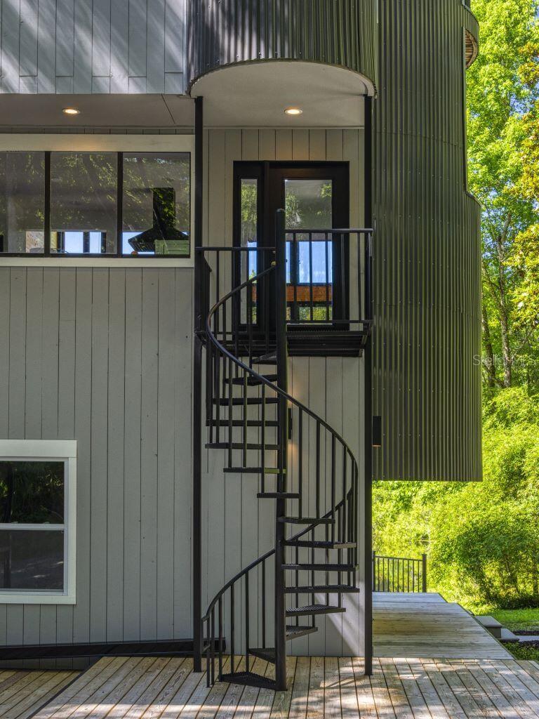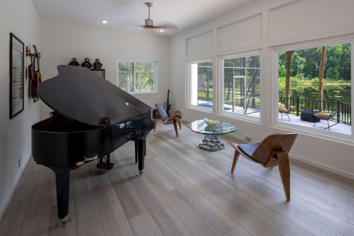 With its unparalleled architectural beauty, breath-taking panoramic views, and seamless blend of luxury and nature, 5311 NW 98th Terrace isn’t just a home—it's a private retreat offering the ultimate Florida lifestyle. Want to know more?! 1. ARCHITECTURAL DESIGN: This post-modern, multi-level home was inspired by Frank Lloyd Wright's designs and designed by Tom Tonnelier, a famous architect in Gainesville, offering a "treehouse" aesthetic with extensive use of natural materials and seamless integration into its wooded setting. Its unique design emphasizes light, space and connection to nature offering a luxurious and unique living experience. 2. EXCLUSIVE AMENITIES: The property boasts a heated 40-foot lap pool within a multi-story screened enclosure. Situated on nearly two acres of wooded land, an abundance of large windows and natural light, high ceilings, multiple decks and balconies, ensures that the property provides stunning lake views and an immersive connection to nature. 3. SPACIOUS LUXURIOUS LIVING: With over 2,300 square feet of living space spread across 4 levels, excluding the 400 square foot main screened deck area and double car garage, the home includes a sunken lounge, open-concept living and dining areas, and a top-floor observatory. The primary suite features a spa-like ensuite bathroom with a freestanding tub and a two-story rain shower and takes up the entire 3rd floor. While the music room, guest bedrooms and guest bathroom, a occupy the 1st floor. 4. MODERN CONVENIENCES: The home is fully outfitted with modern conveniences, including a built-in elevator. It boasts high-end appliances, luxury flooring, and a stunning showcase spiral staircase spanning all four floors. Additional features include granite countertops and custom wood cabinetry. 5. FURNISHED: The home is being sold fully furnished less items which are personal to the seller. 6. FLOOD ZONE X: Unlike many Florida properties, this home is situated in a Flood Zone X, providing peace of mind for buyers concerned about climate risks. 7. LOCATION: An upscale, highly sought-after neighborhood, located just 19 minutes from the University of Florida and 23 minutes from Gainesville Airport; other nearby amenities include Devil’s Millhopper Geological State Park and San Felasco Hammock Preserve State Park, Hunter's Crossing shopping center, UF Health Shands Hospital and more, offering a balanced lifestyle, offering both tranquility and accessibility to urban conveniences.