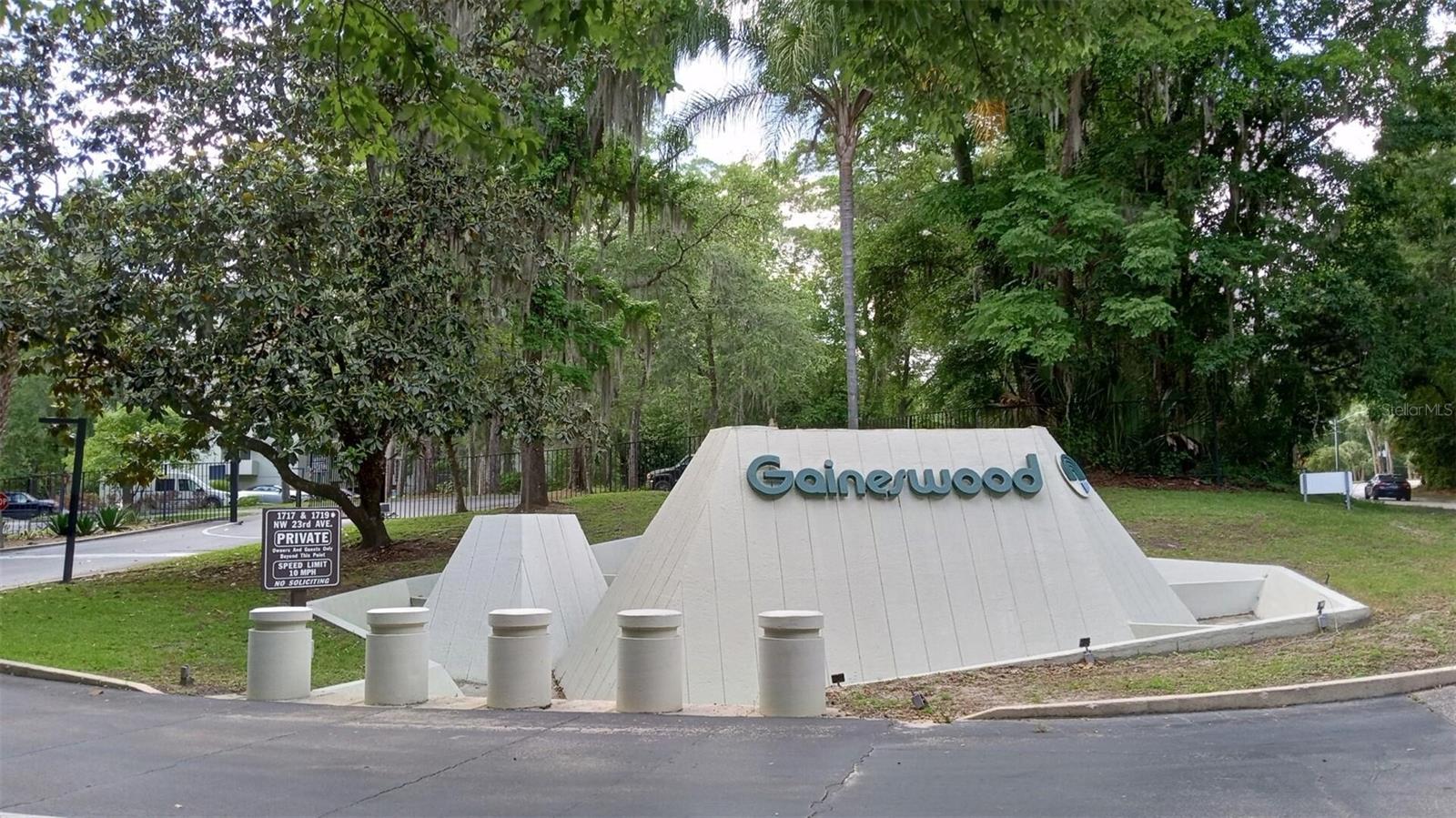 Towering above a spring-fed creek, this renovated 4th-floor Gaineswood condo features views of the forest canopy, south-eastern exposures, and floor-to-ceiling windows in every room. Renovations include slate-inspired porcelain tile, sparkling quartz countertops, hardwood shaker cabinets and vanities, Kohler sinks, and Whirlpool appliances. Gaineswood is a gated community on 7 wooded acres bordered by Hogtown Creek and Ring Park. Gaineswood amenities include elevators, atriums with koi ponds, a swimming pool, tennis court, art studio, workshop, and clubhouse. HOA fee includes water, sewer, valet trash, pest control, full-time on-site manager, maintenance, and building insurance.