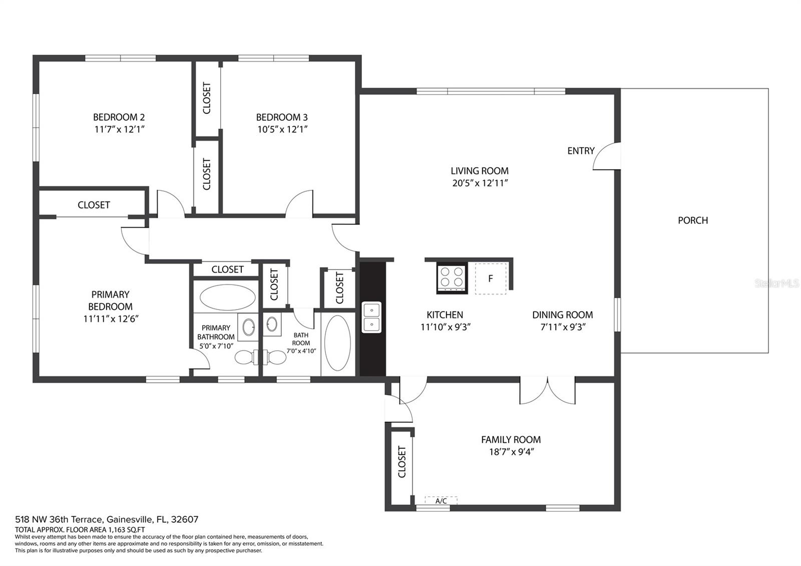 One or more photo(s) has been virtually staged. Welcome to this beautifully updated 3-bedroom, 2-bathroom home in the heart of Gainesville, offering 1,399 square feet of comfortable living space. With a brand new metal roof and a brand new AC unit, major upgrades are already taken care of, giving peace of mind for years to come. Inside, you’ll find fresh interior paint and new vinyl flooring throughout, creating a clean, modern feel. The kitchen has been thoughtfully updated with stylish finishes, making it both functional and inviting. An open layout connects the main living areas, offering a bright and welcoming space for everyday living or entertaining. Step outside to a fully fenced backyard—ideal for relaxing, gathering, or letting pets roam freely. The yard is generously sized and offers plenty of potential for gardening or outdoor enjoyment. A covered carport provides one convenient parking space with additional storage options. This home is ideally located just minutes from the University of Florida campus, as well as a wide variety of shops, restaurants, and everyday essentials. Whether you're looking for a place to settle into or invest in, this property combines thoughtful updates, a practical layout, and a prime location—all in one. Don’t miss the chance to make it yours.