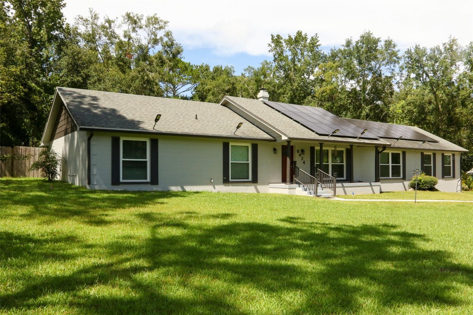Welcome to 8424 NW 2nd Pl in Buckingham East—where flexible multi-generational living meets meaningful updates on a verified 1.24-acre lot (county plat map attached; tax record shows smaller figure and has been corrected). This 5BR/3BA, 3,014 SF home lives like two residences under one roof: a 4BR/2BA main home plus a private 1BR/1BA in-law suite with its own kitchen and living area—ideal for extended family, guests, or potential income (buyer to verify use). Major improvements include roof (2015), HVAC (2015), new laminate flooring throughout, fresh interior/exterior paint, quartz countertops, new interior doors, and upgraded lighting/ceiling fans, plus solar panels for energy savings. Enjoy an expansive yard with fruit trees, a 2-car garage, and a long driveway—all minutes to I-75, UF, Shands, shopping, and dining.