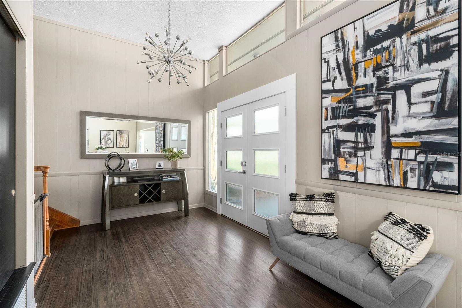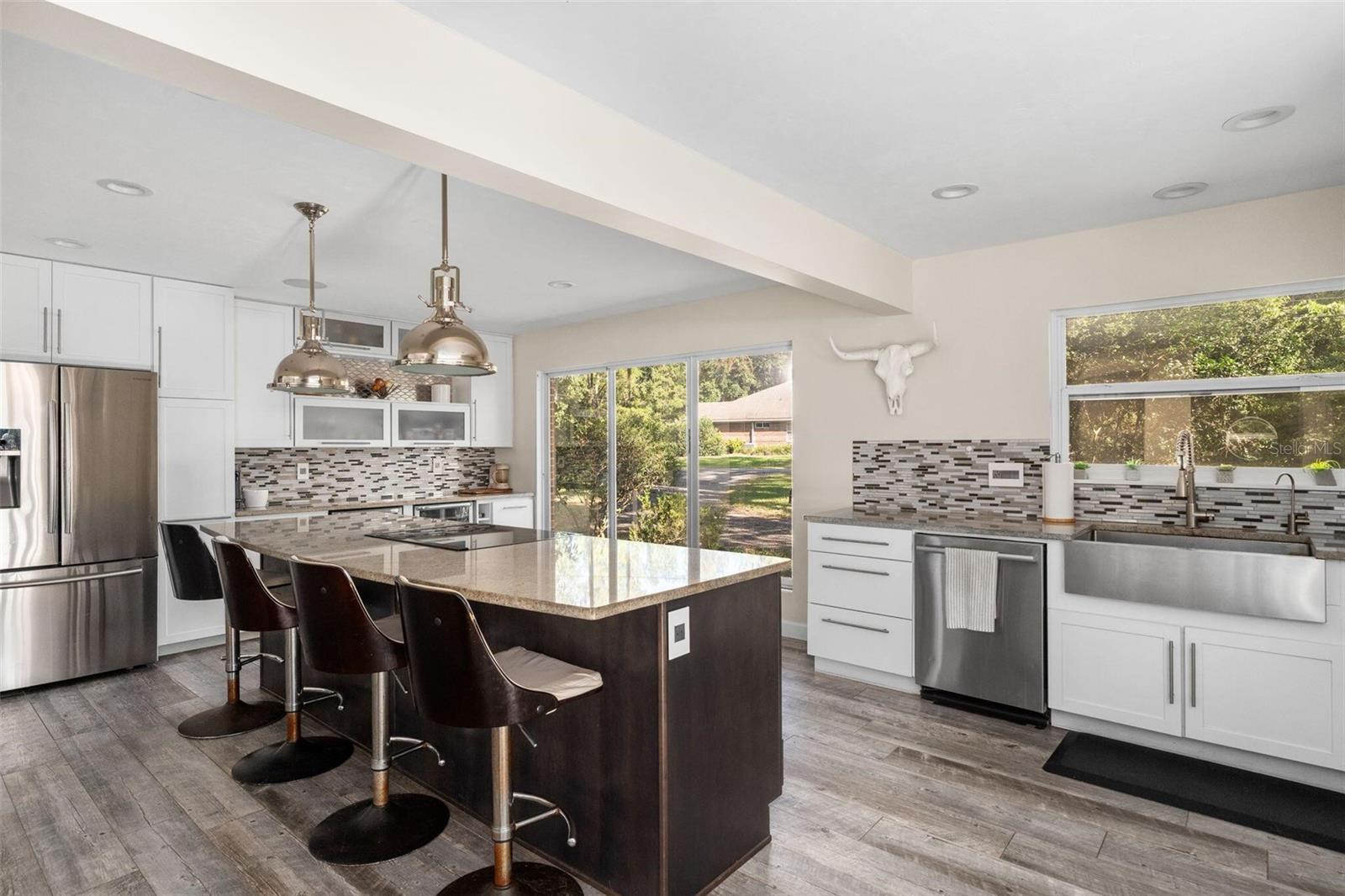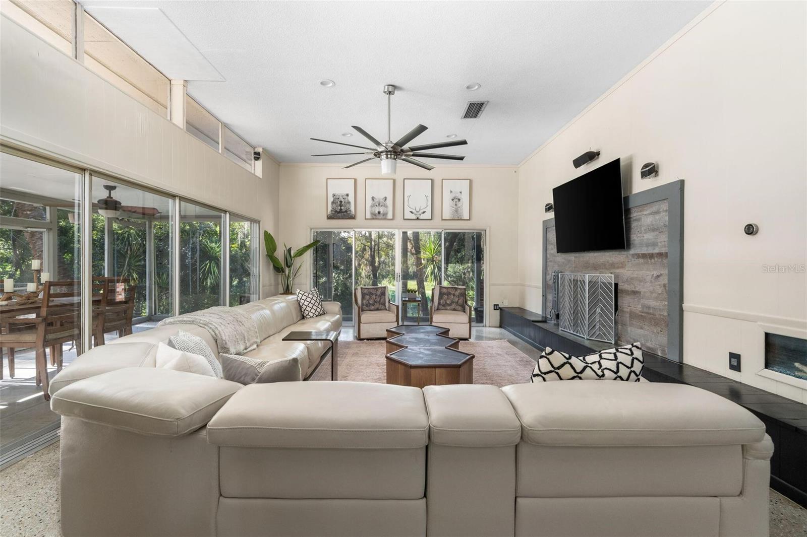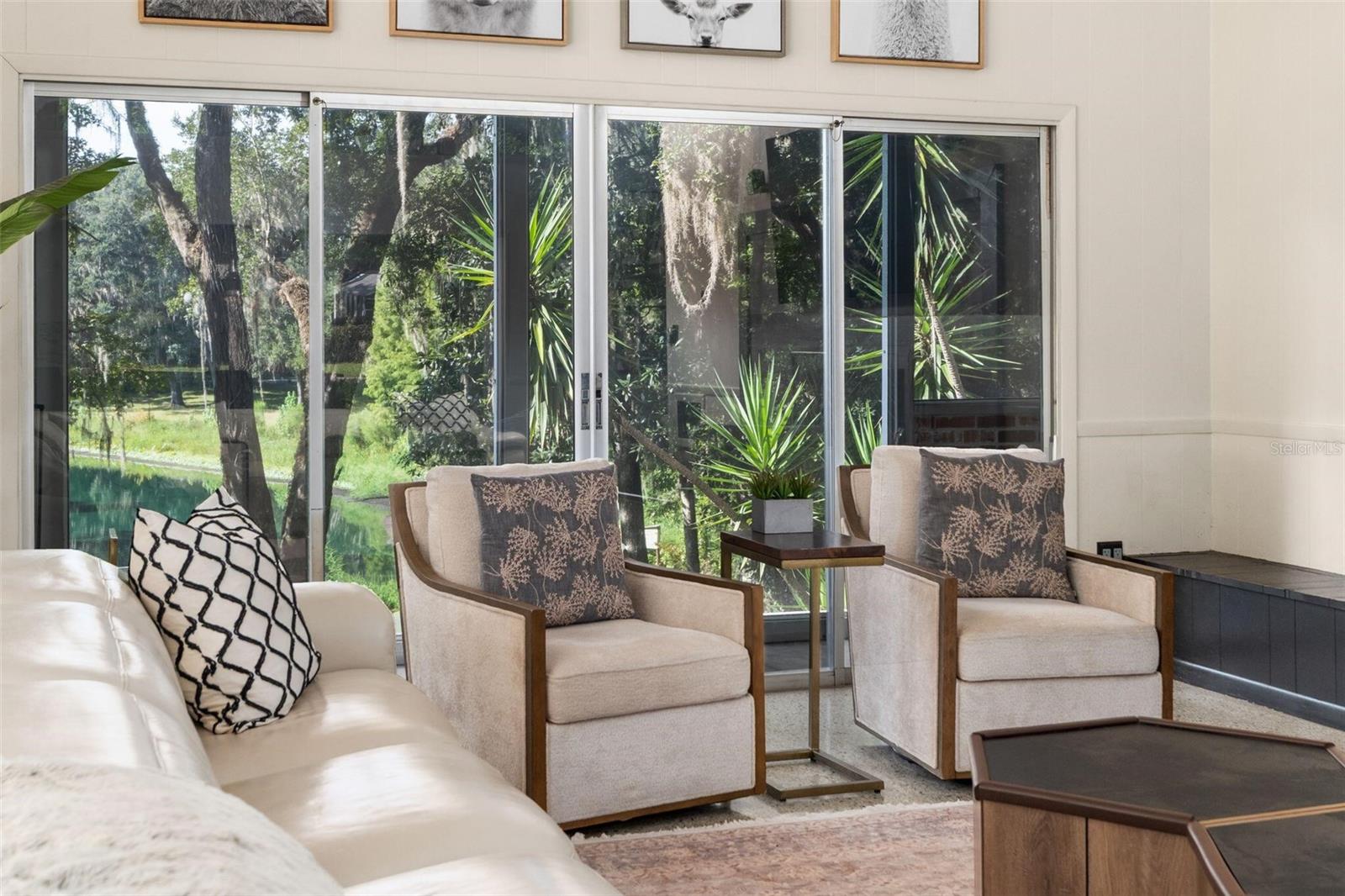 Rare lakefront home with pool, privacy, and nearly 4,000 sq ft—just seconds from Newberry Road. Four bedrooms open directly to the pool deck for seamless indoor-outdoor living. Tucked beneath a canopy of mature trees and overlooking a peaceful stretch of water, this one-of-a-kind property is a rare combination of privacy, space, and character—just minutes from the heart of Gainesville. Set on a 0.96 acre tree-lined lot on the coveted Clear Lake, this 5-bedroom, 3.5-bath home blends timeless mid-century charm with thoughtful modern updates. Inside, natural light pours through expansive windows, highlighting beautifully restored original wood and terrazzo floors that add warmth and authenticity throughout the home. The layout is both open and flexible, with generous living spaces designed for everyday comfort and effortless entertaining. The kitchen has been tastefully updated with clean, modern finishes, while multiple fully renovated bathrooms bring a fresh, elevated feel to the home. Major system upgrades—including a brand new roof and septic system—provide peace of mind for years to come. Designed with both functionality and lifestyle in mind, four of the five bedrooms have direct access to the back porch, creating a seamless connection to the pool area—great for easy indoor-outdoor living without disrupting the rest of the home. A second downstairs kitchen adds flexibility for guests, entertaining, or multi-generational living, while a spacious laundry room with a second-floor laundry chute adds everyday convenience. Step outside and experience what truly sets this property apart. A large pool and expansive deck create the ultimate outdoor living space, great for hosting or unwinding in complete privacy. Beyond the backyard, serene water views and lush greenery give a sense of escape that is increasingly hard to find—yet this is one of only two homes on Clear Lake located just seconds from Newberry Road. With nearly 4,000 square feet of living space, a rare lot size, and a setting that feels worlds away while still being incredibly convenient, this is more than just a home—it’s a lifestyle. **Please note, due to the lack of rain in 2025, Clear Lake is currently dry. This is a rare occurrence as the lake has not been dry since 2013. The water will return with ample rain that Gainesville typically gets in the spring and summer**