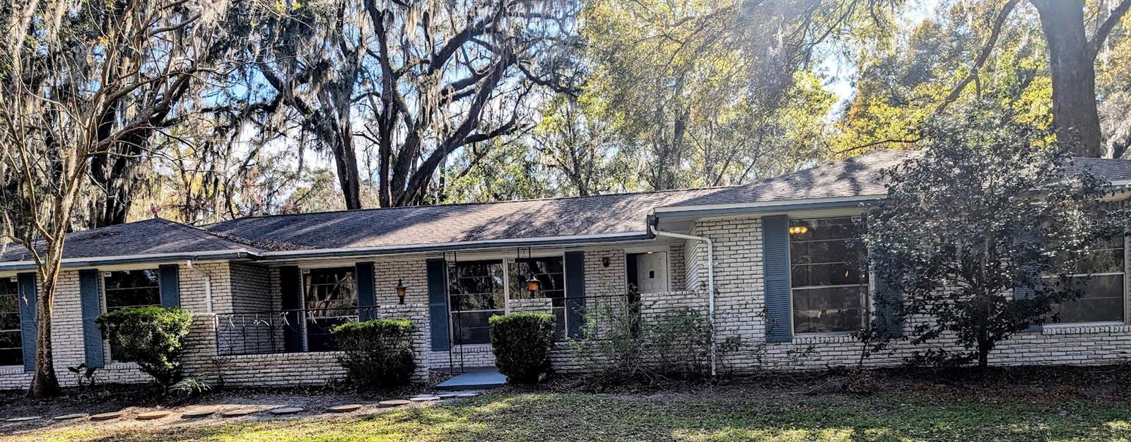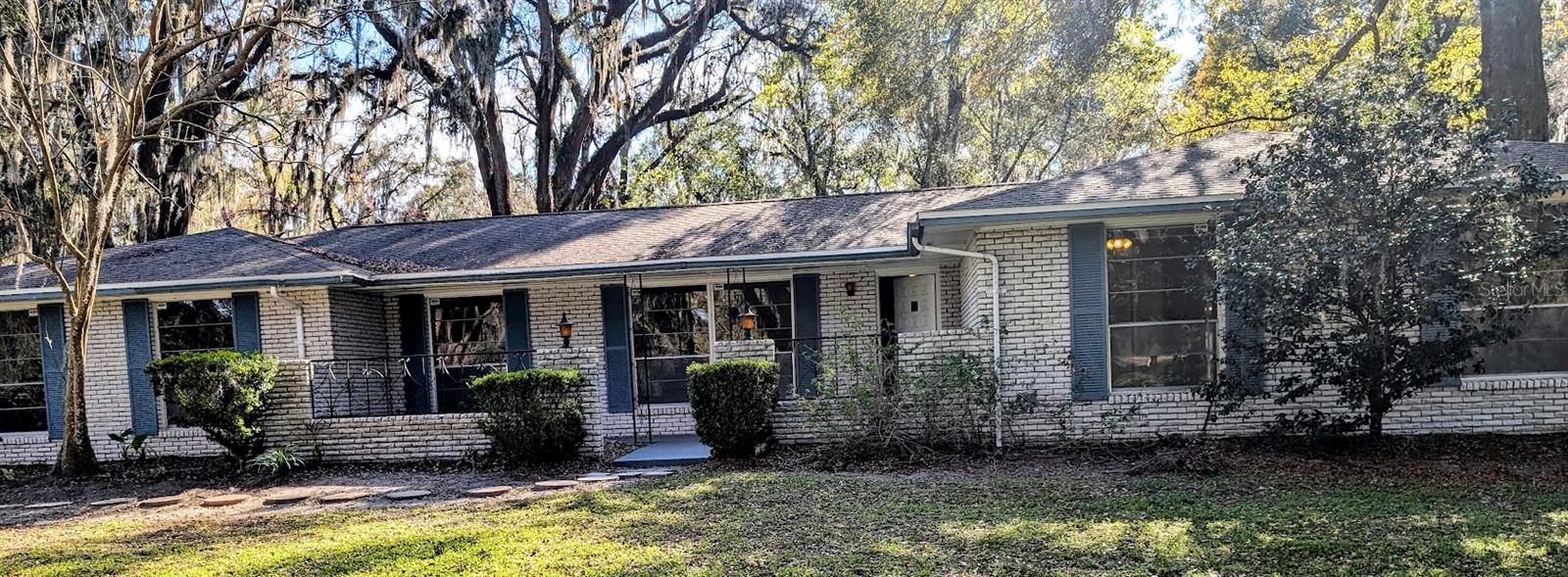 This stunning 4-bedroom home is situated on a generous 1.15-acre corner lot facing Newberry Rd. The property boasts a screened-in pool, perfect for enjoying the Florida sunshine in privacy. The elegant wood floors and cozy fireplace add a touch of warmth and charm to the home. All the carpeting has been removed and New plank linoleum installed. The 2-car garage provides ample parking and storage space. This property is ideal for a professional home office, offering a perfect blend of comfort and functionality.