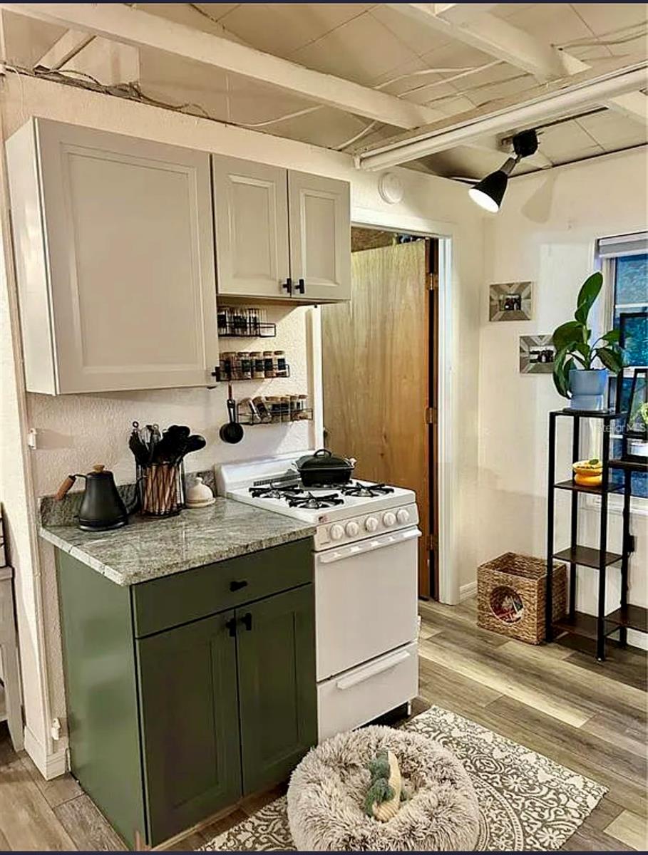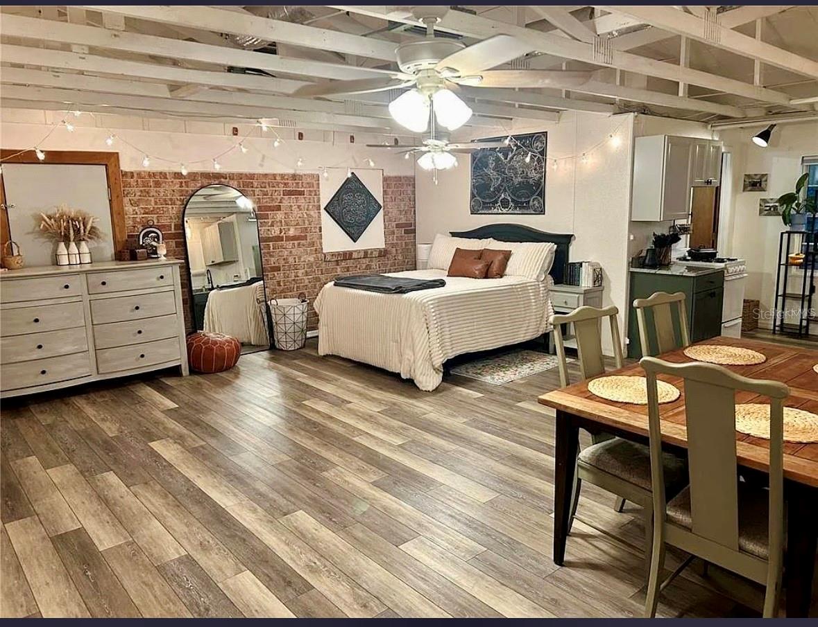 Motivated Seller – Bring an Offer! This charming Gainesville property offers both comfort and investment potential, located just minutes from the University of Florida. The main home features three spacious bedrooms, two full bathrooms, and a large living area with a wood-burning fireplace. The updated eat-in kitchen is a highlight with granite countertops, a gas range, and plenty of storage—perfect for cooking and entertaining. An attached converted garage efficiency unit provides a fantastic opportunity for additional income. With exposed beams, a full kitchen, washer and dryer, its own hot water heater, and a private entrance, it is ideal for long-term rental, student housing, or even short-term Airbnb use. The home also includes a one-car carport, bicycle storage room, and additional parking, as well as multiple spaces to relax outdoors. Enjoy a screened porch for morning coffee, a lovely backyard with a covered open porch for grilling and entertaining, and a fenced yard for added privacy. Just steps away from Loblolly Woods and Hogtown Creek, and with easy access to the RTS bus line or a quick scooter ride to UF, this versatile property checks all the boxes. Live in the main house and rent the efficiency, or lease both for double income—the choice is yours. This motivated seller is ready, so don’t miss this opportunity