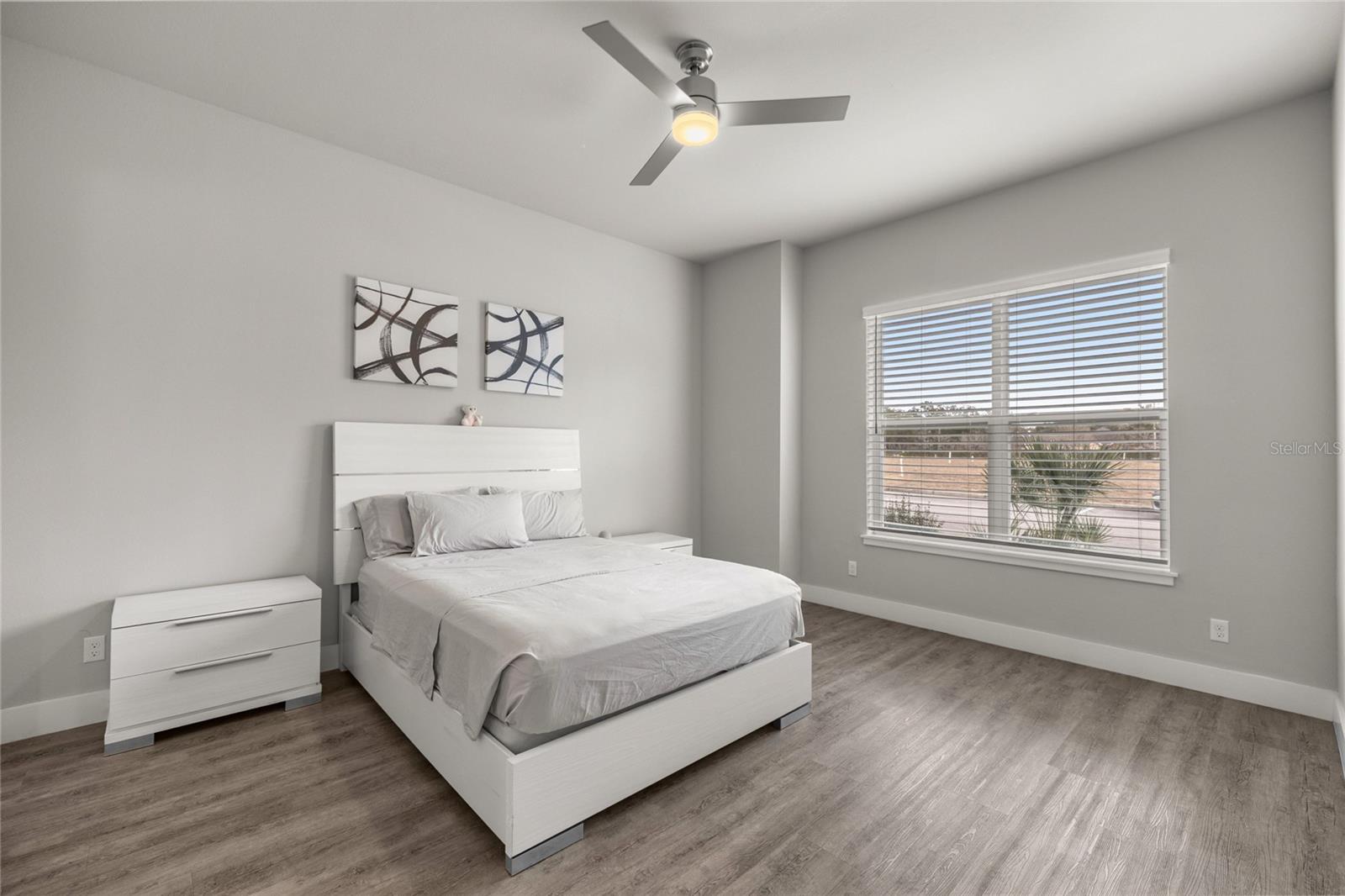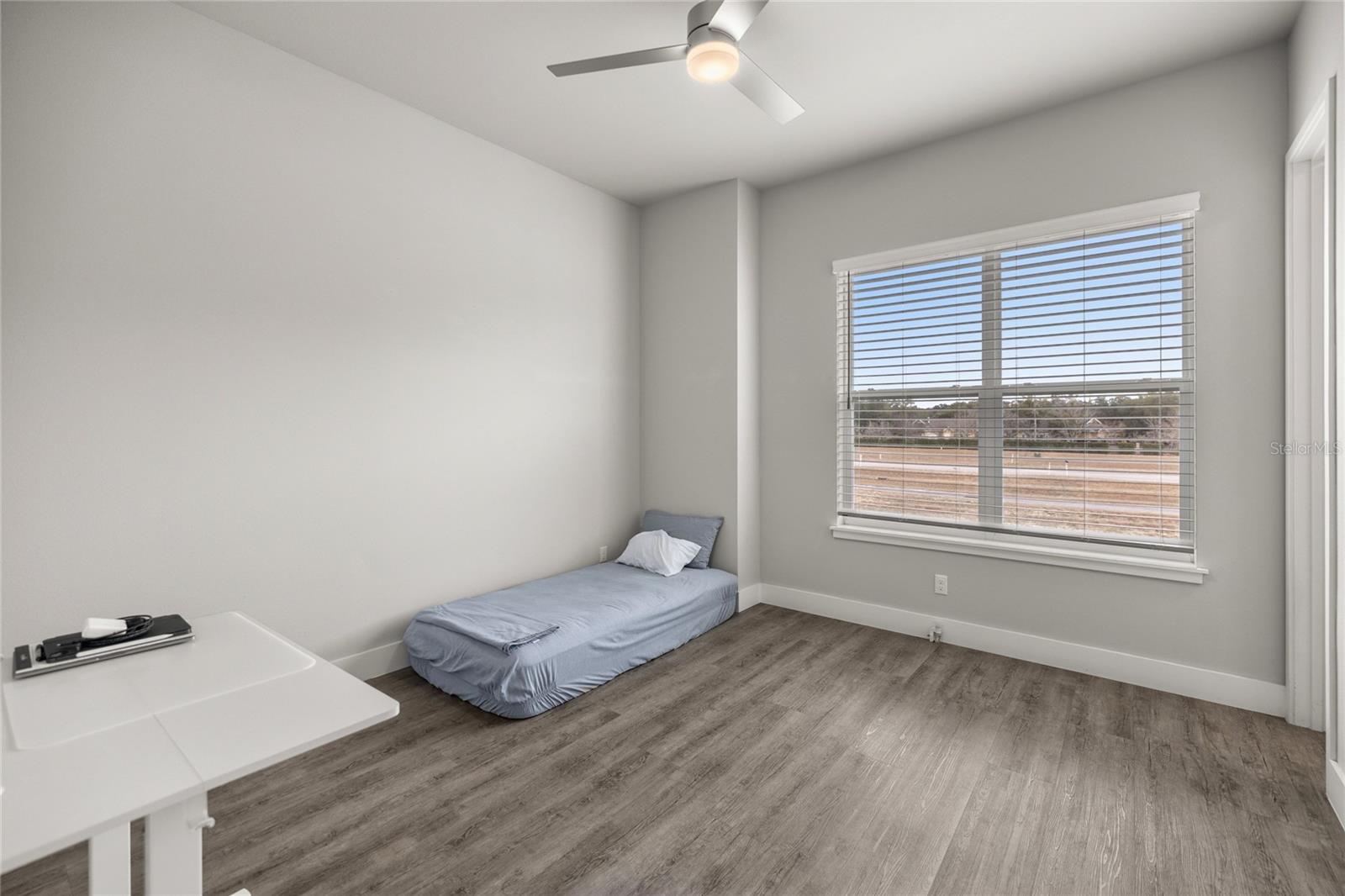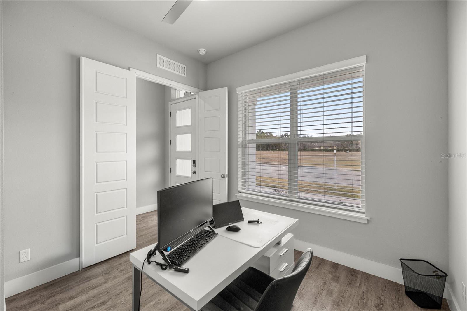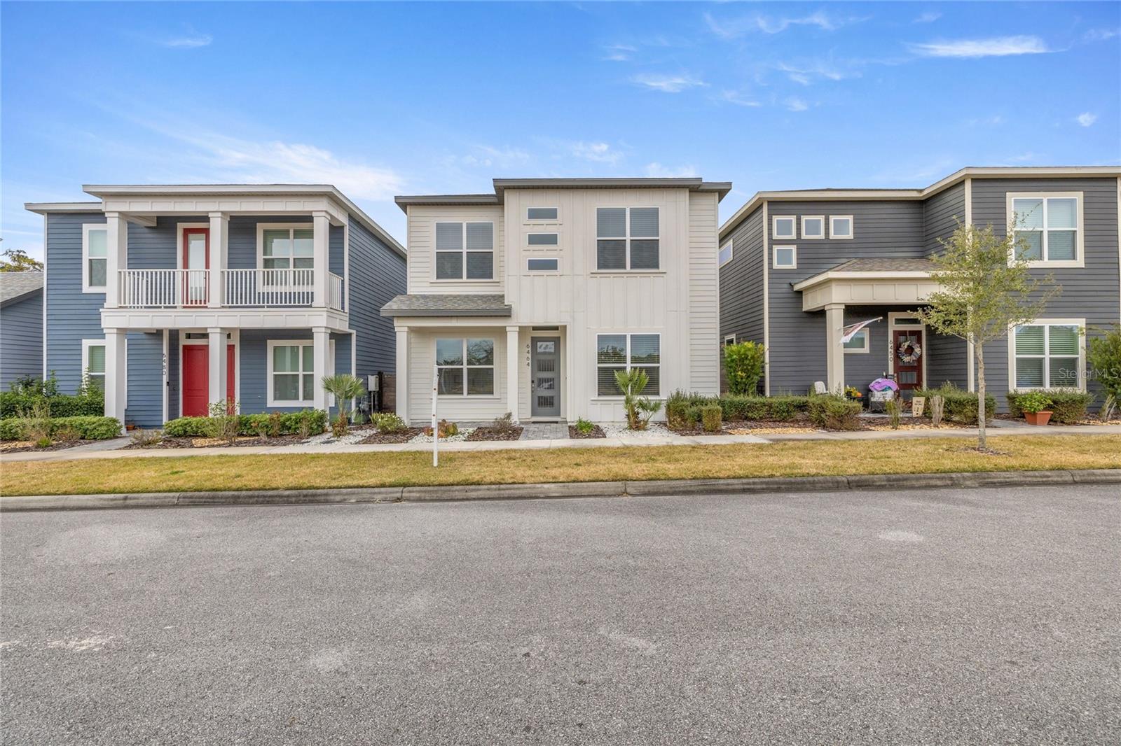 Experience modern living at its finest in the sought-after Grand Preserve community with this Pearl floor plan built by Skobel Homes. This Energy Star-certified 4-bedroom, 2.5-bath home is designed for efficiency and comfort, featuring spray foam attic insulation, a tankless gas water heater, and vinyl low-e insulated windows. The property is fully equipped as a Smart Home, with app-controlled doors, thermostats, alarms, and lighting for both floors, all voice-recognition enabled. The primary bedroom and a study are conveniently located on the main floor, while two additional bedrooms, a loft, and a full bath are on the upper level. The great room features an 11-inch tray ceiling with crown molding, adding an elegant touch to the spacious design. LVP flooring throughout the home ensures durability and comfort year-round, with no carpet present. A two-car garage offers sheltered parking, complemented by ample street parking for guests. The screened porch, equipped with sliding screen doors, provides additional functionality. The HOA fee includes lawn maintenance, high-speed fiber-optic internet, and full cable TV service with DVR, offering a low-maintenance lifestyle. Community amenities include a clubhouse, pool, workout room, playground, paved jogging trail, and Clay Electric services. This meticulously maintained home is better than new, combining luxury, efficiency, and a vibrant community atmosphere—an opportunity you won’t want to miss.