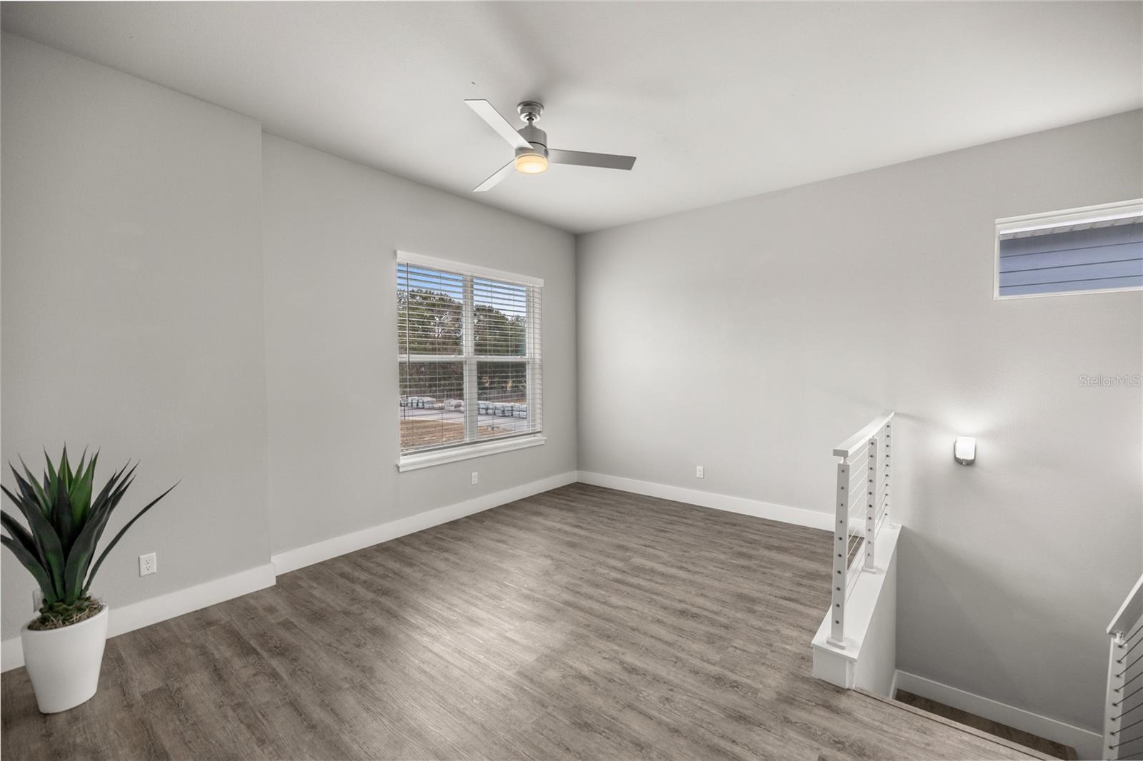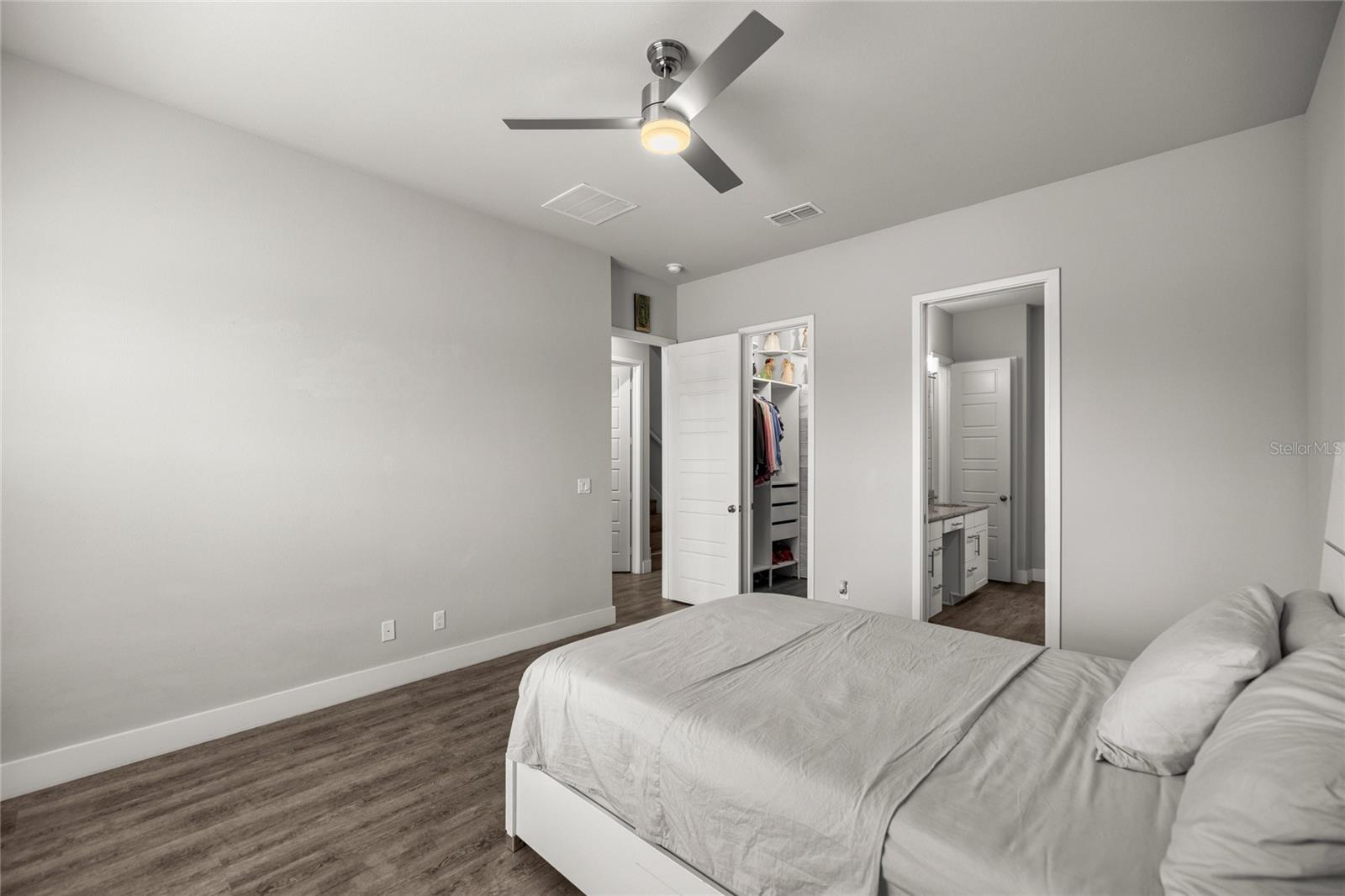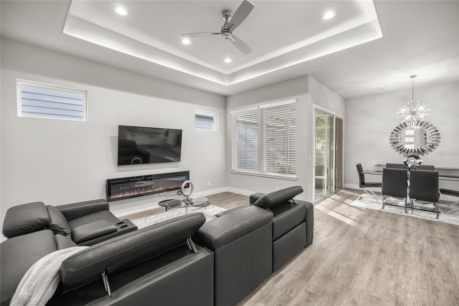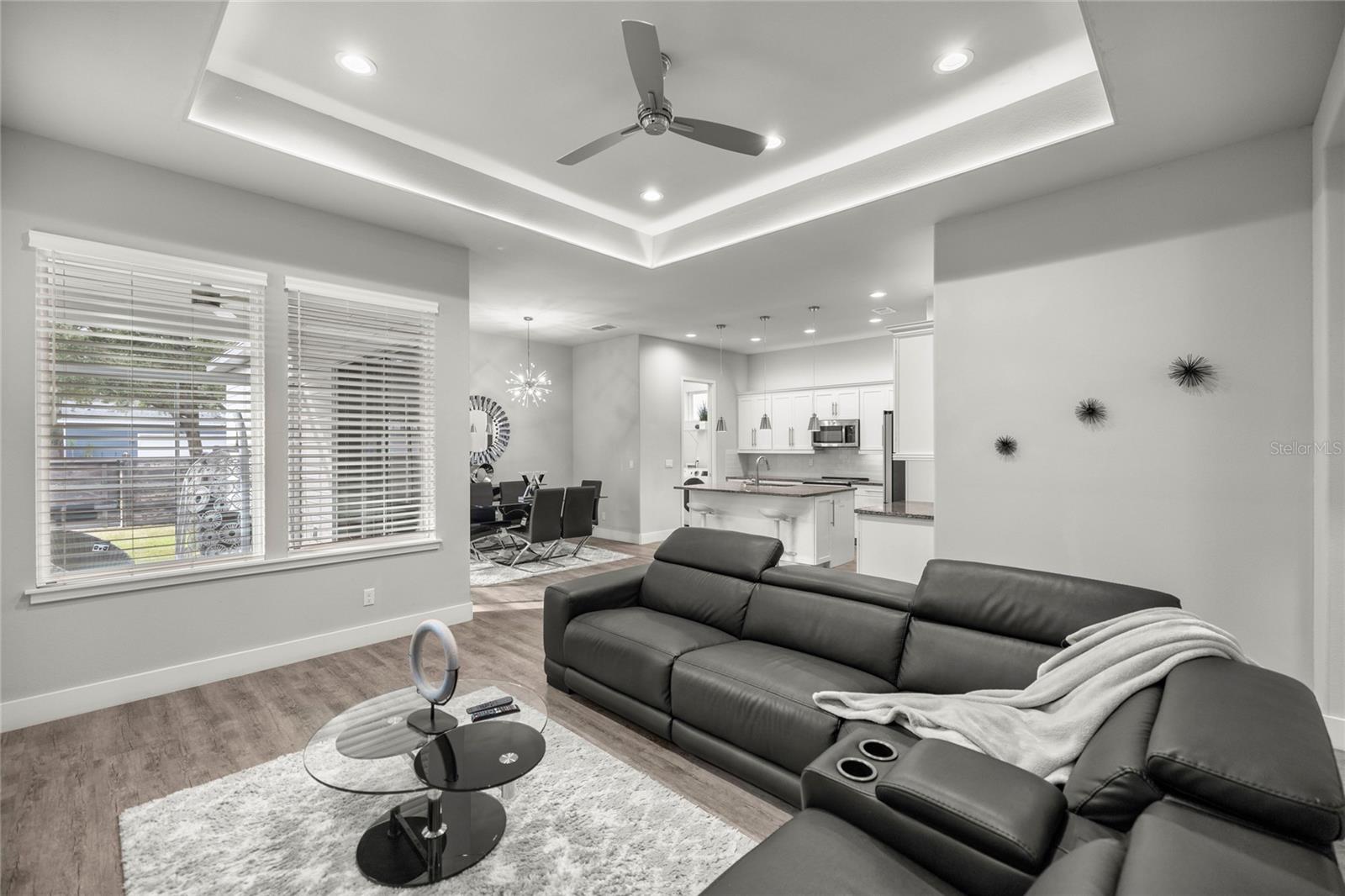 Experience modern living at its finest in the sought-after Grand Preserve community with this Pearl floor plan built by Skobel Homes. This Energy Star-certified 4-bedroom, 2.5-bath home is designed for efficiency and comfort, featuring spray foam attic insulation, a tankless gas water heater, and vinyl low-e insulated windows. The property is fully equipped as a Smart Home, with app-controlled doors, thermostats, alarms, and lighting for both floors, all voice-recognition enabled. The primary bedroom and a study are conveniently located on the main floor, while two additional bedrooms, a loft, and a full bath are on the upper level. The great room features an 11-inch tray ceiling with crown molding, adding an elegant touch to the spacious design. LVP flooring throughout the home ensures durability and comfort year-round, with no carpet present. A two-car garage offers sheltered parking, complemented by ample street parking for guests. The screened porch, equipped with sliding screen doors, provides additional functionality. The HOA fee includes lawn maintenance, high-speed fiber-optic internet, and full cable TV service with DVR, offering a low-maintenance lifestyle. Community amenities include a clubhouse, pool, workout room, playground, paved jogging trail, and Clay Electric services. This meticulously maintained home is better than new, combining luxury, efficiency, and a vibrant community atmosphere—an opportunity you won’t want to miss.