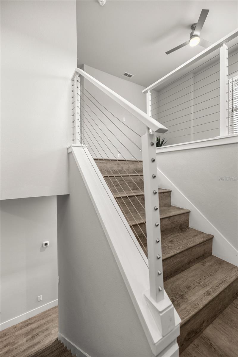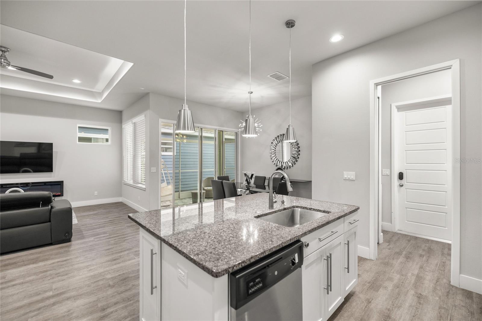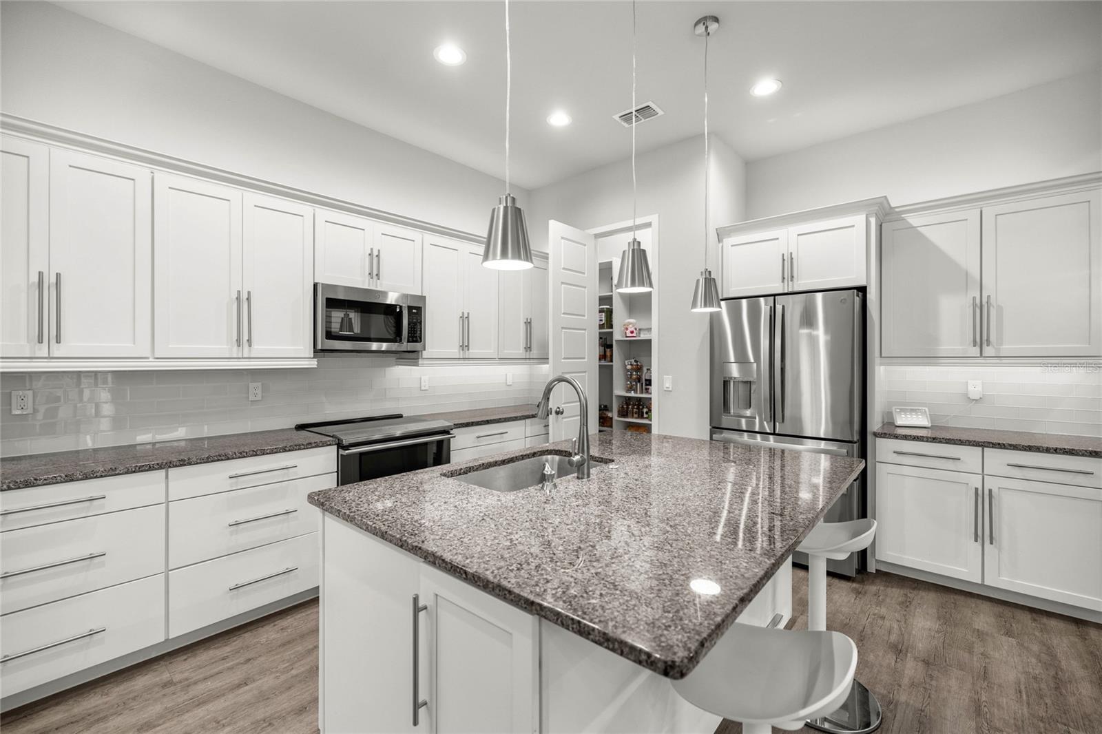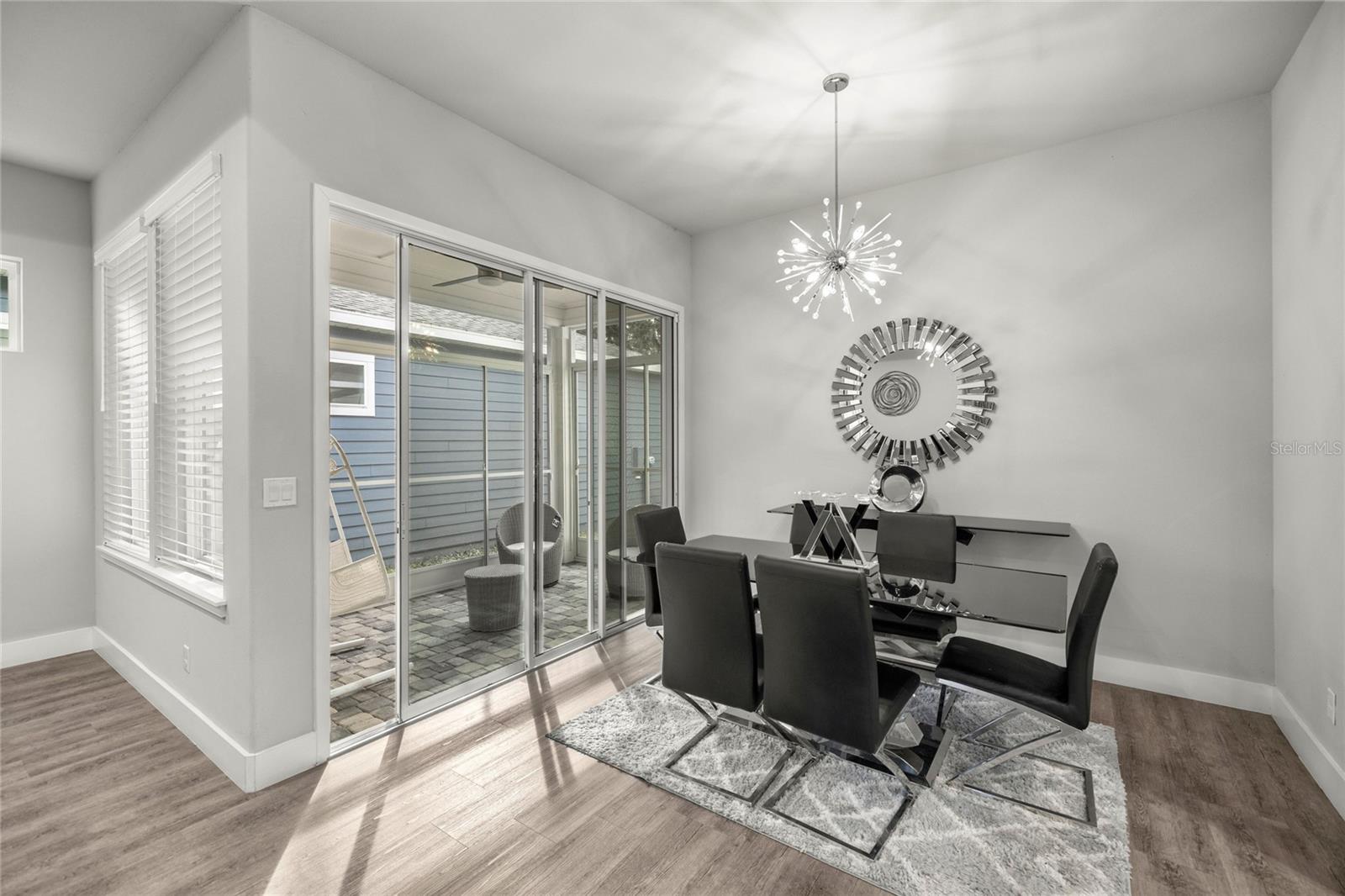 Experience modern living at its finest in the sought-after Grand Preserve community with this Pearl floor plan built by Skobel Homes. This Energy Star-certified 4-bedroom, 2.5-bath home is designed for efficiency and comfort, featuring spray foam attic insulation, a tankless gas water heater, and vinyl low-e insulated windows. The property is fully equipped as a Smart Home, with app-controlled doors, thermostats, alarms, and lighting for both floors, all voice-recognition enabled. The primary bedroom and a study are conveniently located on the main floor, while two additional bedrooms, a loft, and a full bath are on the upper level. The great room features an 11-inch tray ceiling with crown molding, adding an elegant touch to the spacious design. LVP flooring throughout the home ensures durability and comfort year-round, with no carpet present. A two-car garage offers sheltered parking, complemented by ample street parking for guests. The screened porch, equipped with sliding screen doors, provides additional functionality. The HOA fee includes lawn maintenance, high-speed fiber-optic internet, and full cable TV service with DVR, offering a low-maintenance lifestyle. Community amenities include a clubhouse, pool, workout room, playground, paved jogging trail, and Clay Electric services. This meticulously maintained home is better than new, combining luxury, efficiency, and a vibrant community atmosphere—an opportunity you won’t want to miss.